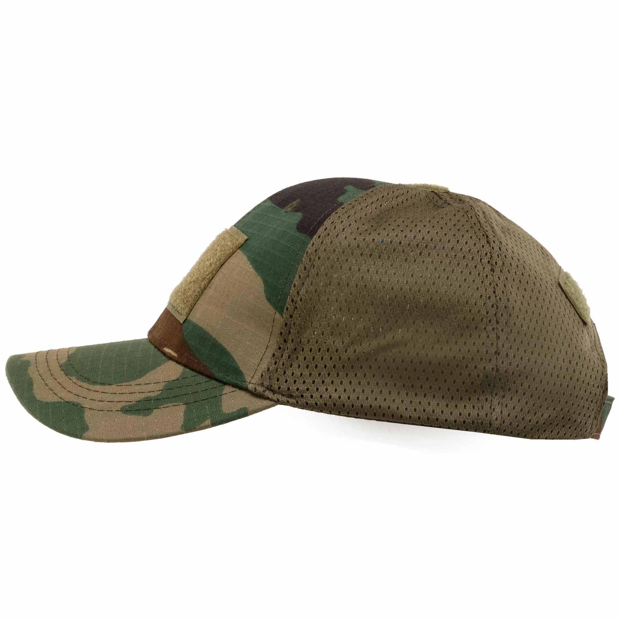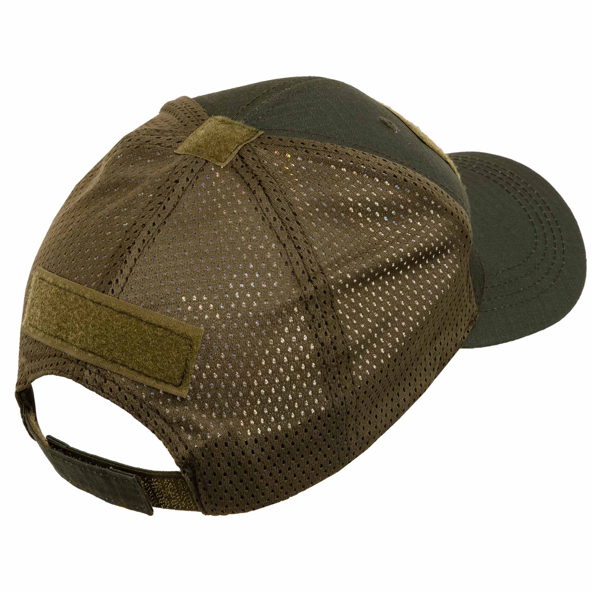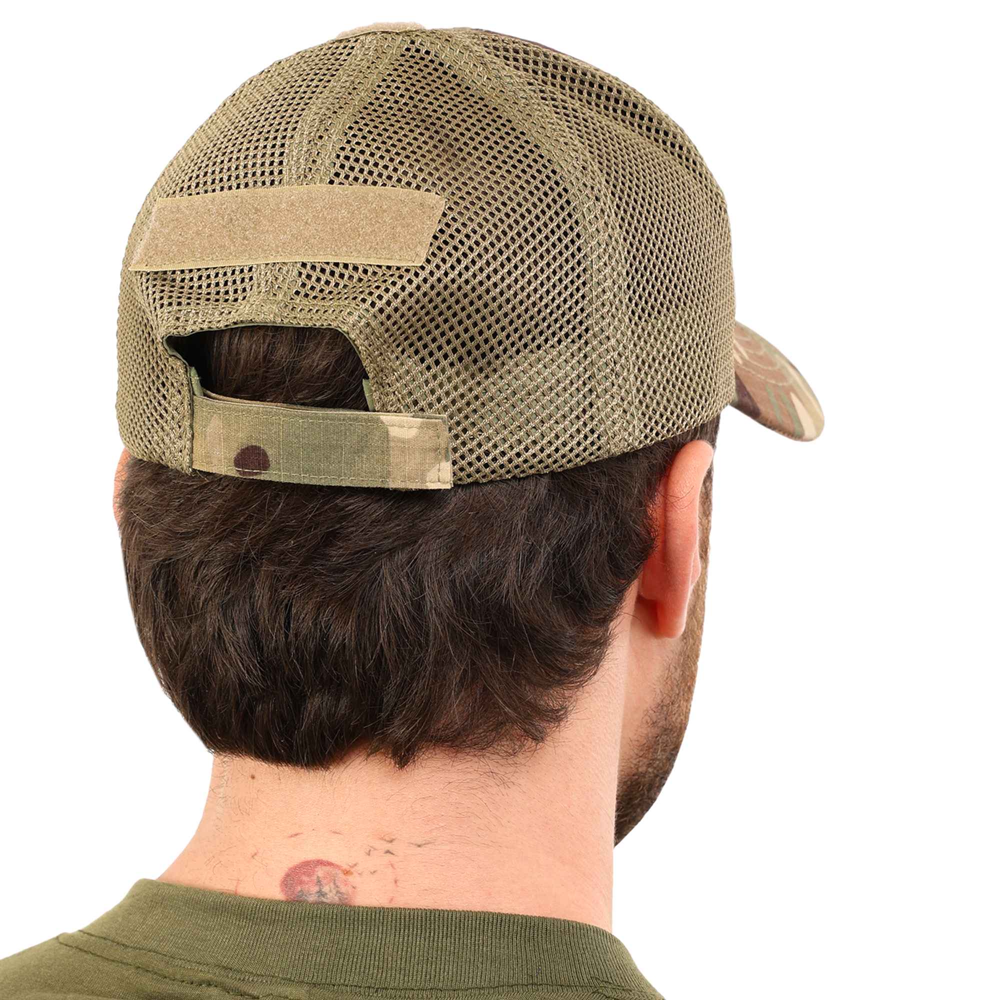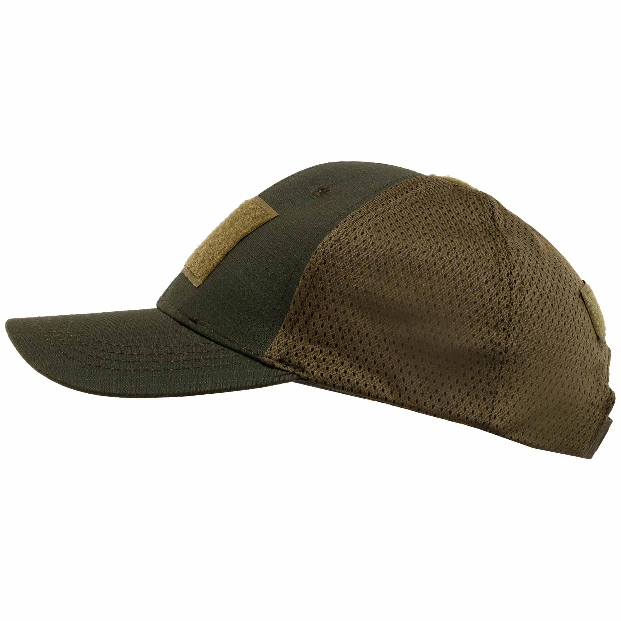 Для виготовлення бейсболки використовується бавовна та поліестер – комбінація цих матеріалів забезпечує їй відмінну зносостійкість. Майже половина головного убору складається з сітки, що гарантує відмінну вентиляцію, одночасно козирок досить щільний, щоб не втратити форму в процесі тривалої експлуатації. Класичний шестиклинний крій забезпечує бейсболці оптимальну, з погляду анатомії, форму – вона зручно сидить на голові, при цьому не давить і не спадає. При цьому зручна застібка-липучка дозволяє відрегулювати розмір. Нашиті на бейсболку липучки (на лобі та потилиці) дозволяють швидко закріпити на ній патчі з логотипом та інформацією, наприклад, з назвою команди з пейнтболу та ім'ям.Переваги: