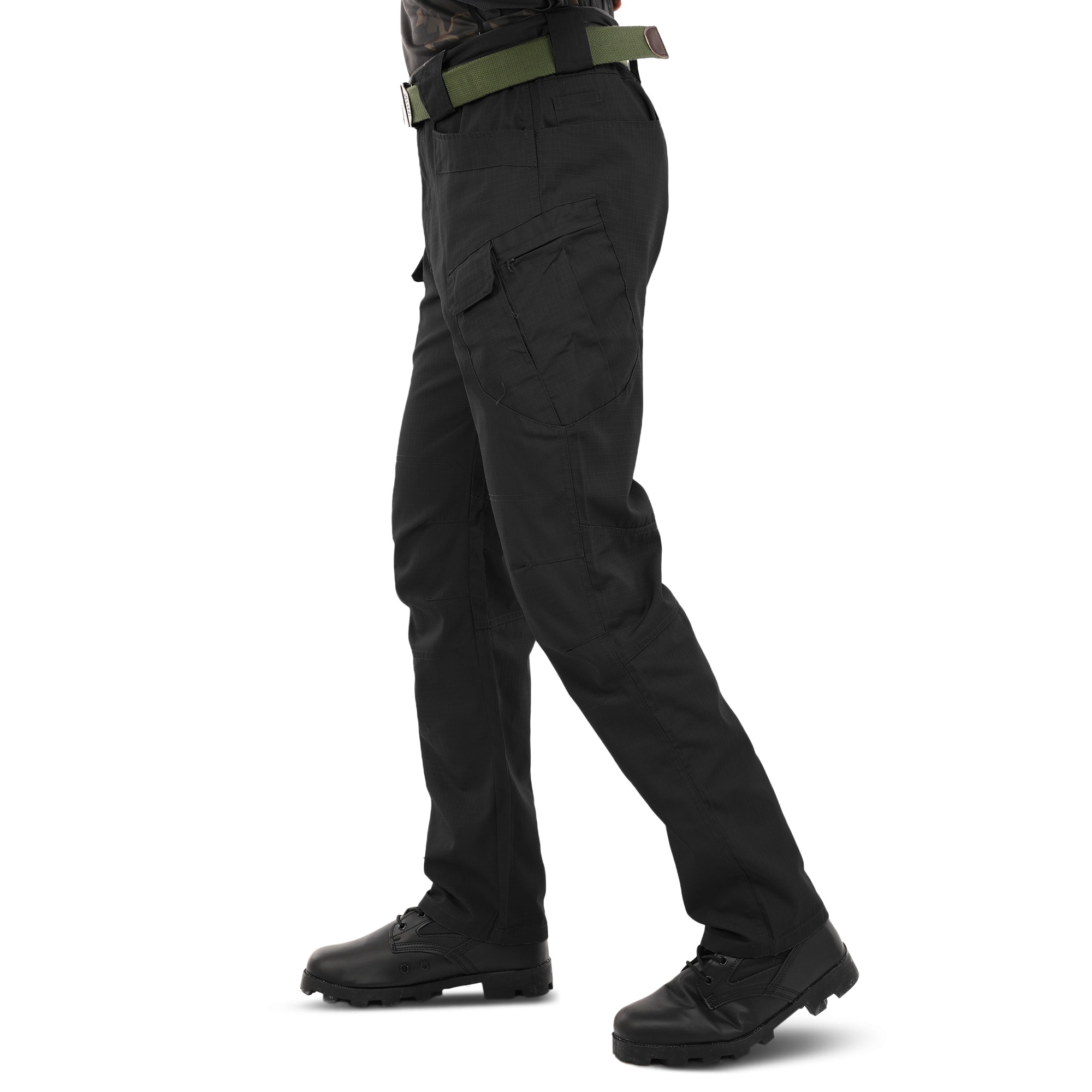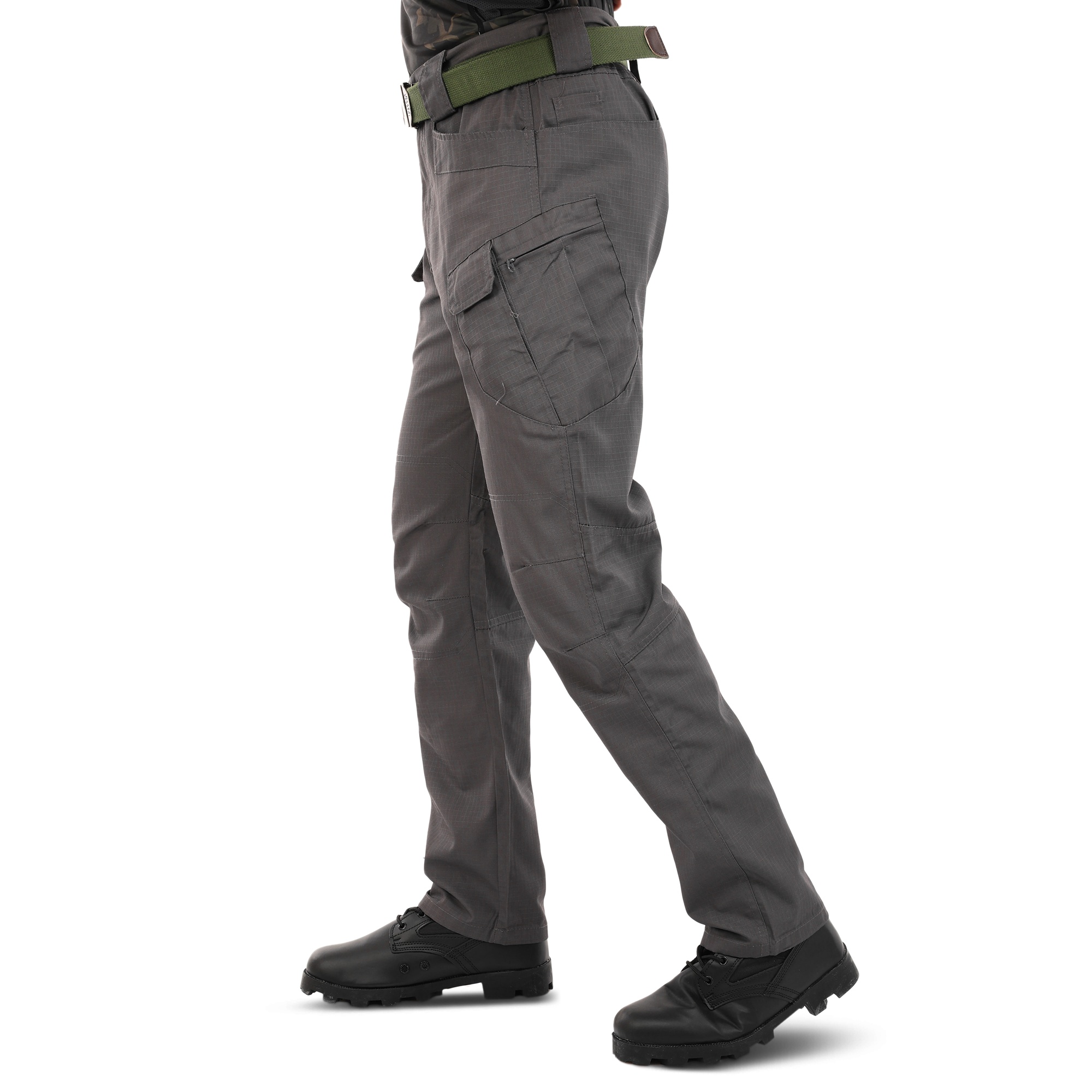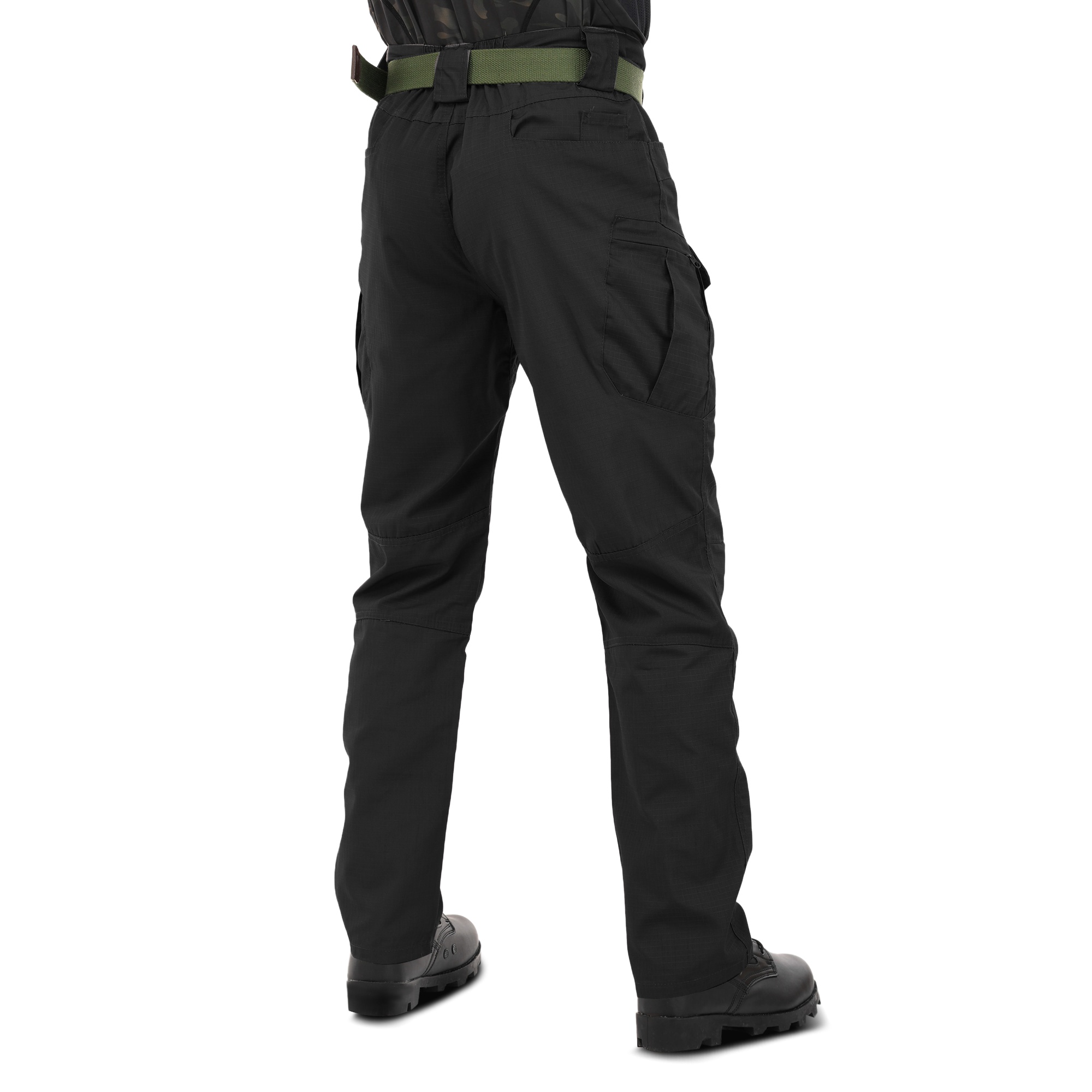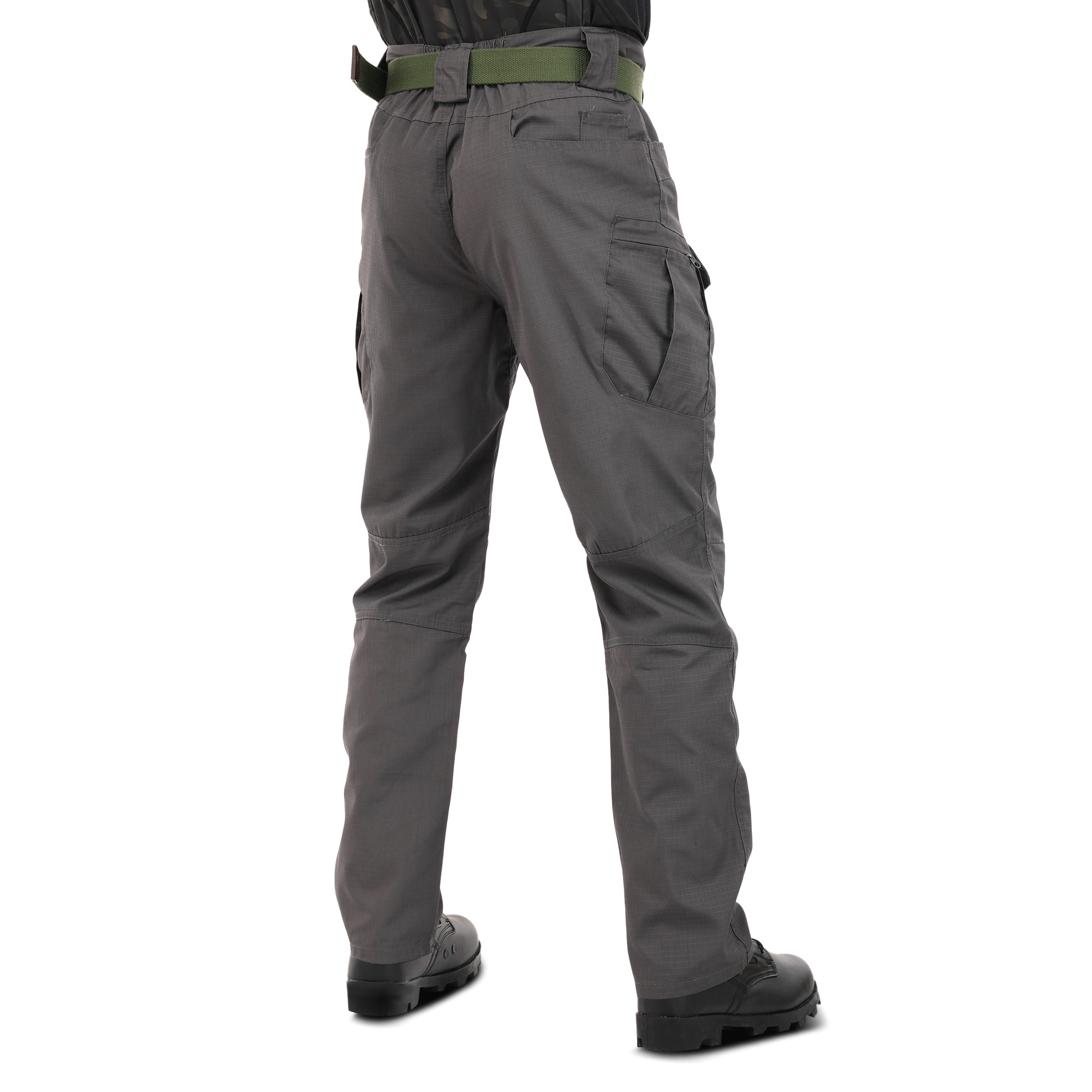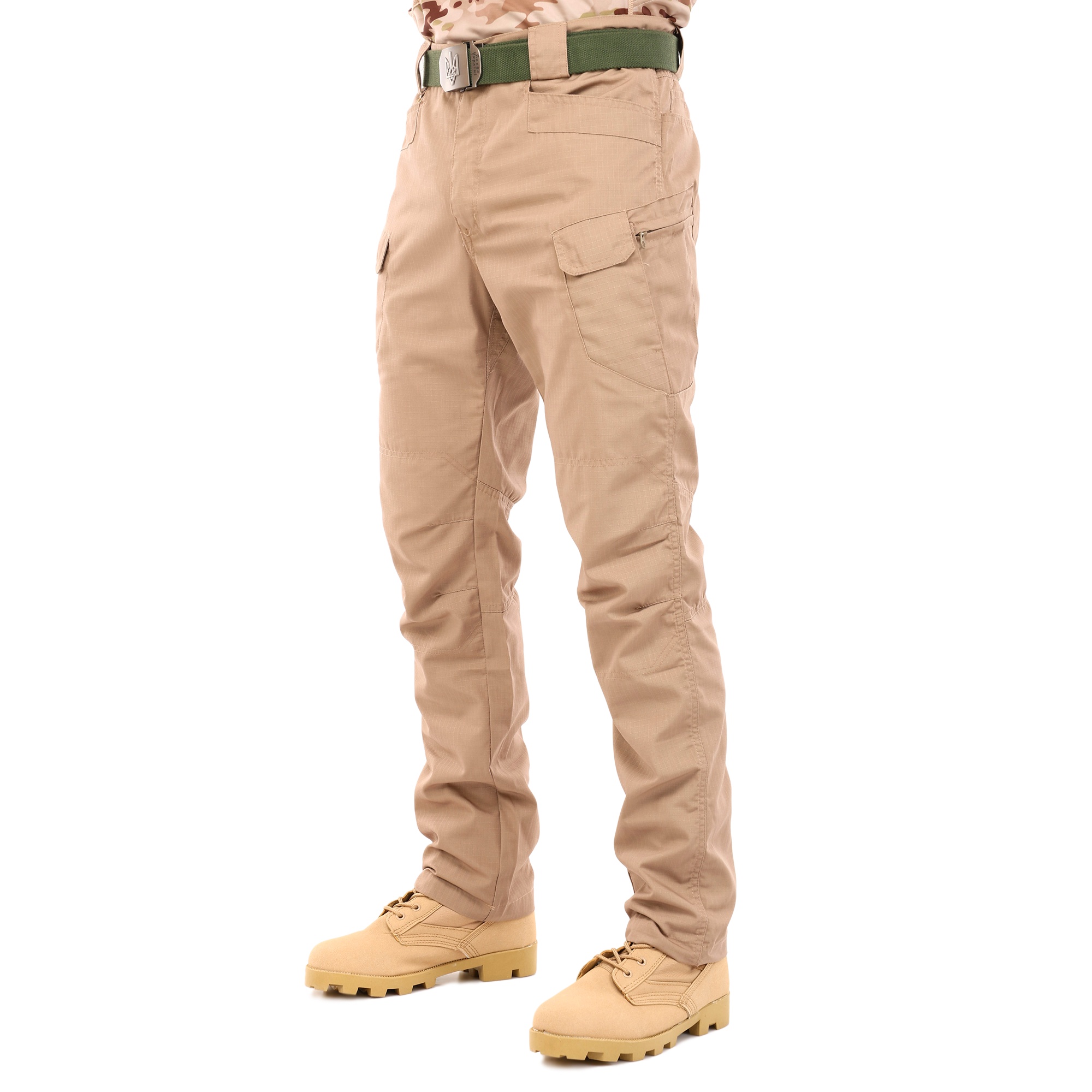 Ці штани виготовлені з високоякісної бавовняної тканини, що характеризується щільністю та зносостійкістю. Їх пошиття є так званим стилем «карго», якому властиво наявність кишень у пояса, ззаду і на стегнах, завдяки чому масу речей можна тримати, що називається «під рукою». Виточки в області колін створюють додатковий комфорт – ногам легше згинатися, відповідно, у штанах простіше пересуватися, підніматися на височині або довго сидіти навпочіпки. Уздовж пояса рівномірно розташовані широкі шльовки для ременя, до двох з яких – ndash; над кишенями – прикріплено металеві трикутні петлі для монтажного карабіна.Переваги: