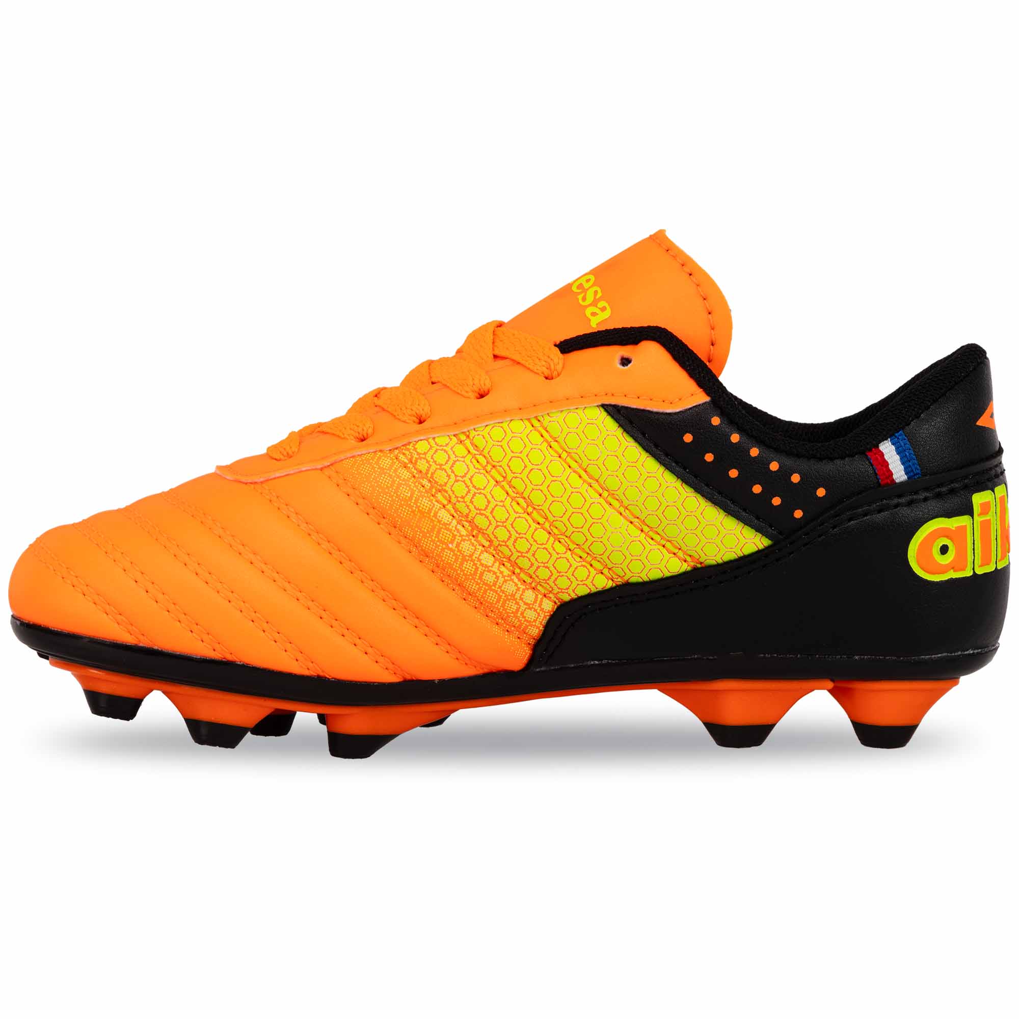 Aikesa 9015-31-36 - це футбольні бутси, які призначені для наймолодших спортсменів. Бутси дозволяють підтримувати стопу в анатомічно правильному положенні і можуть використовуватися під час ігор і тренувань. Попри невелику кількість шипів, стопа надійно захищена від перевантаження. Конструкція взуття дозволяє дитині впевнено і безпечно пересуватися по полю, уникаючи надмірного ковзання. Для регулювання по посадці і фіксації на ногах в бутсах використовуються шнурки.
