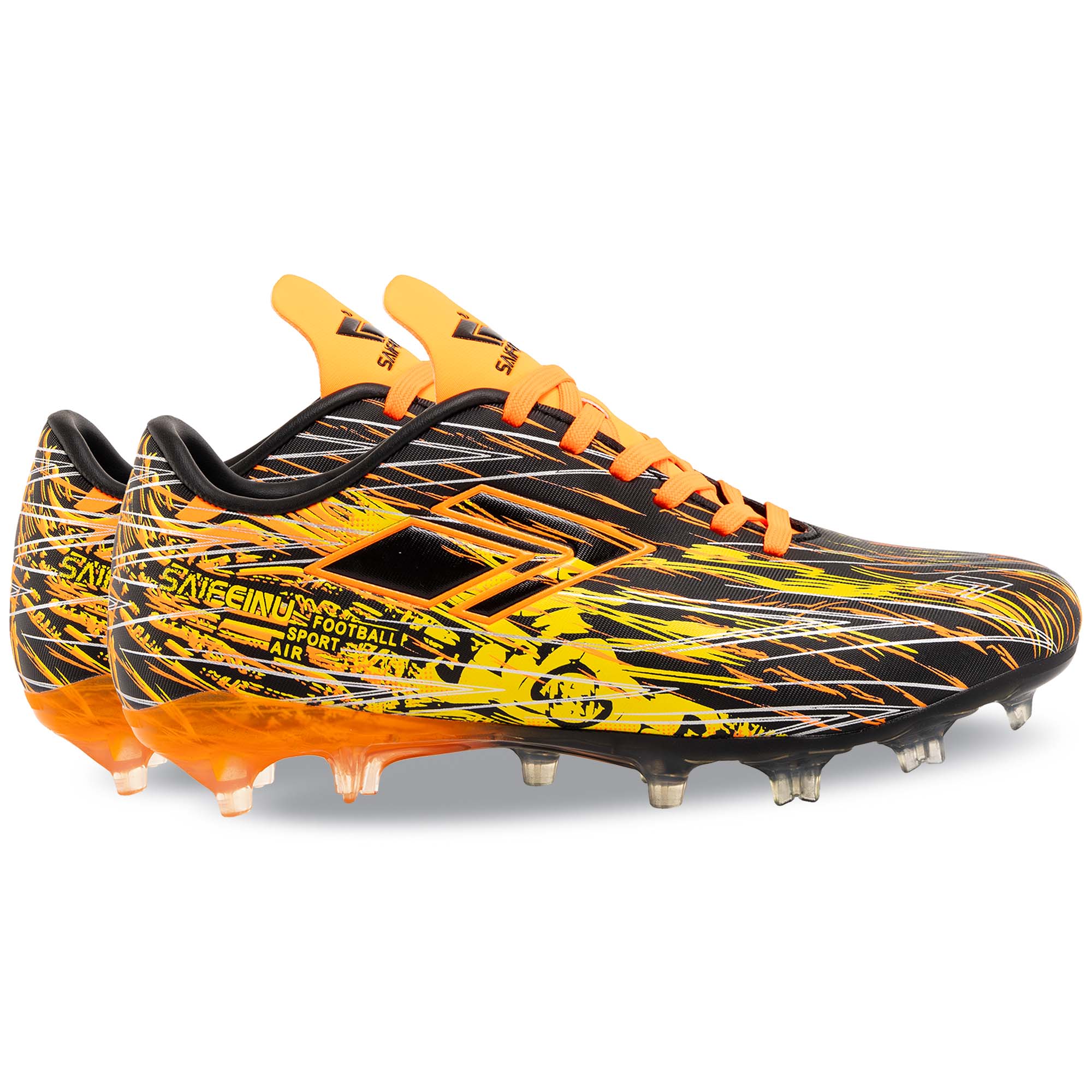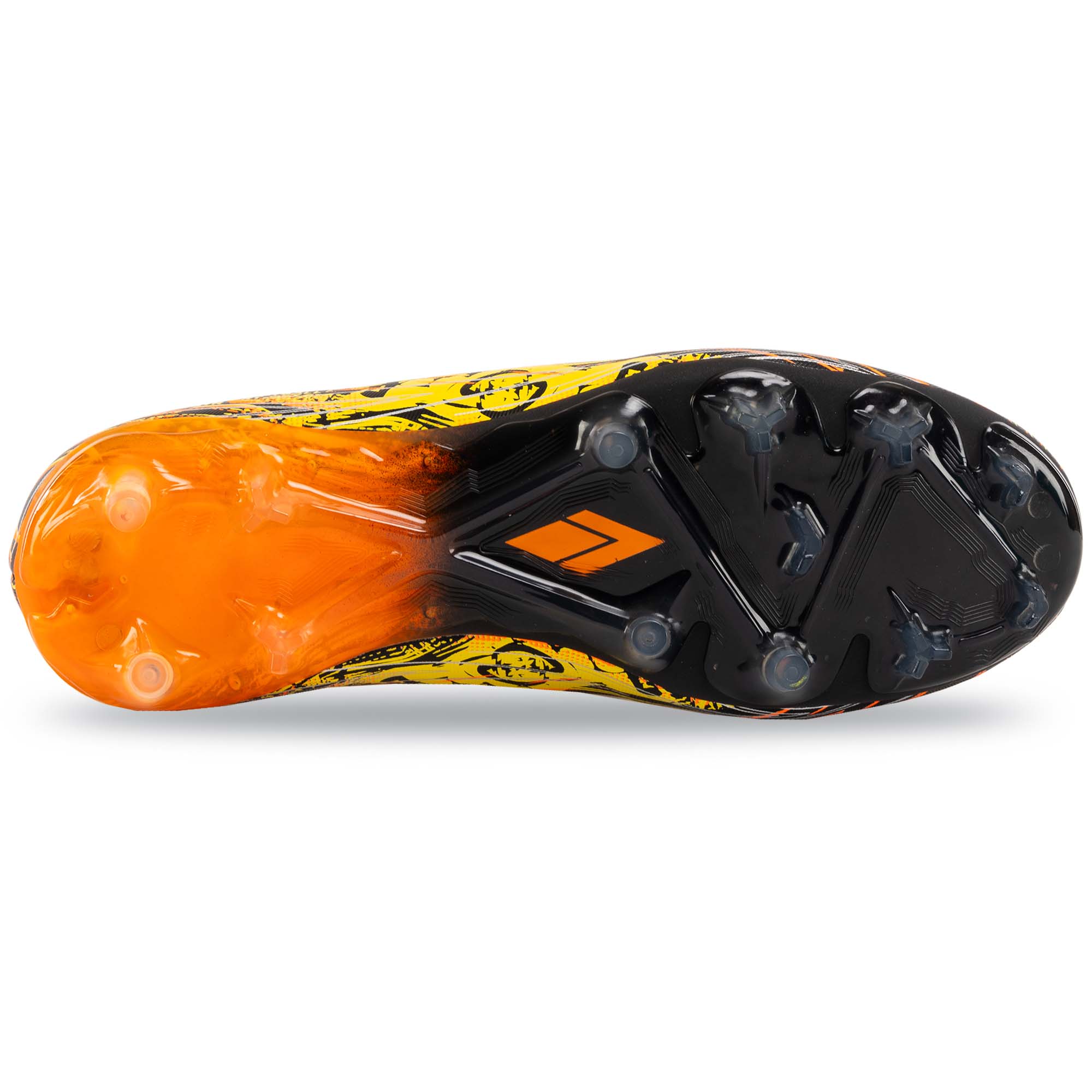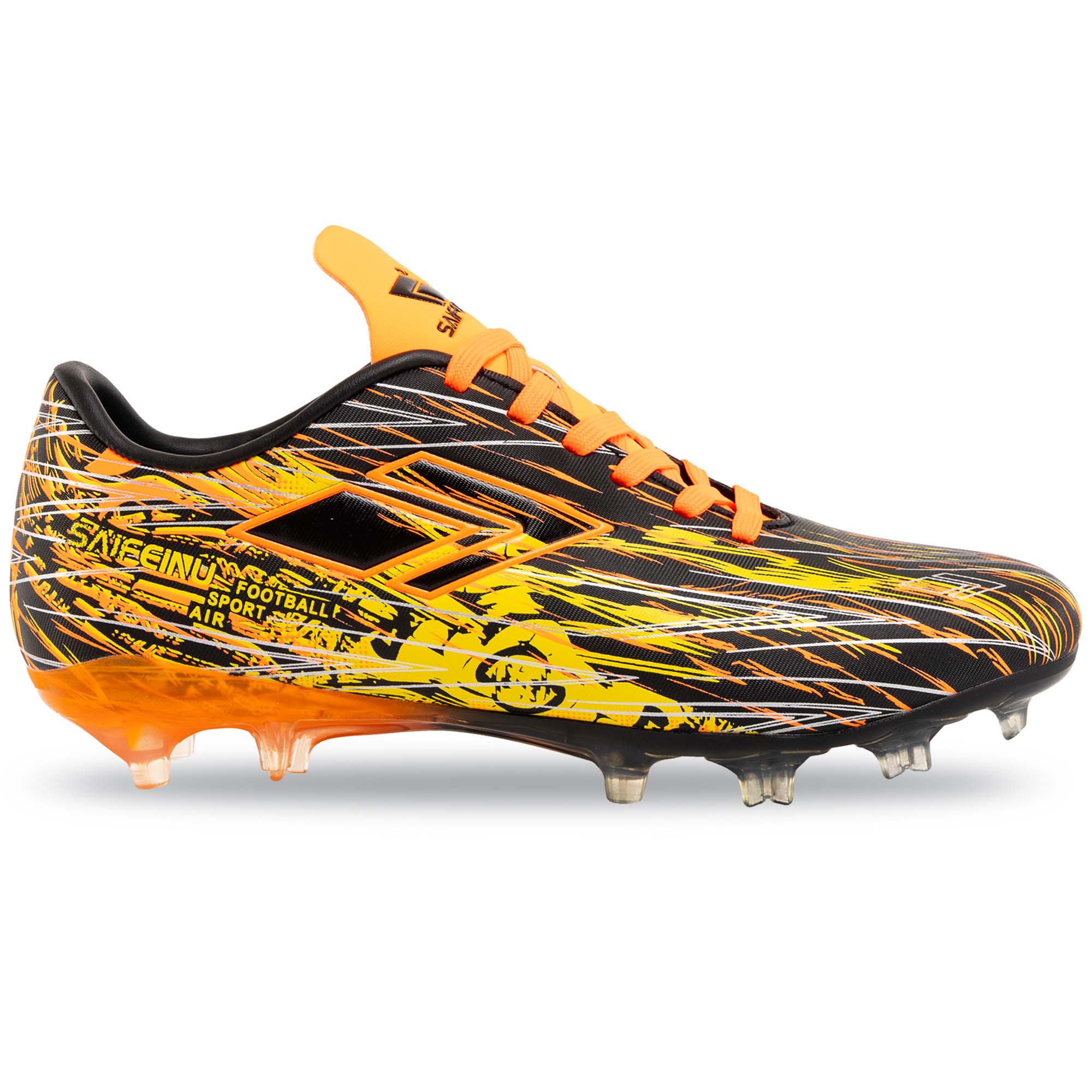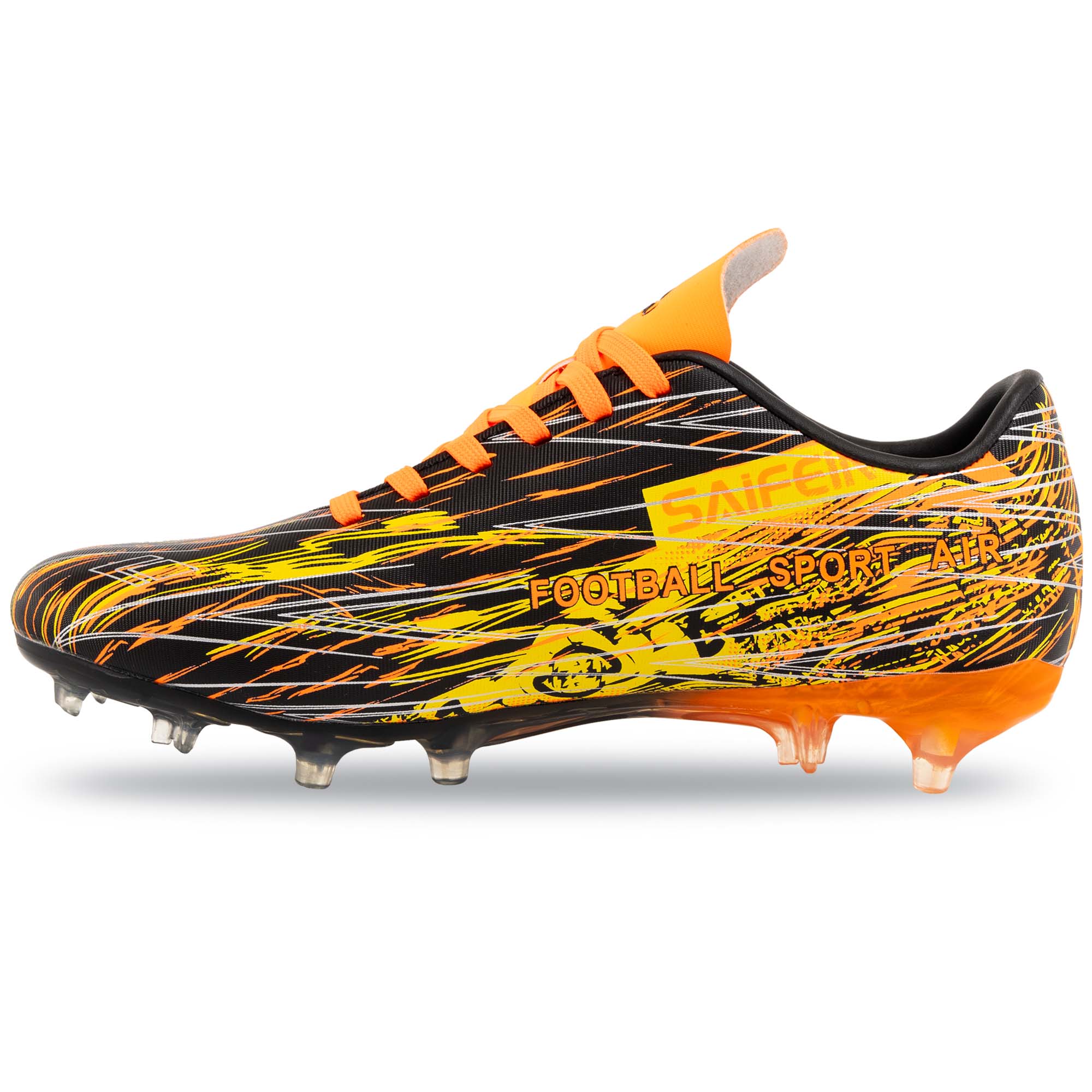Якщо ваша дитина тренується на натуральному газоні, то футбольні бутси з неймовірно яскравим дизайном від бренду DIFENO ідеально підійдуть їй. Верх виготовлений з поліуретану, який забезпечує захист ніг від випадкових ударів, а також гарантує хороше зчеплення з поверхнею м'яча і, відповідно, відмінний контроль. Шнурівка дозволяє надійно зафіксувати взуття на ногах. Підошва з термополіуретану стійка до стирання, має необхідну жорсткість і кілька шипів. Схема розташування шипів дозволяє уникнути перевантаження стопи і окремих суглобів, домогтися максимального комфорту і стійкості на полі.