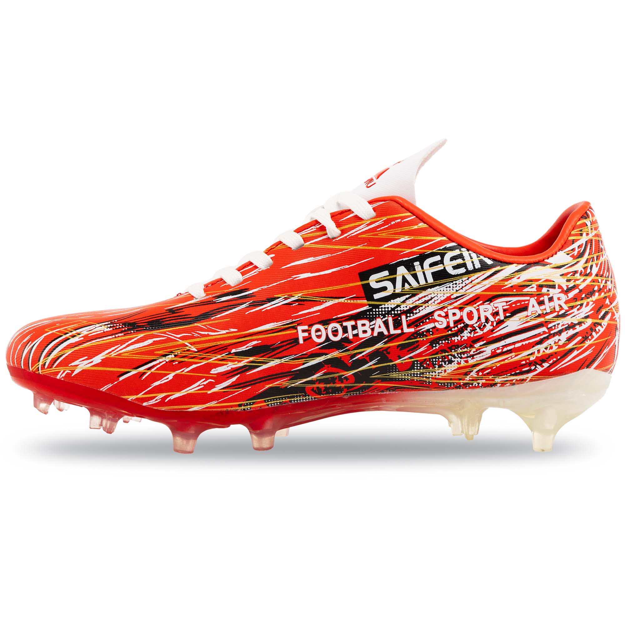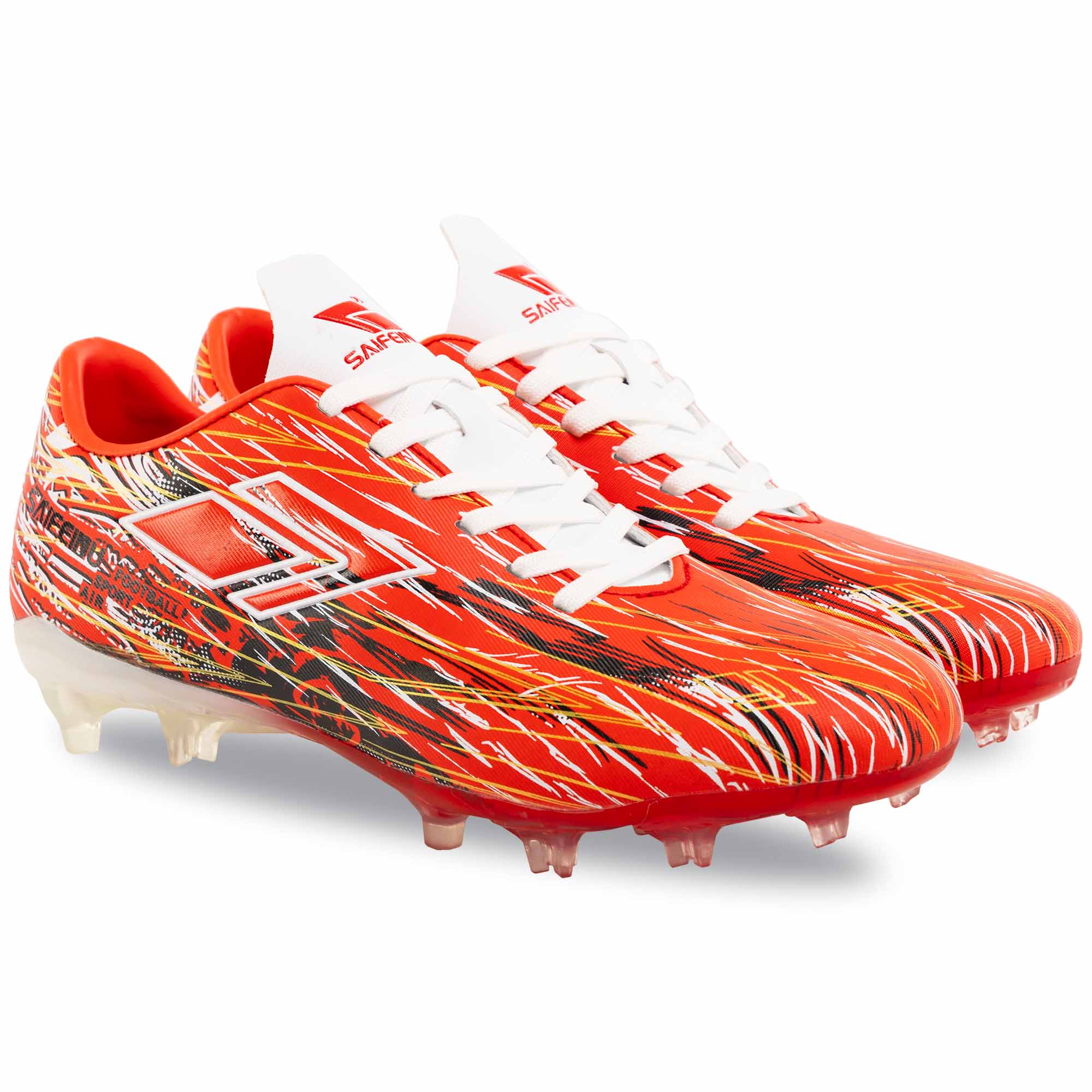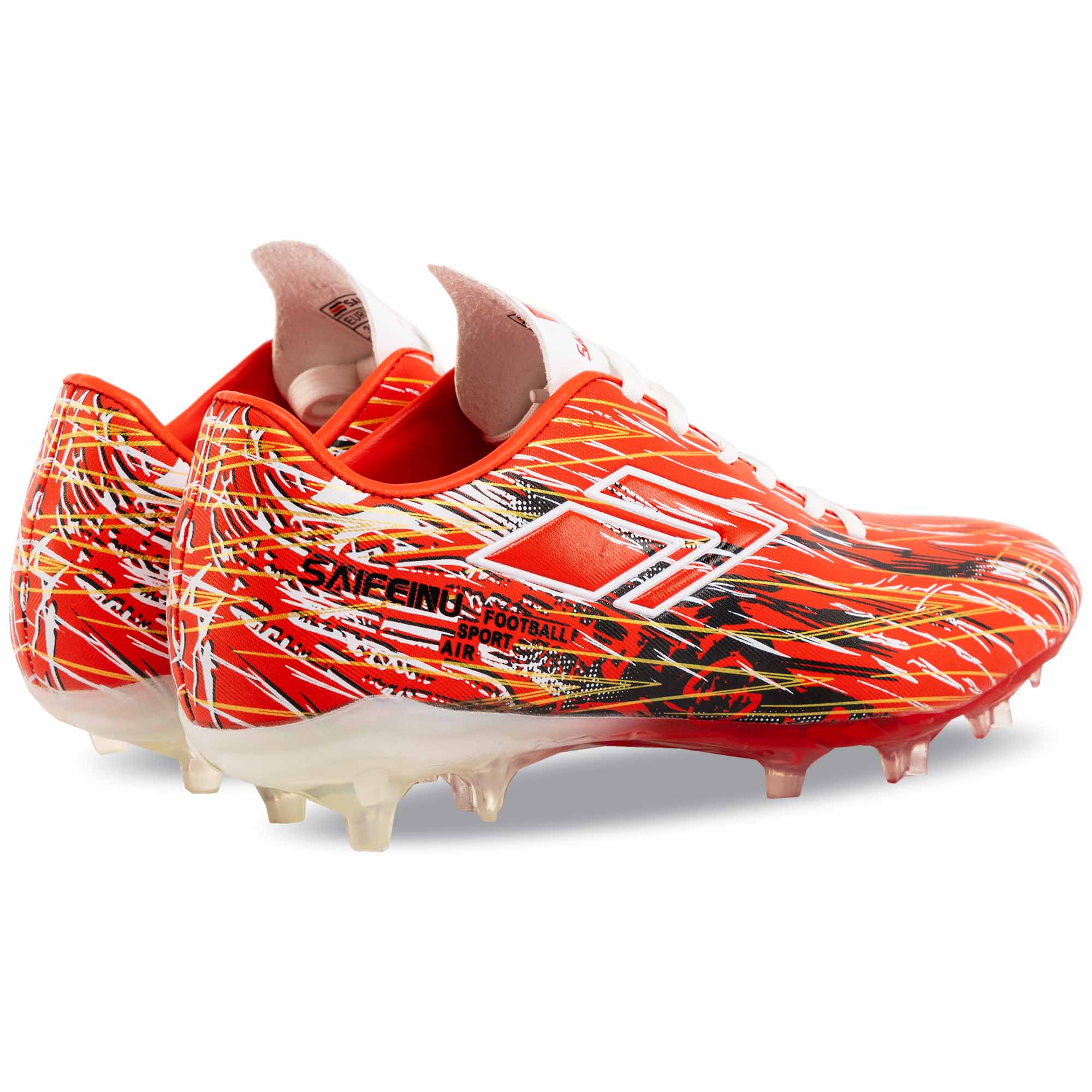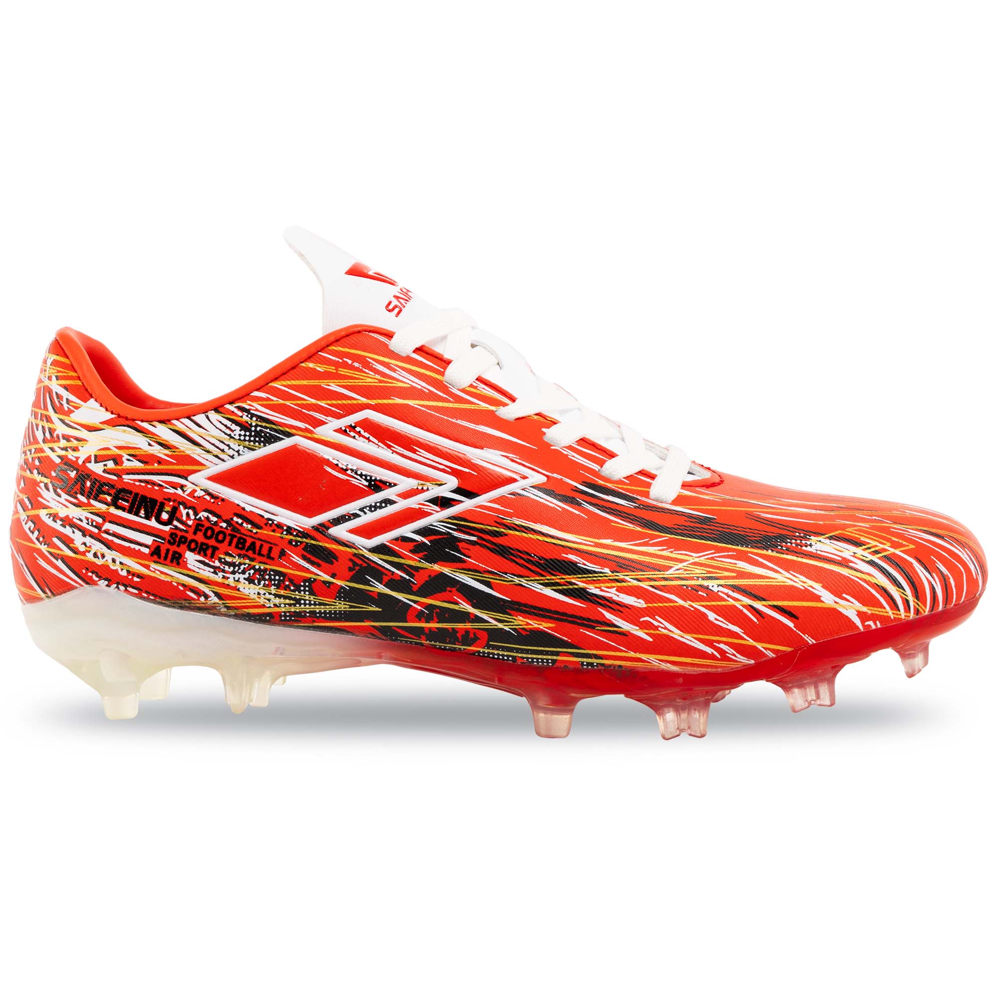 Якщо ваша дитина тренується на натуральному газоні, то футбольні бутси з неймовірно яскравим дизайном від бренду DIFENO ідеально підійдуть їй. Верх виготовлений з поліуретану, який забезпечує захист ніг від випадкових ударів, а також гарантує хороше зчеплення з поверхнею м'яча і, відповідно, відмінний контроль. Шнурівка дозволяє надійно зафіксувати взуття на ногах. Підошва з термополіуретану стійка до стирання, має необхідну жорсткість і кілька шипів. Схема розташування шипів дозволяє уникнути перевантаження стопи і окремих суглобів, домогтися максимального комфорту і стійкості на полі.