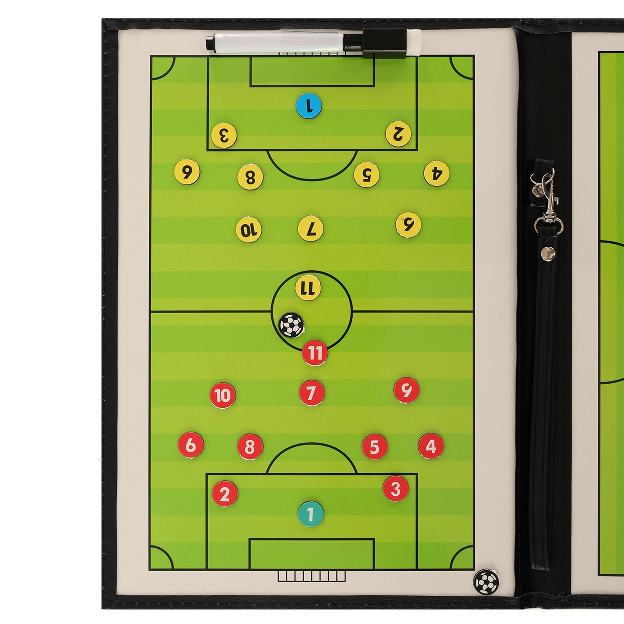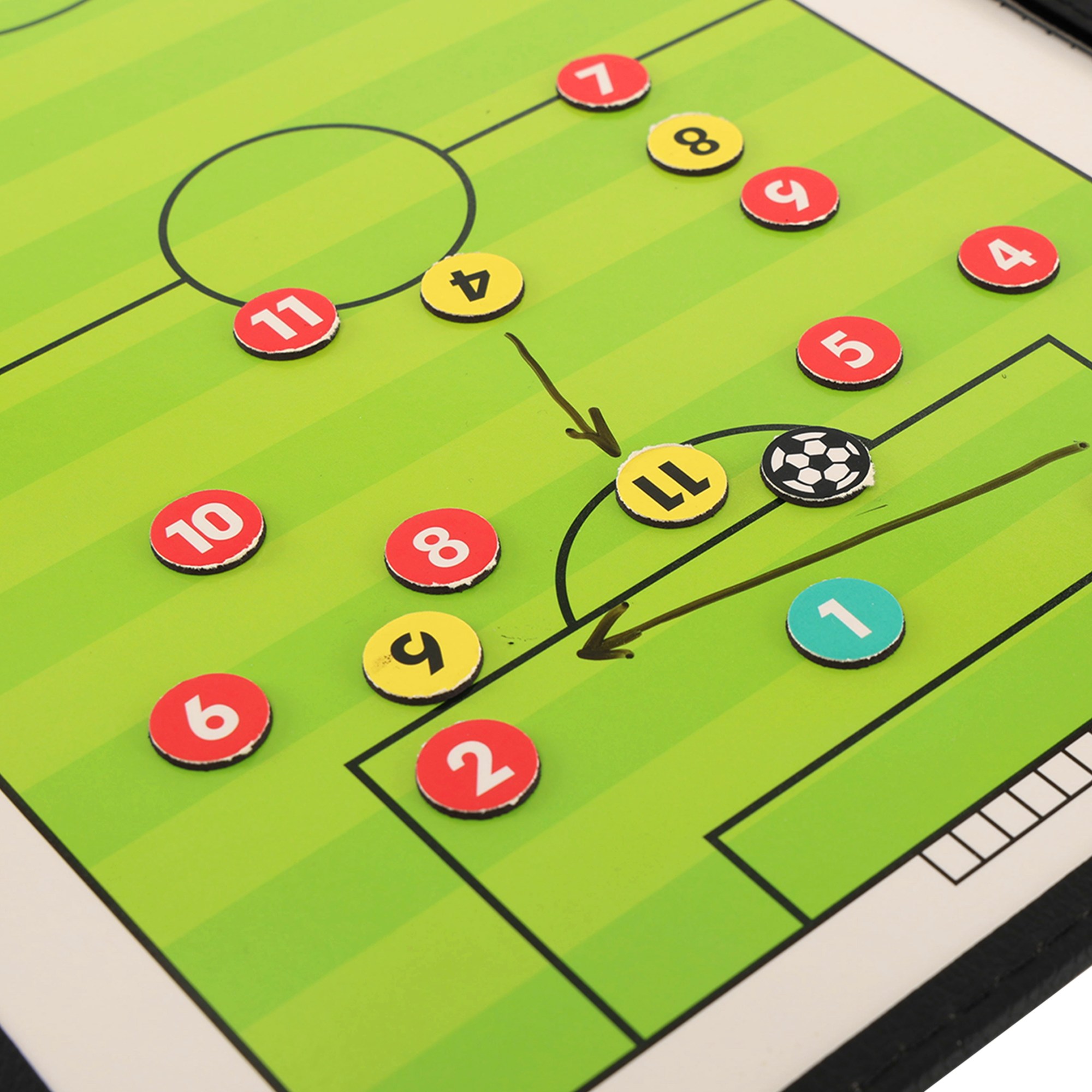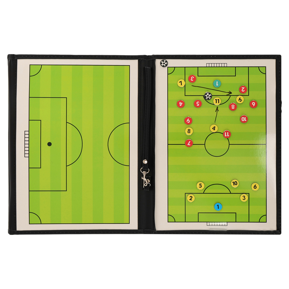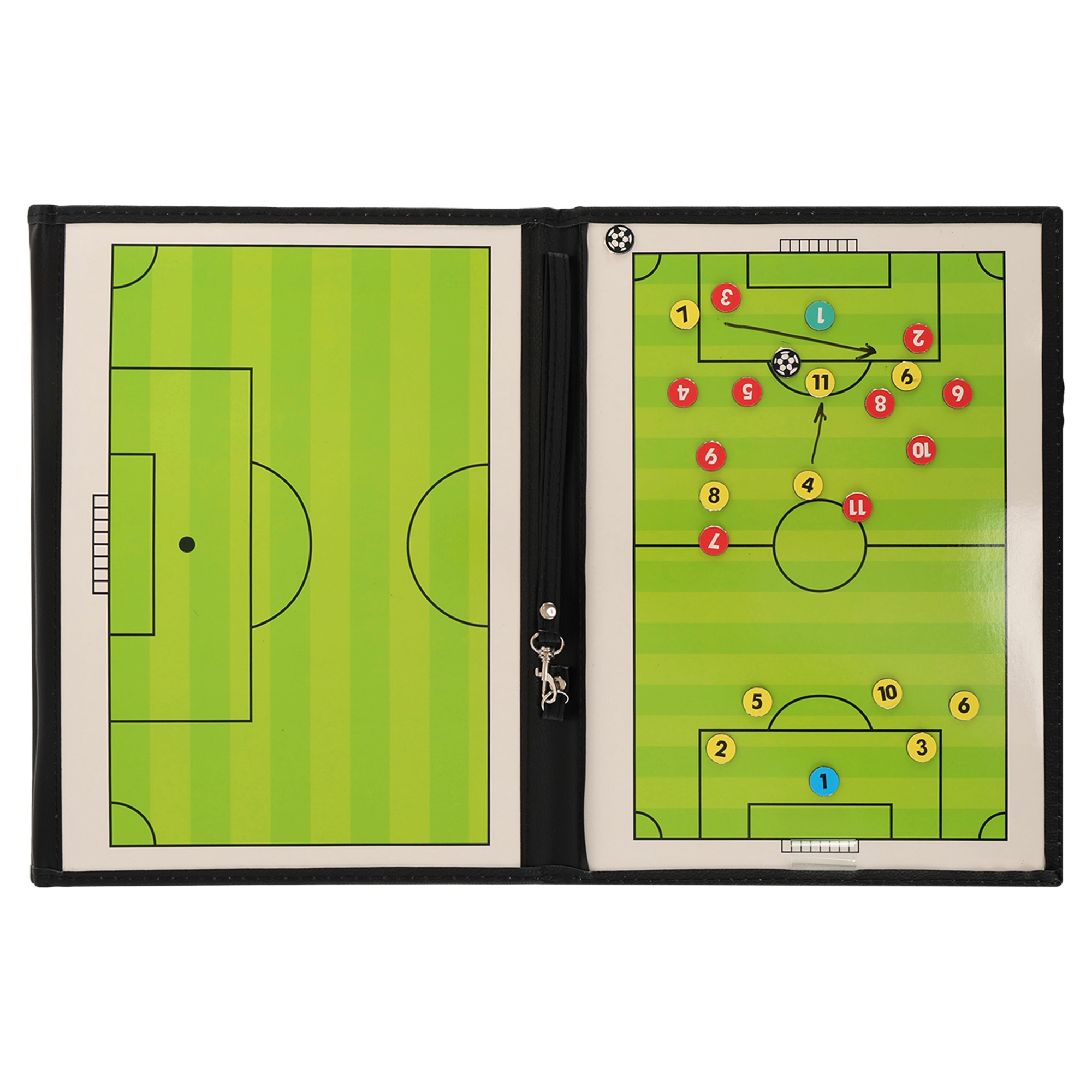 Тактична дошка призначена для баскетболу і може використовуватися під час тренувань і матчів. Тактична дошка виготовлена з картону з магнітно-маркерною основою, що дозволяє робити на дошці позначки за допомогою спеціального маркера, а потім прибирати їх при необхідності. Також комплект постачання включає 24 фішки, якими можна позначати гравців. Фішки пронумеровані. Весь набір упакований в зручну м'яку обкладинку з екошкіри, що дозволяє легко брати його з собою. На дошці тренер може промальовувати різні схеми і тактики гри, демонструючи їх спортсменам.