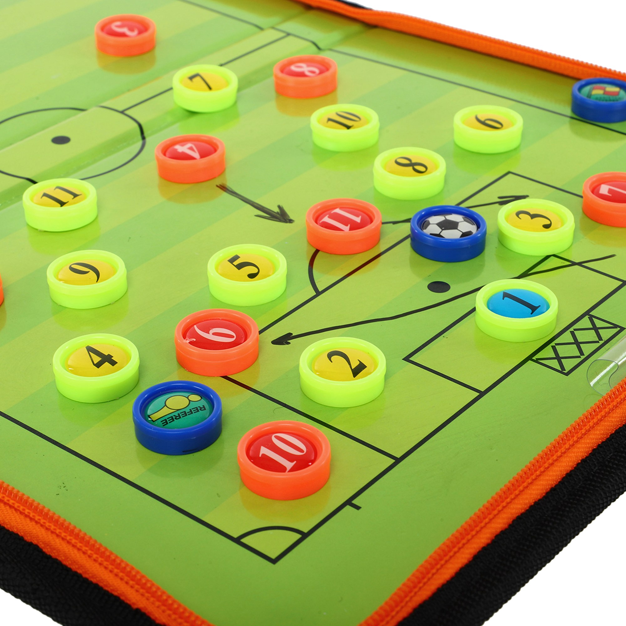 Тактична дошка тренера являє собою невеликий планшет з пластиковим корпусом і ламінованою магнітною панеллю, яка використовується в якості робочої поверхні. Також конструкція має спеціальний затискач, який дозволяє в разі необхідності закріпити на папці різні папери. Робоча поверхня має розмітку, яка відповідає виду спорту і дозволяє тренеру з максимальною точністю демонструвати спортсменам тактику гри. Комплект постачання включає губку для стирання, 12 фішок, які позначають гравців, і маркер. Такого комплекту цілком достатньо, щоб наочно продемонструвати гравцям тактику гри.