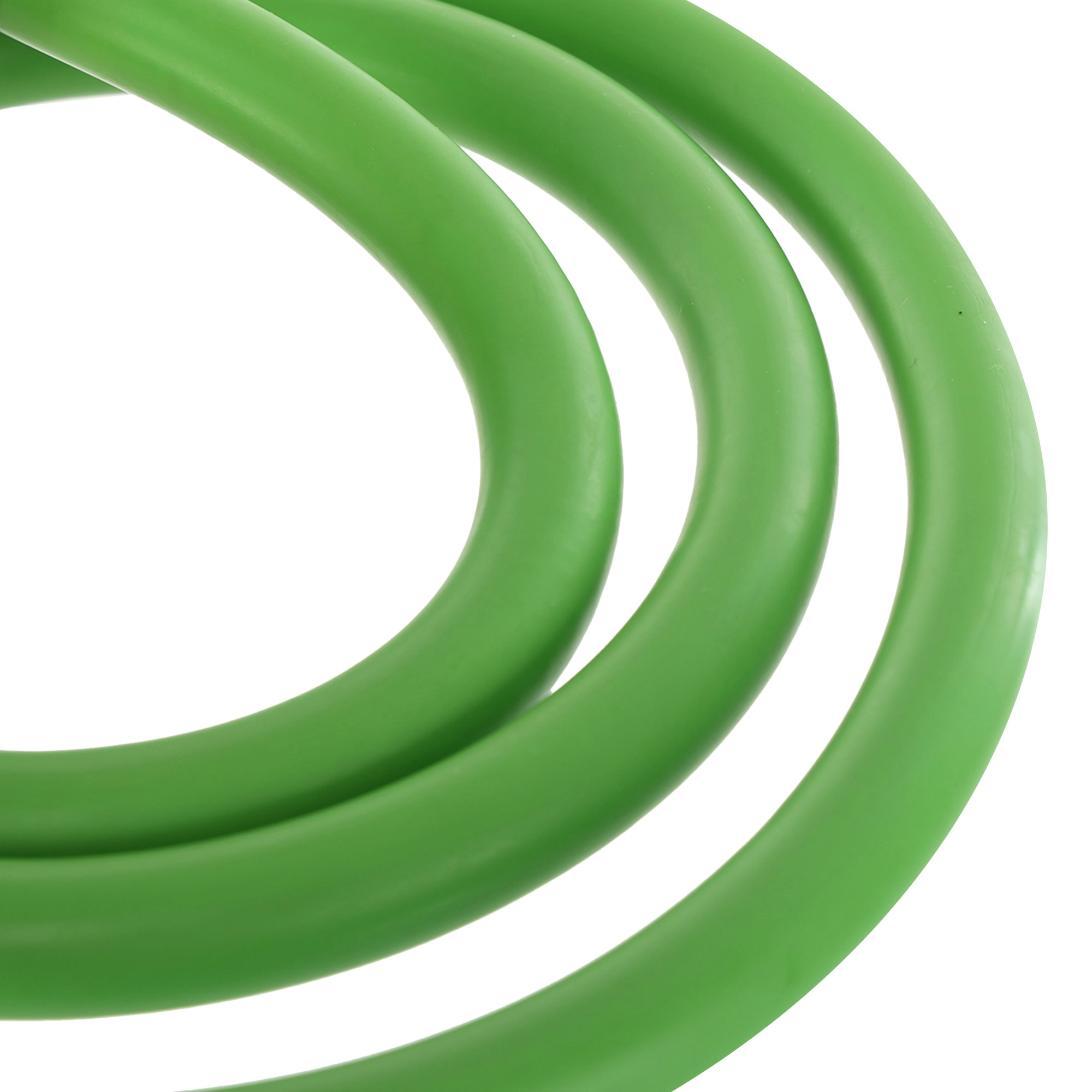 Виготовлений із високоякісного латексу, стійкого до багаторазових розтягувань, вологи та перепадів температур. Це робить еспандер надійним супутником як для тренувань у приміщенні, так і на вулиці. Розмір джгута – 4х14x1200 мм, колір – зелений, що також спрощує швидку візуальну ідентифікацію потрібного навантаження за наявності кількох варіантів.