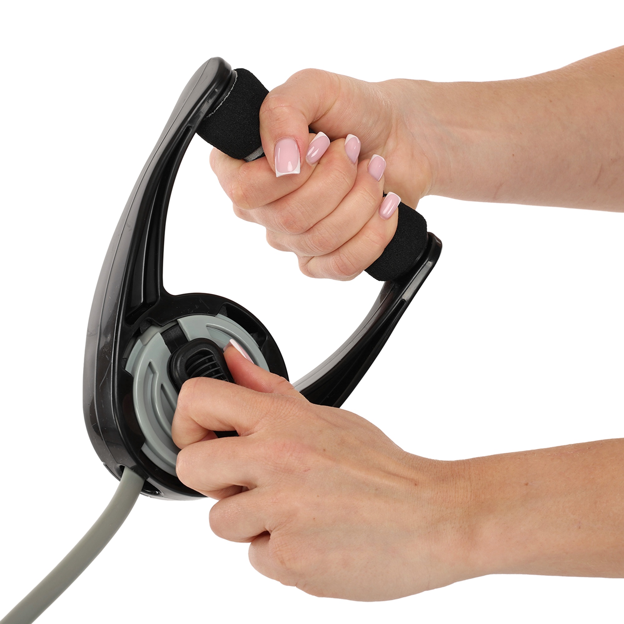 - Компактний та легкий, еспандер легко поміщається у рюкзак або спортивну сумку. Його можна брати із собою у зал, на вулицю або у відрядження — тренування доступні у будь-якому місці.