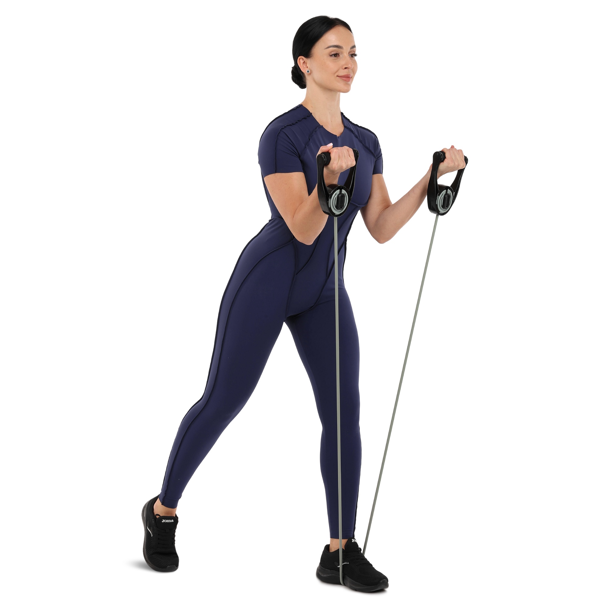 Ефективність тренувань із цим еспандером полягає у його здатності створювати зростаючий опір у міру розтягування - м'язи включаються в роботу на всій амплітуді руху, що робить вправи результативнішими. Саме з цього починається перевага: ви відчуваєте повноцінне навантаження з перших повторів та зберігаєте м'язову напругу до кінця підходу.Особливість моделі PRO-SUPRA LT-1501-160 — це ручки з нейтральним хватом, які сприяють рівномірному опрацюванню м'язів плечового пояса, рук та кисті. Така конструкція створює нестандартне навантаження, збільшуючи ефективність тренування та розвиваючи силу хвату. Додаткову зручність забезпечують засувки-фіксатори на ручках, що дозволяють легко регулювати довжину джгута. Це означає, що ви можете адаптувати снаряд під конкретну вправу або рівень складності від розминки до повноцінного силового тренування. Виконаний із пружного латексу, стійкого до розтягування та зносу.