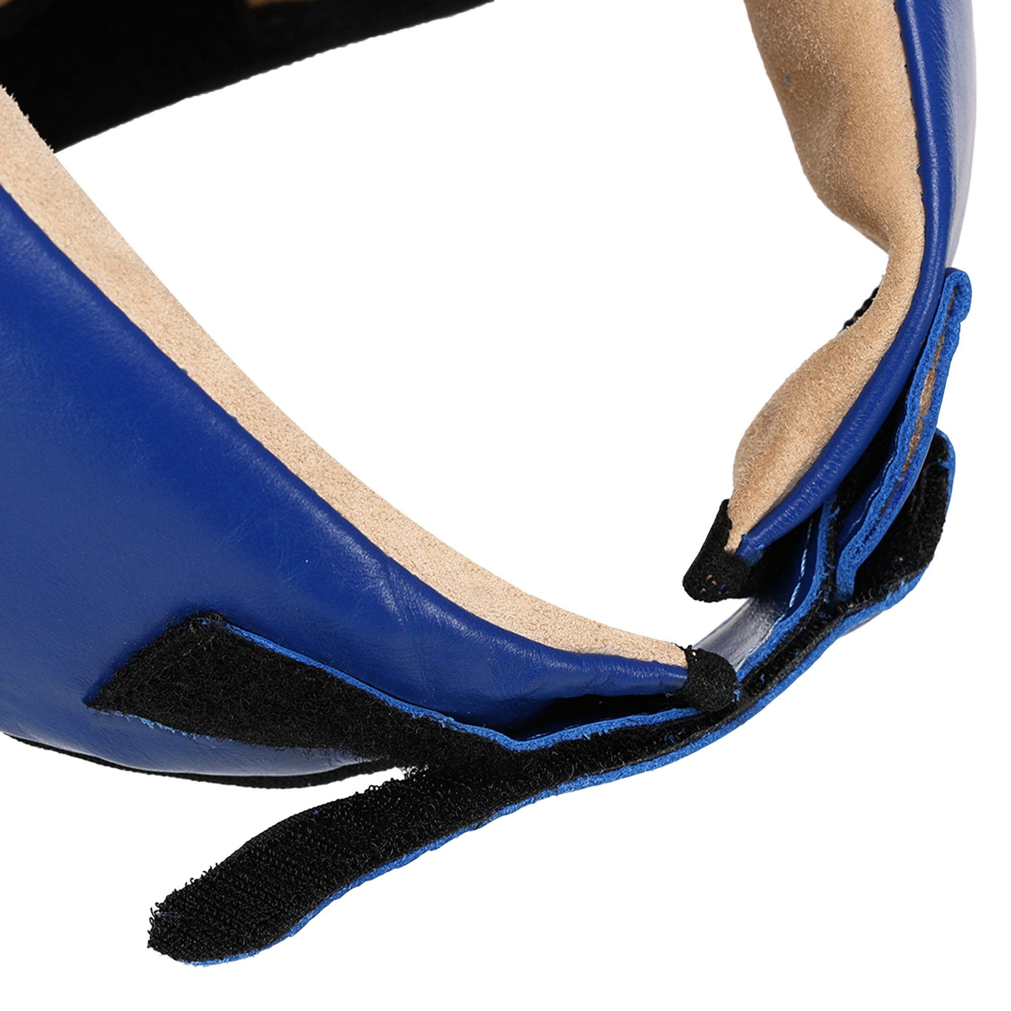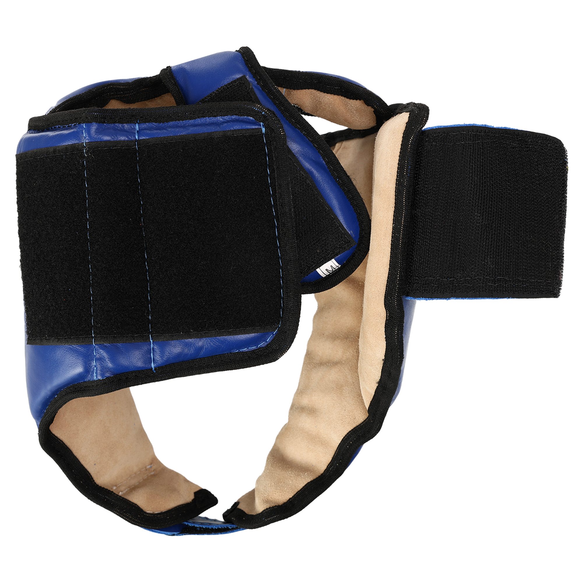 Зовнішня оболонка шолома виготовлена з високоякісної шкіри, стійкої до утворення тріщин і швидкого зносу. Усередині розташований амортизувальний наповнювач, завдяки якому шолом ефективно гасить удари та знижує ризик травм. Конструкція має щільну посадку, надійно фіксує і захищає лоб, скроні та вуха. Захисні накладки з боків захищають вушні раковини, не впливаючи на слух спортсмена. М'яка підкладка допомагає утримувати шолом на місці та запобігає його зміщенню під час бою. Для фіксації використовуються ремінці на липучках, за допомогою яких екіпіровку можна підігнати за розміром.