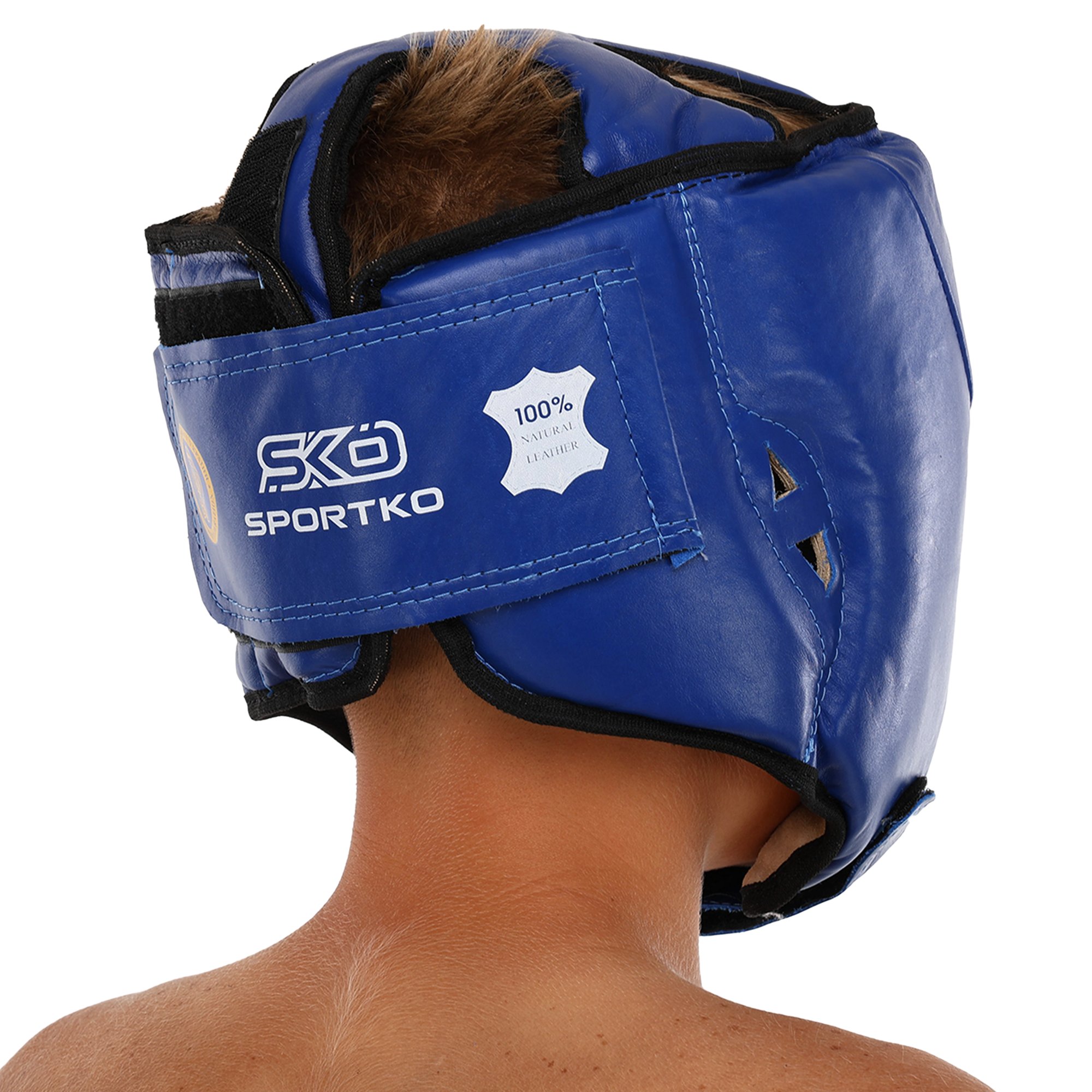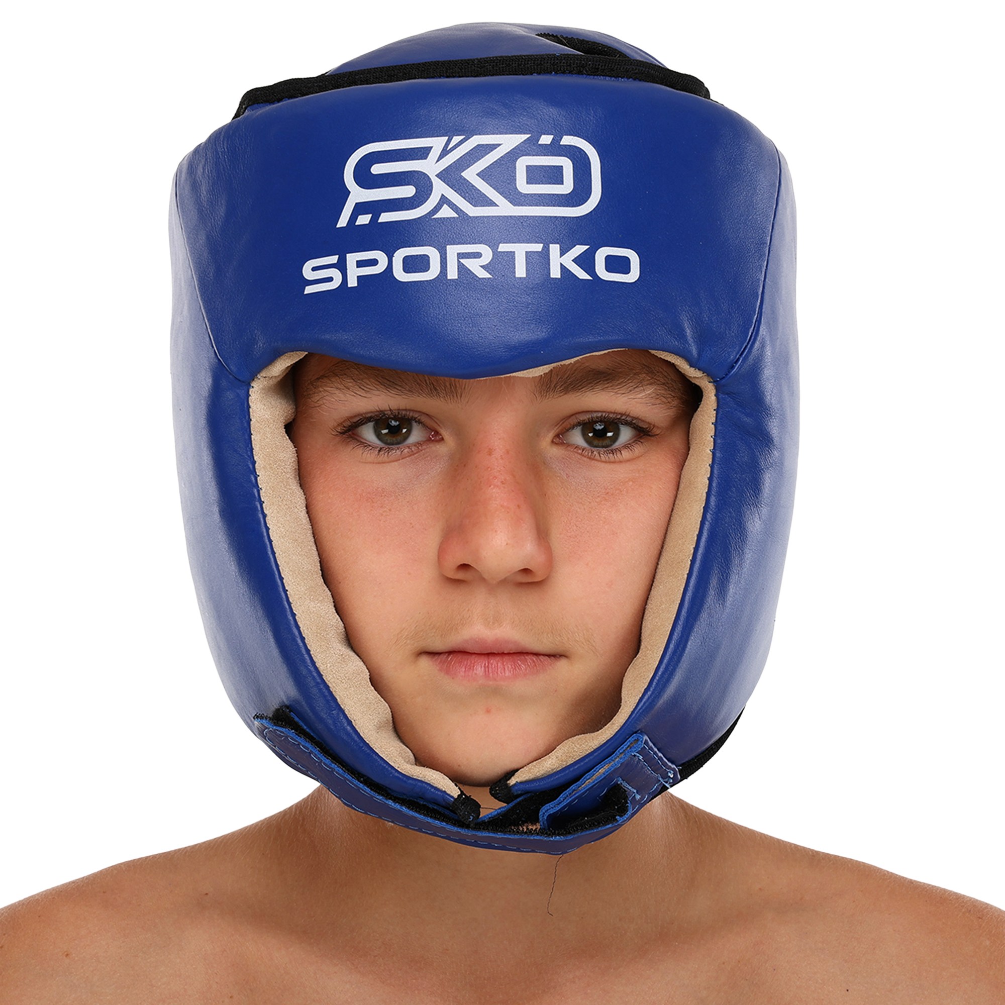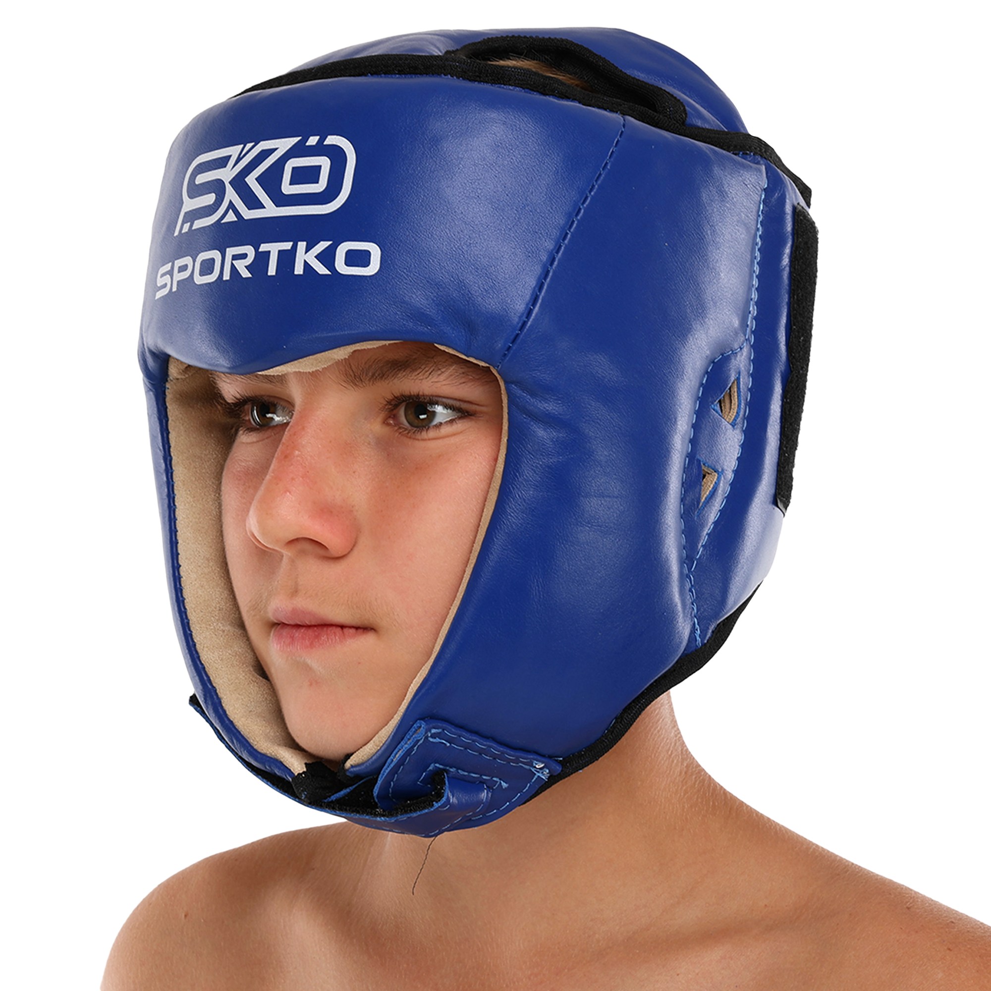 Шолом боксерський відкритий шкіряний ФБУ SPORTKO ОК1 SP-4706 М-XL кольори в асортименті Код SP-4706