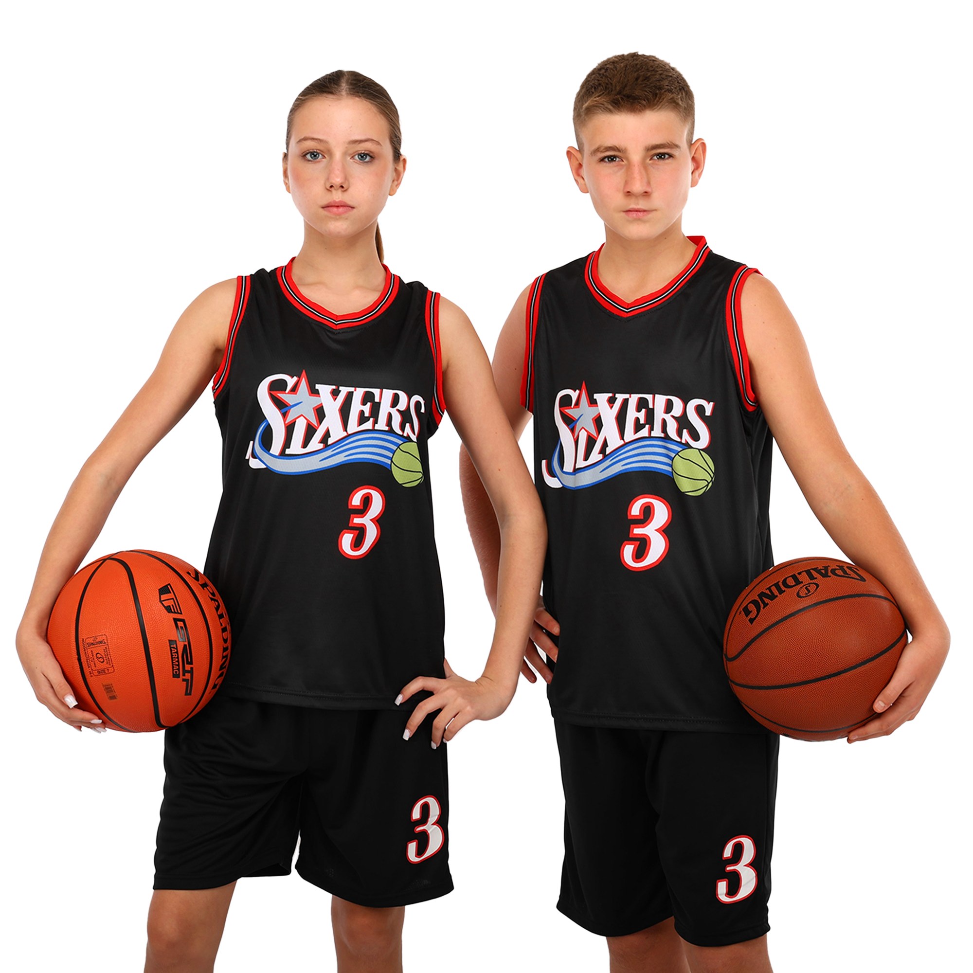 Форма баскетбольна дитяча NBA клуб Sixers 3 BA-6657 S-2XL чорний-червоний Код BA-6657