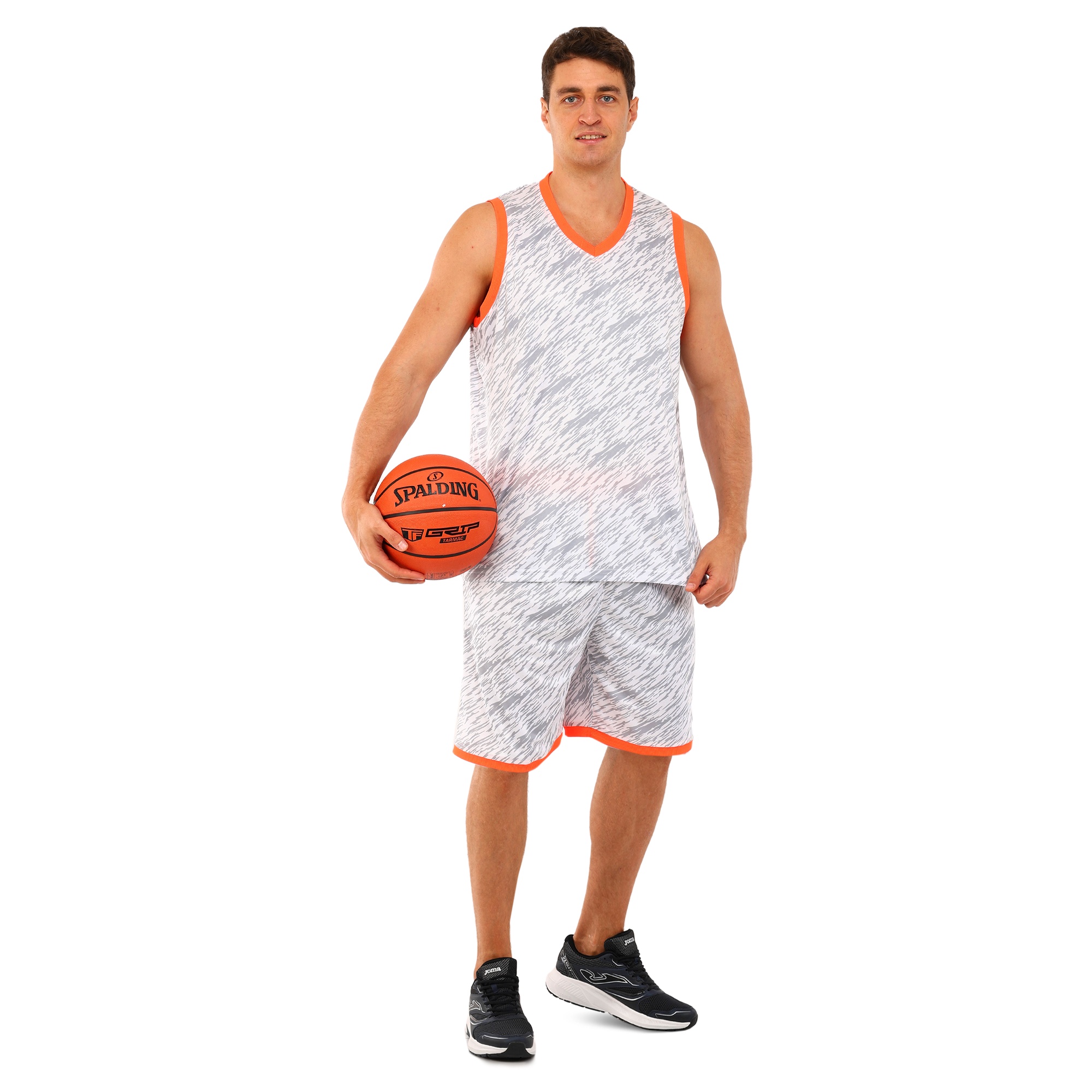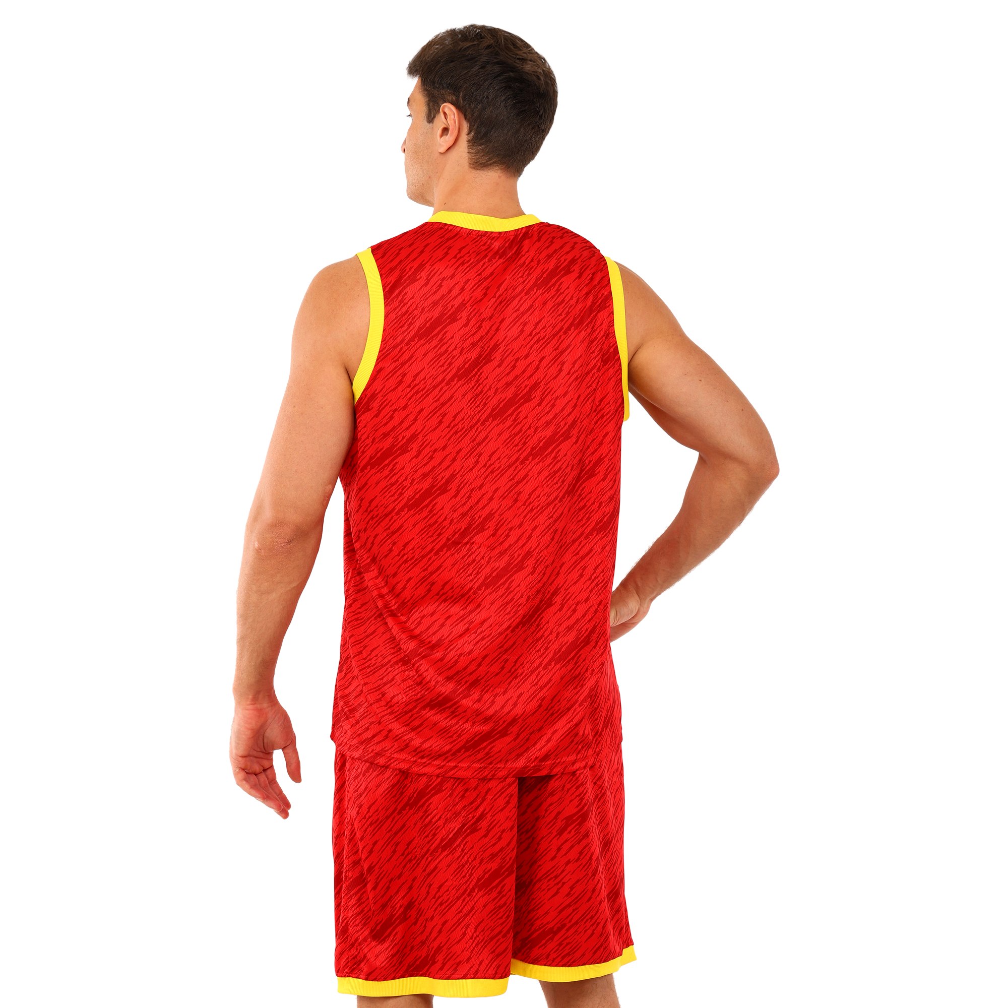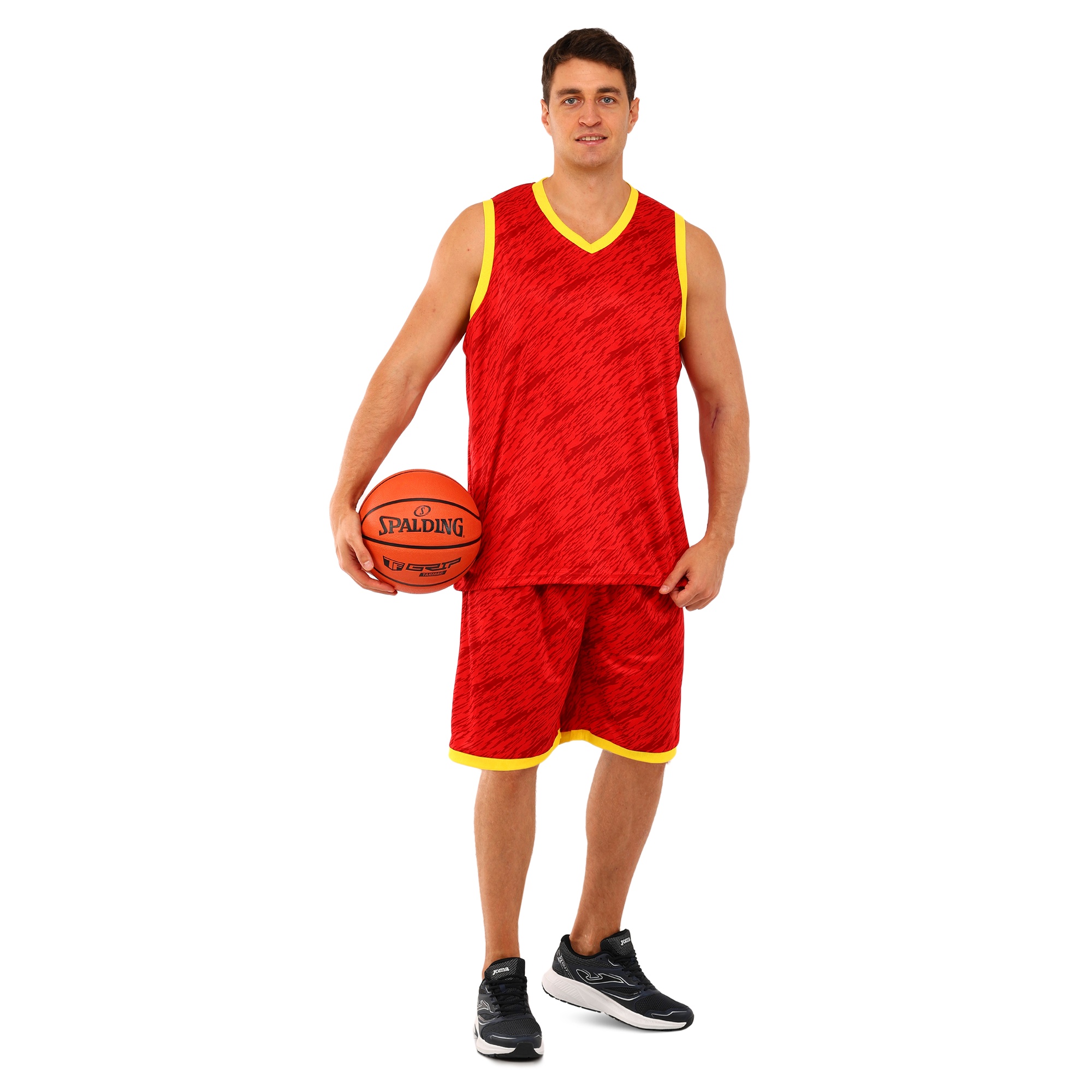 Форма для баскетболу виготовлена з поліестеру, який характеризується своєю міцністю та зносостійкістю. Тканина має текстуру легкої, дрібної перфорації, яка не особливо помітна візуально, але відчутна на дотик, що забезпечує чудову вентиляцію та дозволяє шкірі дихати навіть у найінтенсивніших ігрових ситуаціях.Майка оснащена v-подібним вирізом, що гарантує відмінну посадку та свободу рухів. Прямий крій майки надає їй класичного вигляду і робить її універсальною в поєднанні з будь-якими спортивними аксесуарами. Шорти також мають прямий крій та вільний дизайн, що дозволяє легко рухатися та здійснювати різкі повороти. Наявність кишень у шортах додає функціональності, що дозволяє зберігати дрібні особисті речі, такі як ключі або невеликий мобільний телефон.