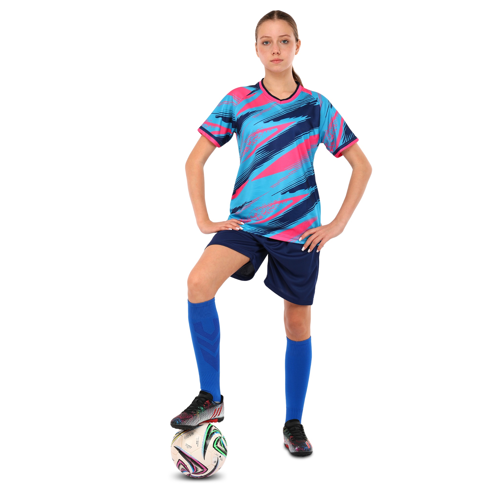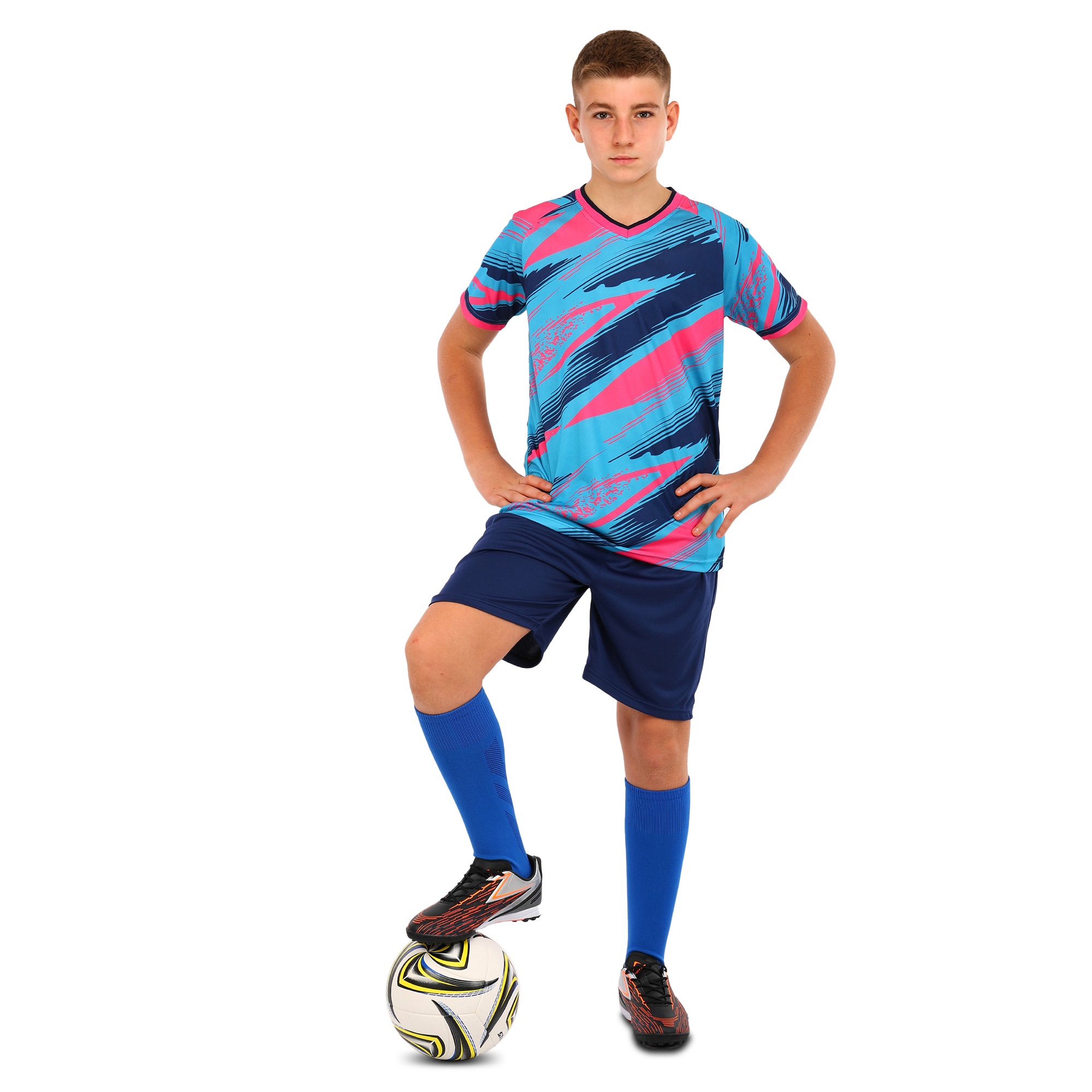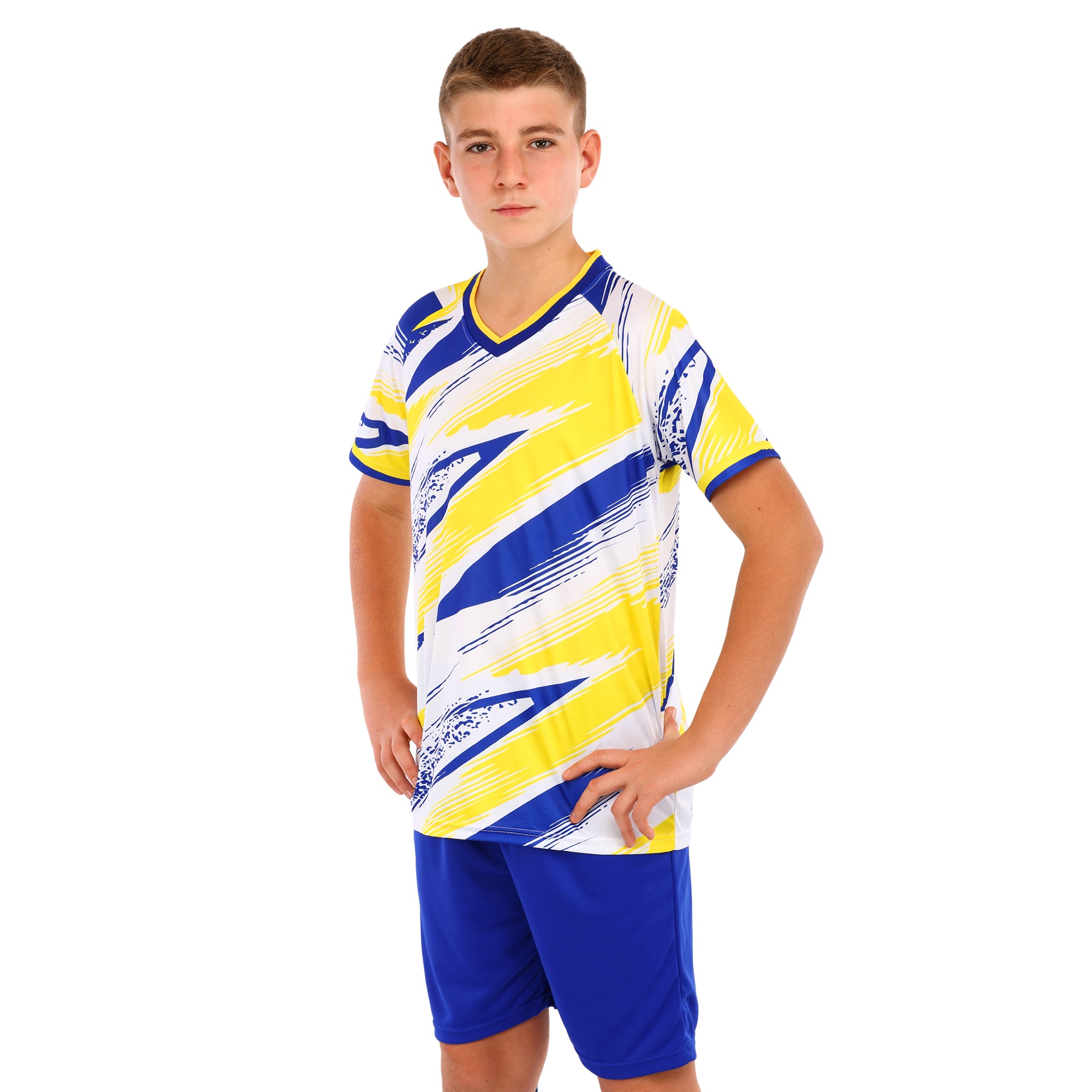 Футболка і шорти з яскравим дизайном підходять не тільки для футболу, але і для будь-якої спортивної активності. У цій формі дитина може відвідувати уроки фізкультури, займатися бігом, грати в різні спортивні ігри та просто гуляти. Комплект представлений широкою розмірною лінійкою і підходить хлопчикам і дівчаткам.
