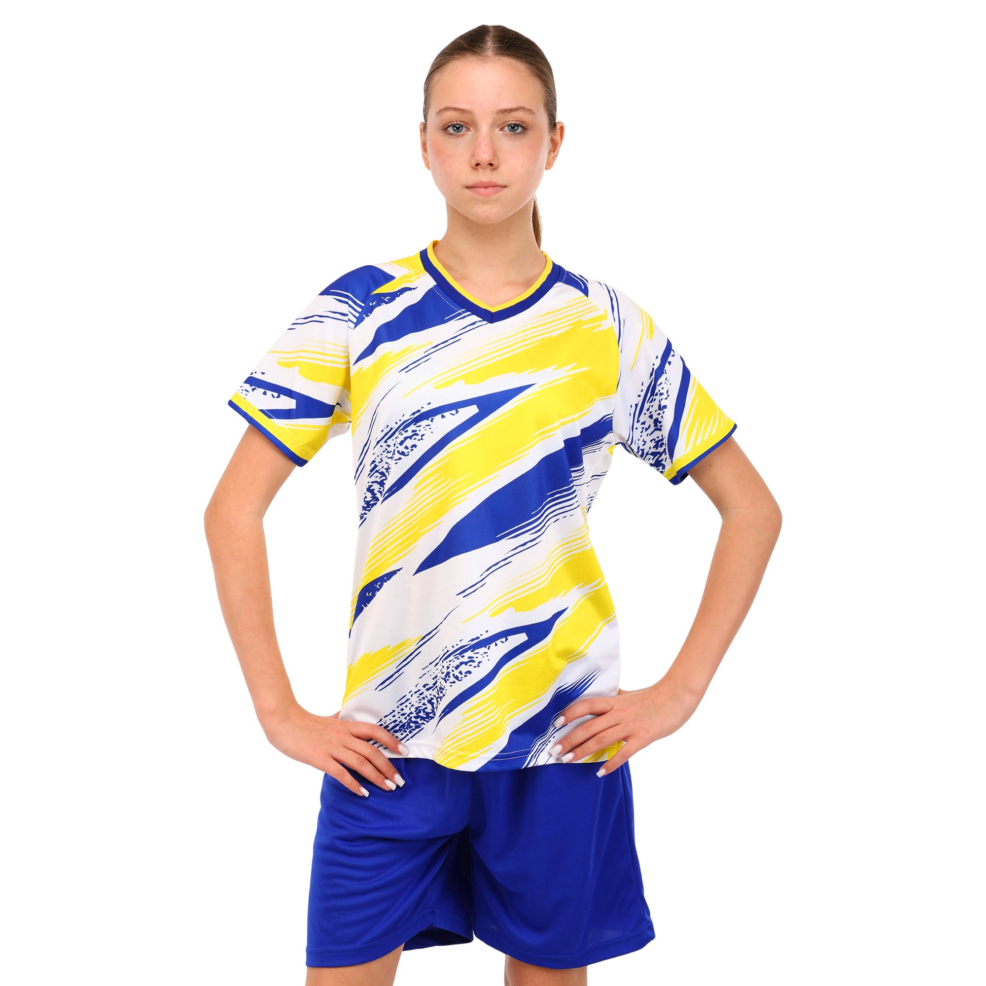 Форма виконана з синтетичної тканини з оптимальними властивостями для активних занять спортом. Матеріал надзвичайно легкий і приємний на дотик, добре пропускає повітря. Він ефективно вбирає і випаровує вологу, завдяки чому дитина зможе відчувати себе комфортно навіть у найспекотніші дні. Догляд за речами з синтетичної тканини дуже простий, форма витримує часте прання, не розтягується і зберігає яскравість кольору. На тканині не з'являються ковтунці та інші сліди зносу.