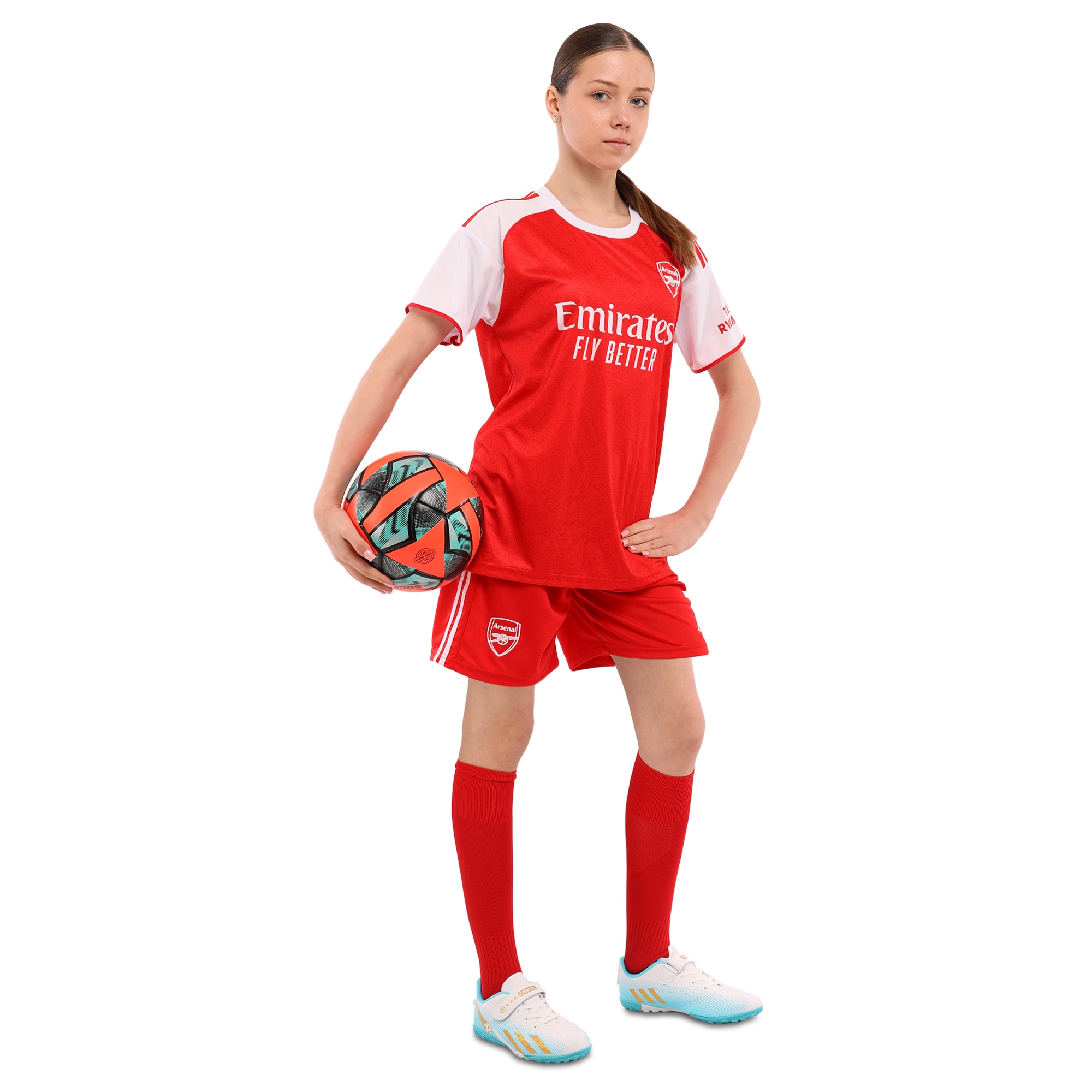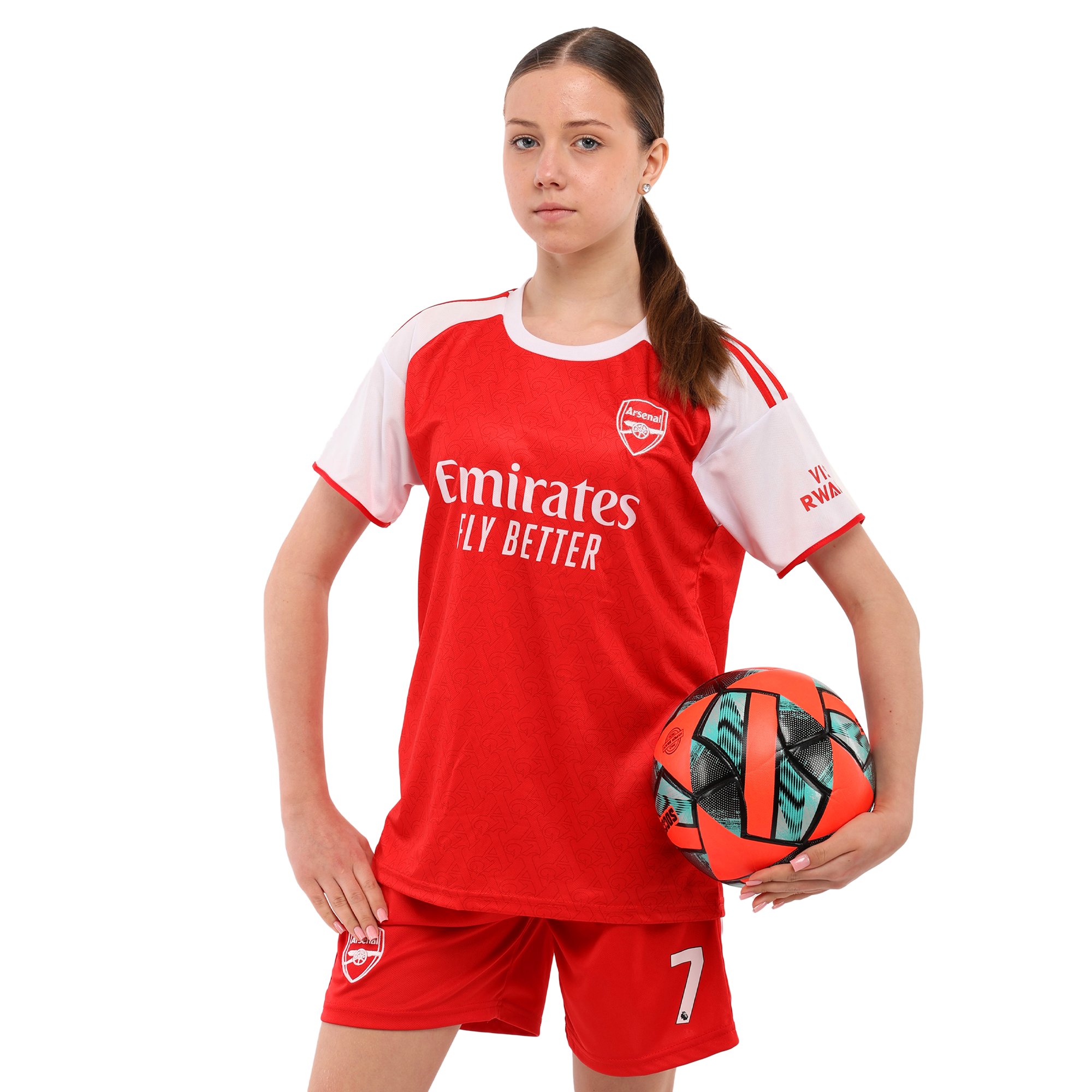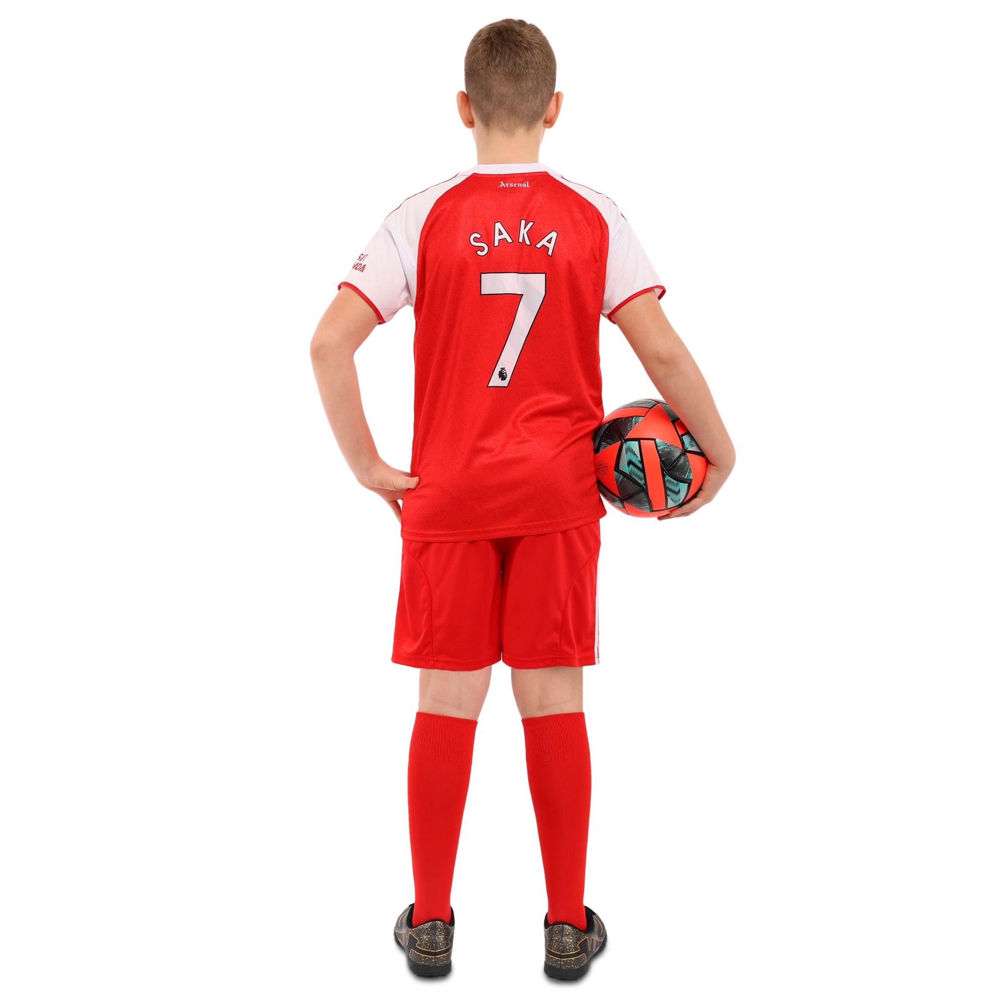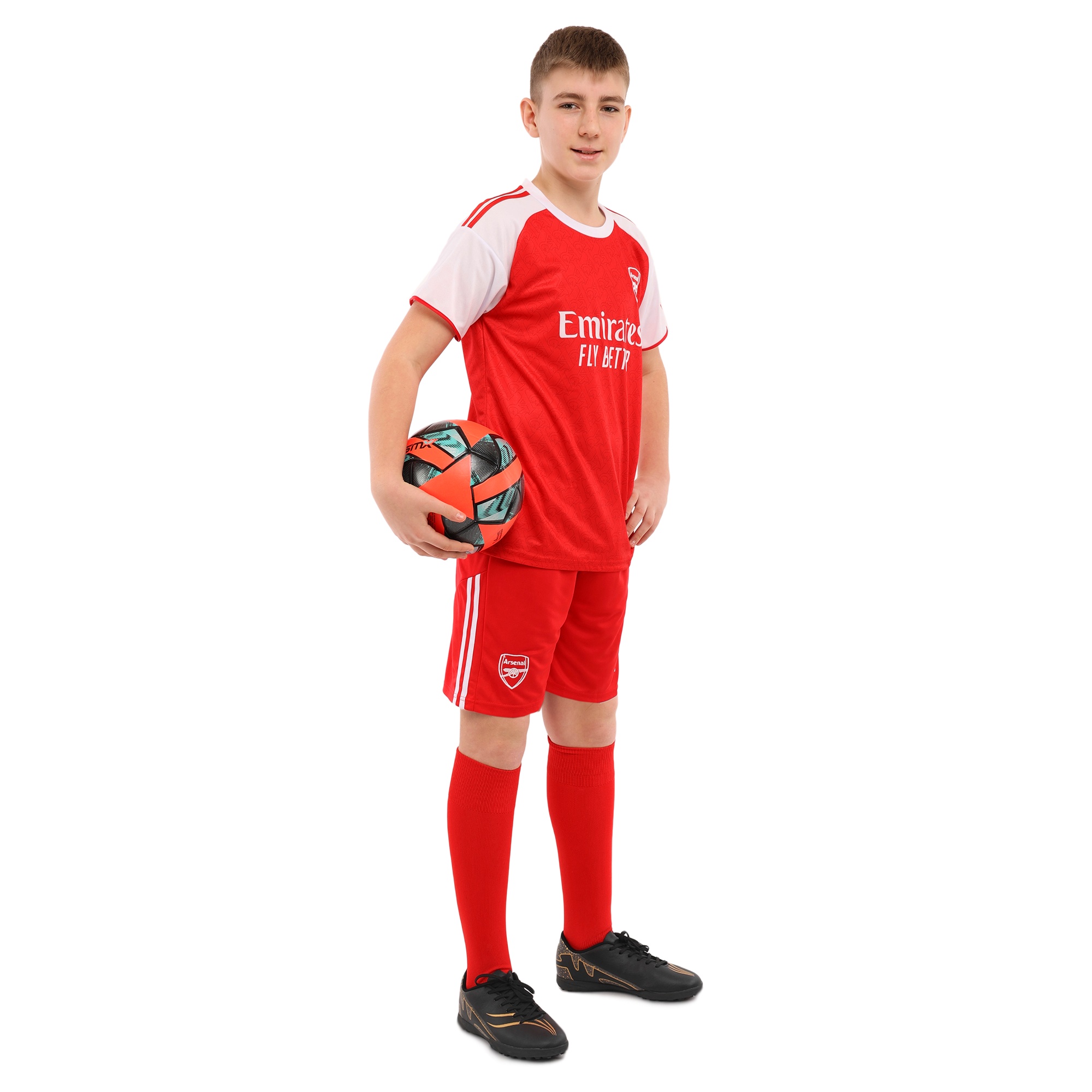 Домашня футбольна форма клубу ARSENAL - це відмінний вибір для дитини, яка займається футболом і вболіває за цей футбольний клуб. Форма виконана в кольорах клубу і має його символіку. Вона представлена великим асортиментом розмірів, що дозволяє підібрати підходящий варіант для дітей різного віку, хлопчиків і дівчаток. Форма складається з шортів і футболки з коротким рукавом і круглим вирізом на горловині. Шорти надійно фіксуються на тілі за допомогою еластичної гумки. І футболка, і шорти мають вільний крій, що забезпечує максимальний комфорт під час виконання будь-яких рухів. Форма виконана з поліестеру, матеріал гарантує швидке відведення вологи, легкість, міцність і стійкість до зносу.
