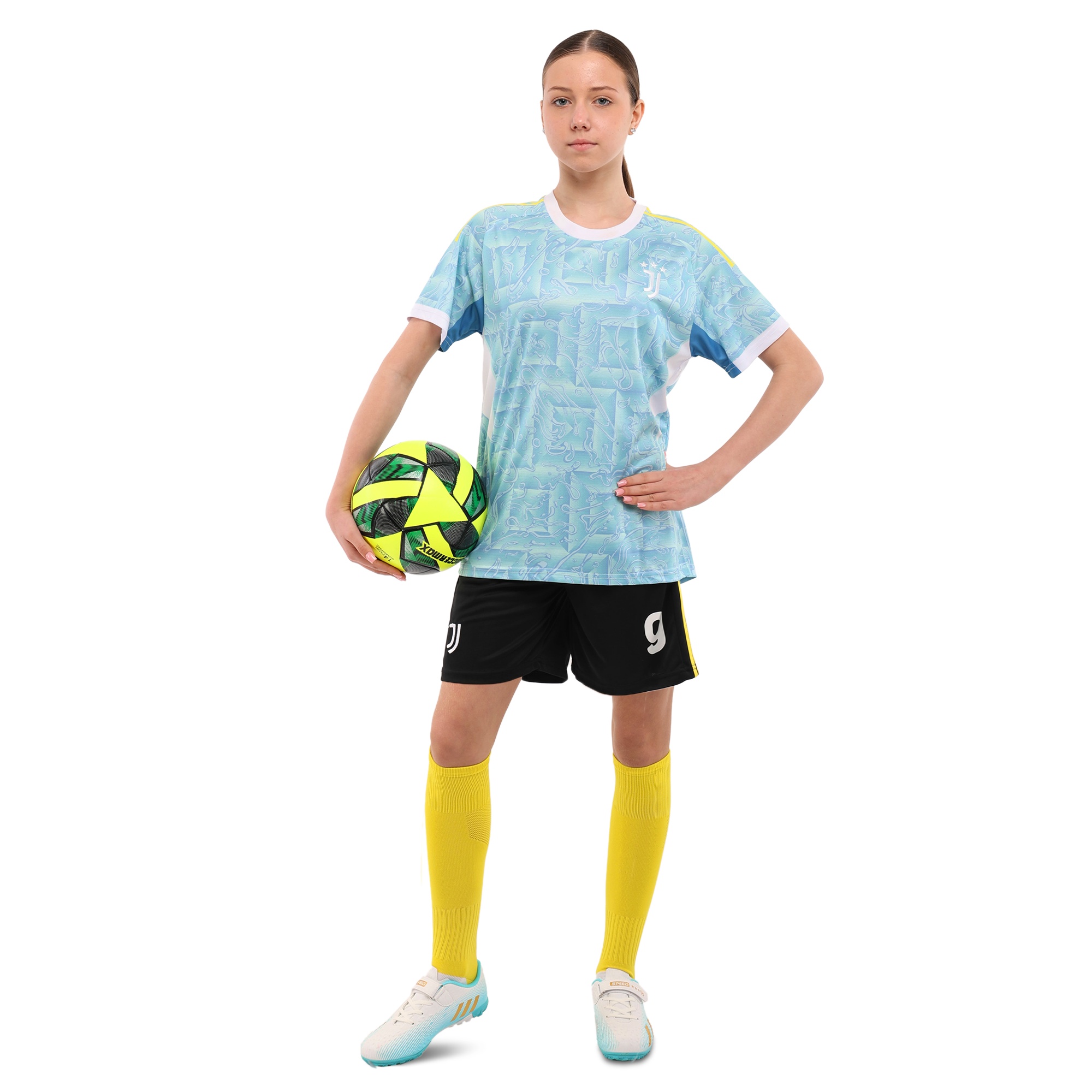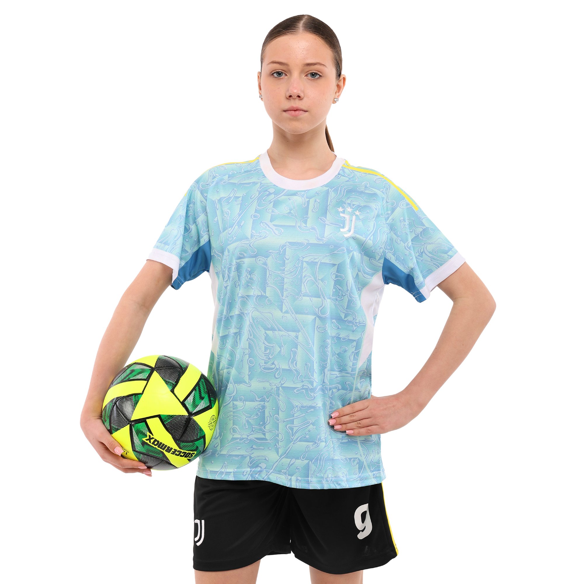 Футбольна форма в кольорах клубу JUVENTUS - це чудовий подарунок для дитини, яка захоплюється футболом і вболіває саме за цей футбольний клуб. Форма призначена для дітей, представлена великим асортиментом розмірів, що дозволяє підібрати оптимальний варіант для дитини будь-якого віку. Дизайн форми в точності повторює гостьову форму популярного футбольного клубу. Шорти виконані в темному кольорі, а футболка - в світлому. І шорти, і футболка мають вільний крій, що дозволяє дитині комфортно відчувати себе під час виконання тренувань і повсякденної активності. Для виготовлення форми використовується поліестер, який добре відводить вологу і пропускає повітря. Це дозволяє тілу ефективно охолоджуватися незалежно від інтенсивності тренування.