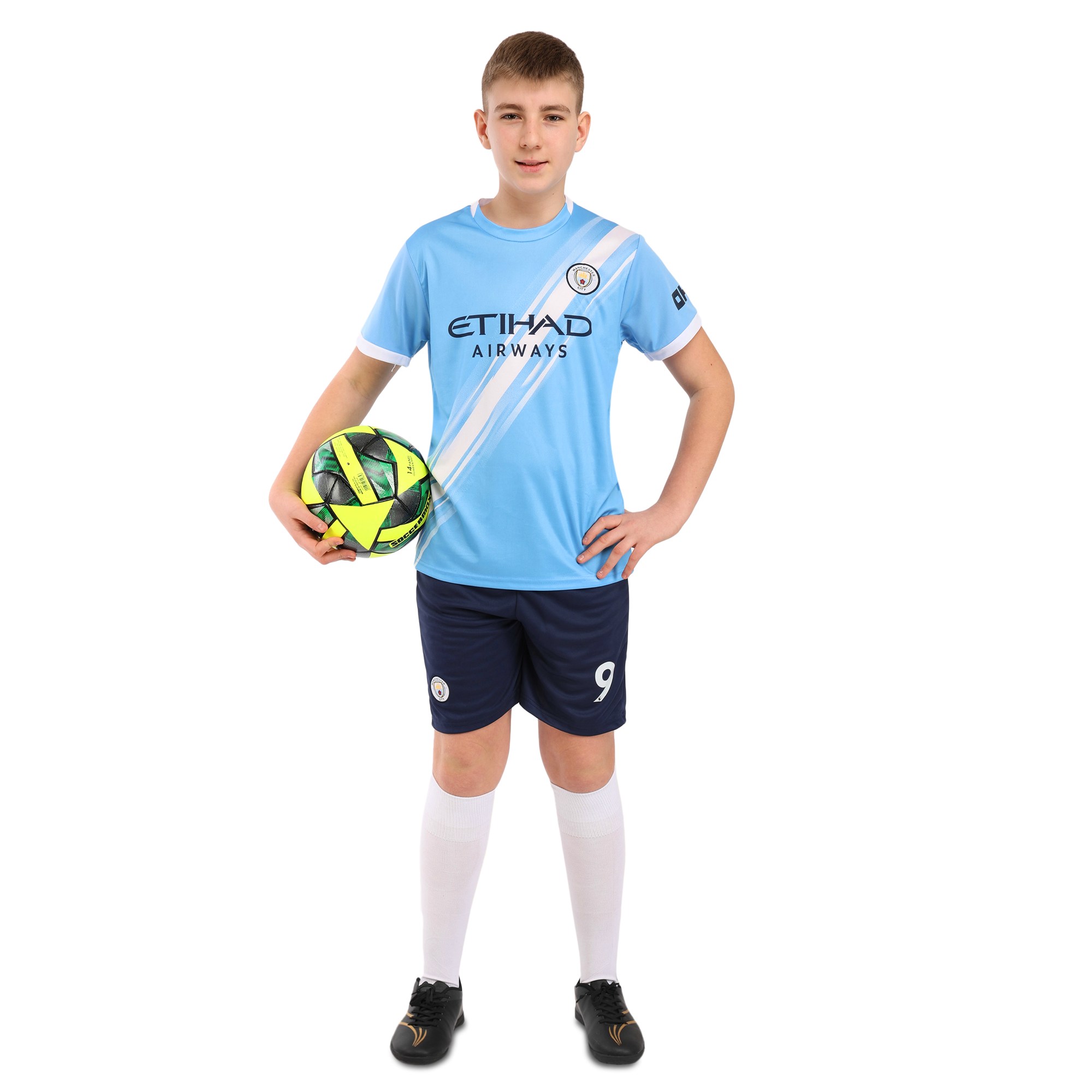 Форма футбольна дитяча із символікою футбольного клубу MANCHESTER CITY HAALAND 9 домашня 2026 SP-Sport CO-617 20-30 блакитний-білий Код CO-617