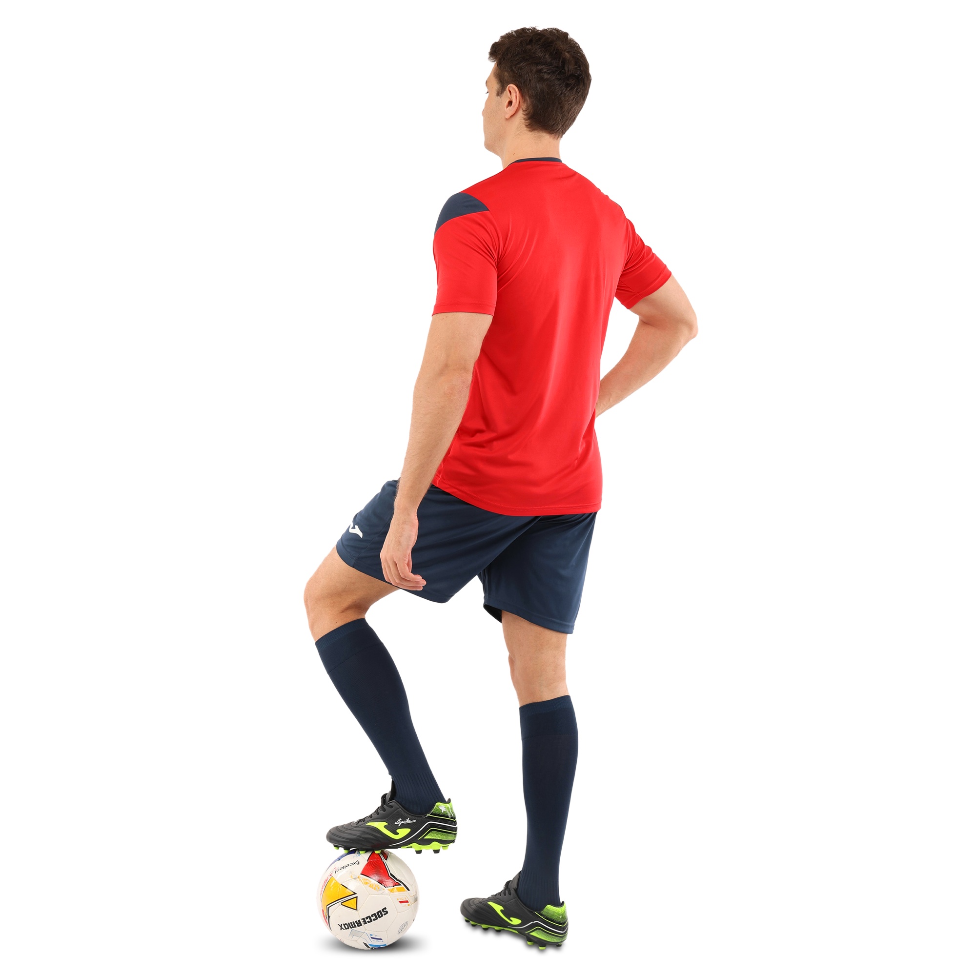 Комплектація: футболка і шорти — ідеальний стартовий набір для тренувань. Одразу в бойовій готовності: ніякої плутанини з підбором чи невідповідністю — ви готові до гри з першого погляду. Комбінація червоного верху та темно-синього низу створює виразний ансамбль, який буквально дихає енергією поля.