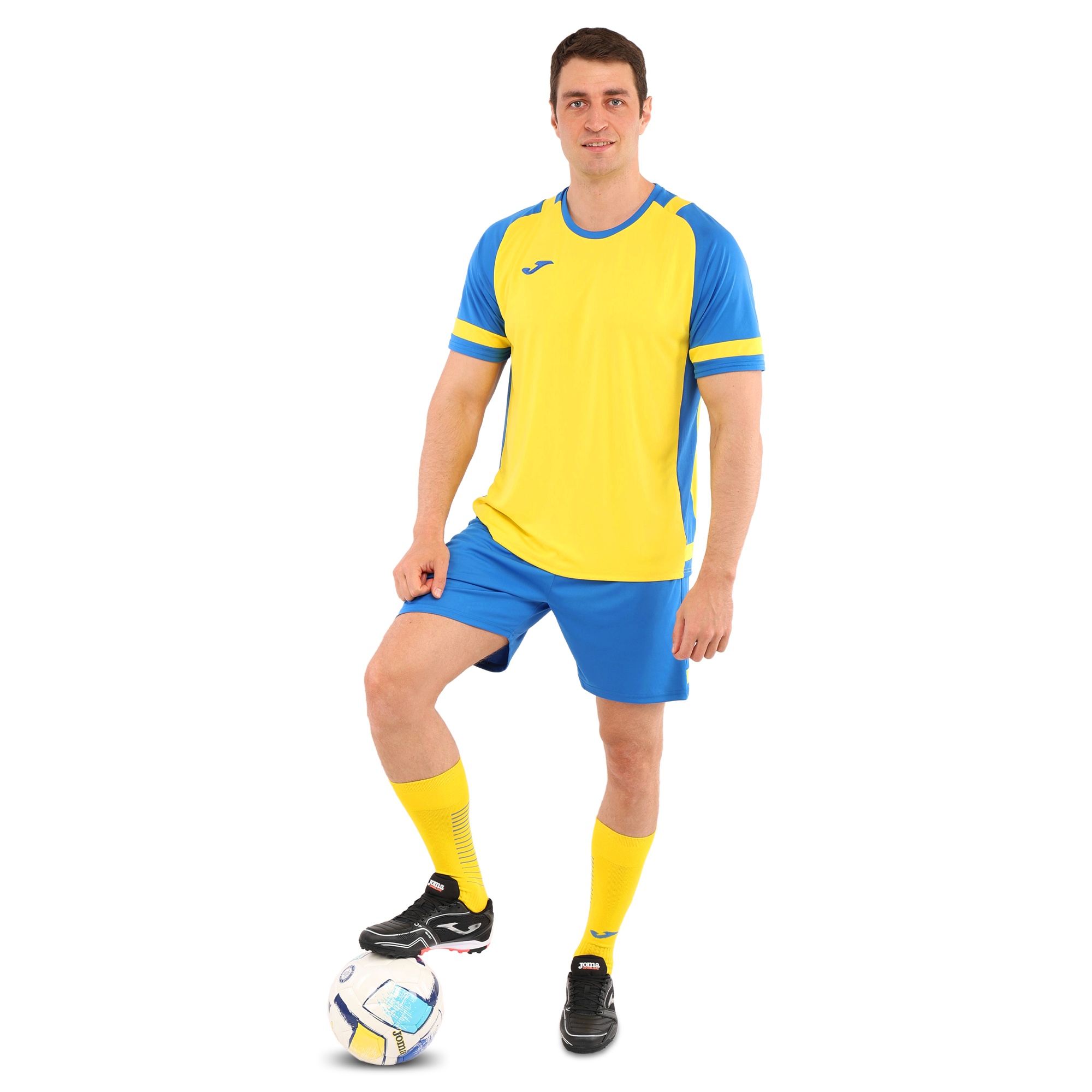 Форма футбольна комплект футболка та шорти Joma LIDER 104285-907 4XS-2XL жовтий-синій Код 104285-907