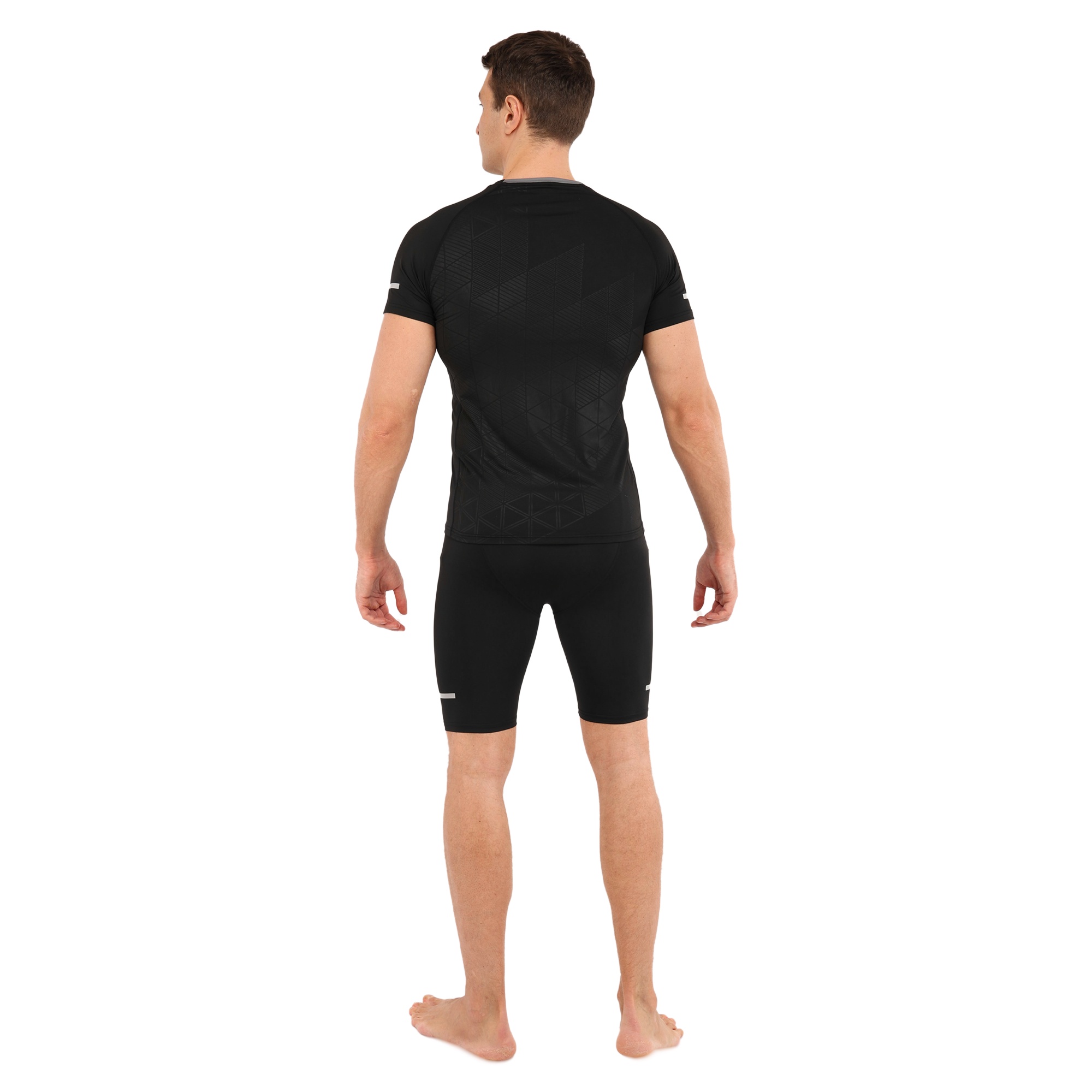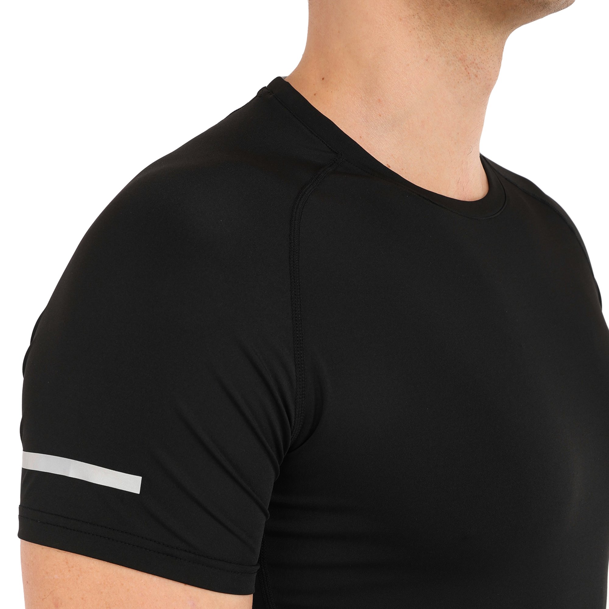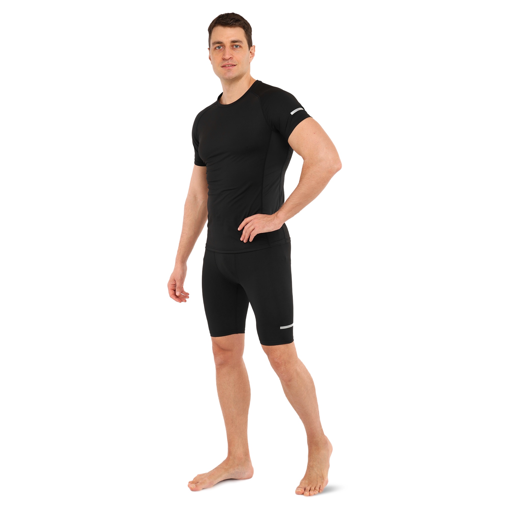 Компресійна футболка призначена для активних занять спортом і може використовуватися під час тренувань у тренажерному залі, для бігу, кросфіту або єдиноборств, а також підійде для ігрових видів спорту. Футболка призначена для дорослих чоловіків, вона виконана в чорному кольорі та має однотонний дизайн. Завдяки її еластичності ви можете виконувати будь-які рухи руками або тулубом.