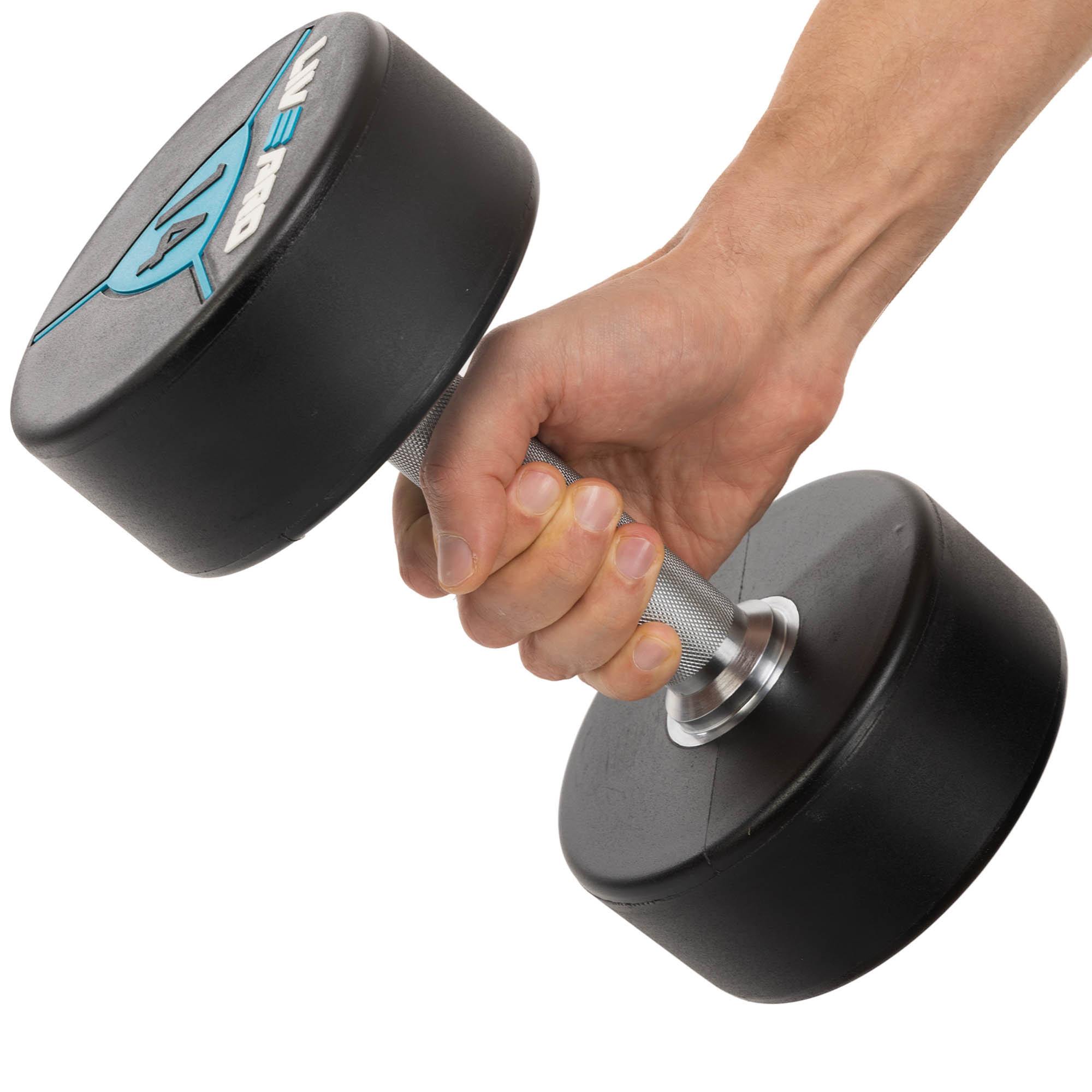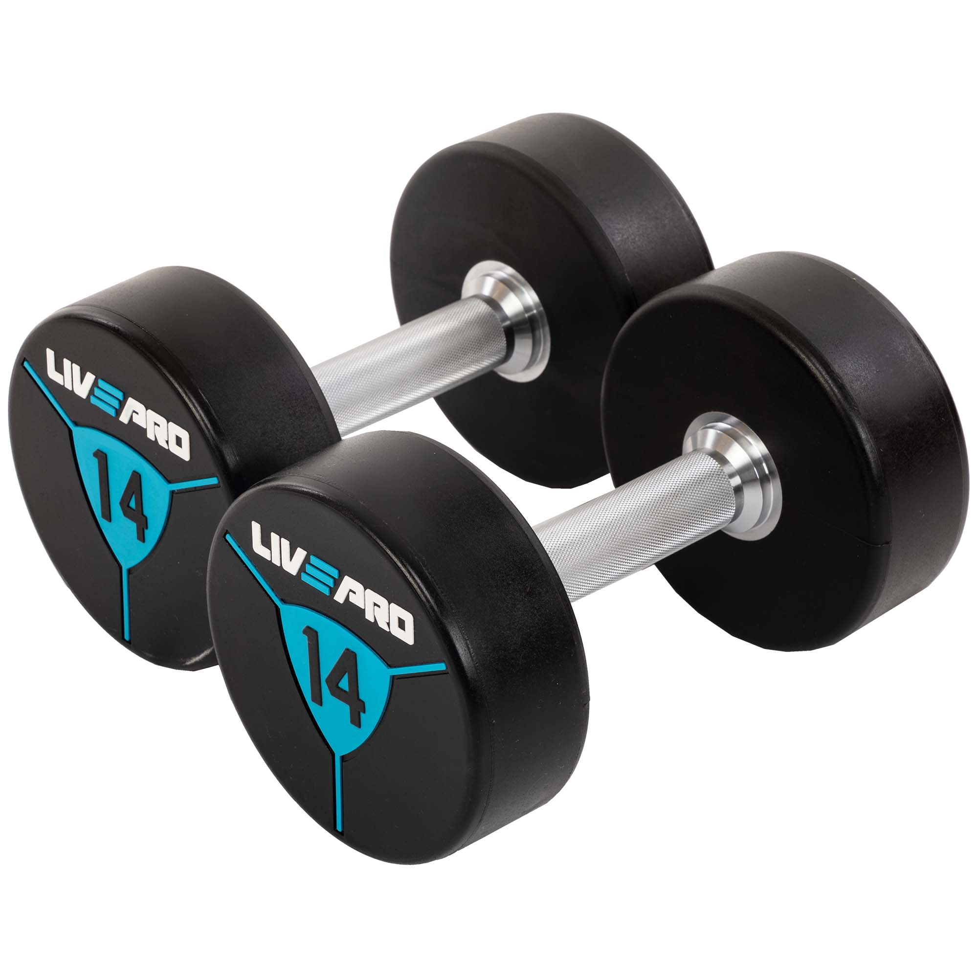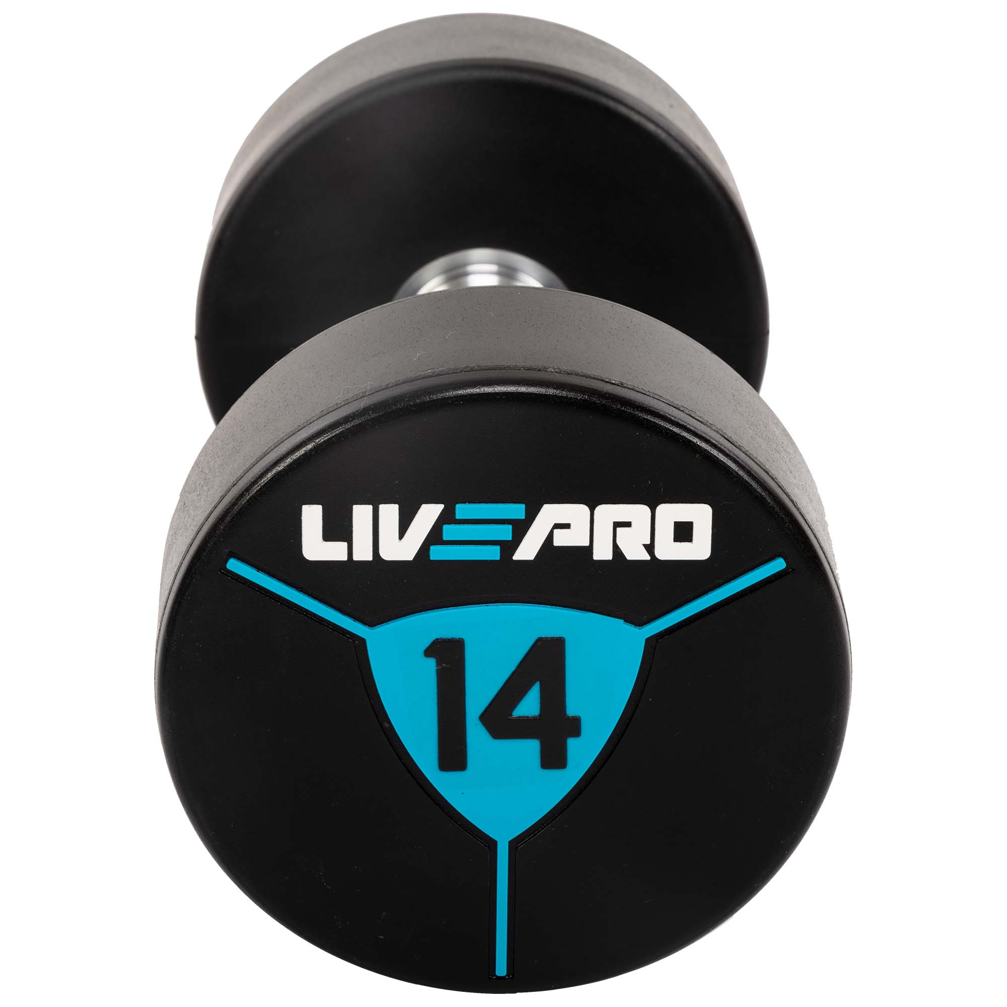 Гантелі цільні професійні з поліуретановим покриттям LiveUp LP8000-14 2шт по 14кг чорний-синій Код LP8000-14