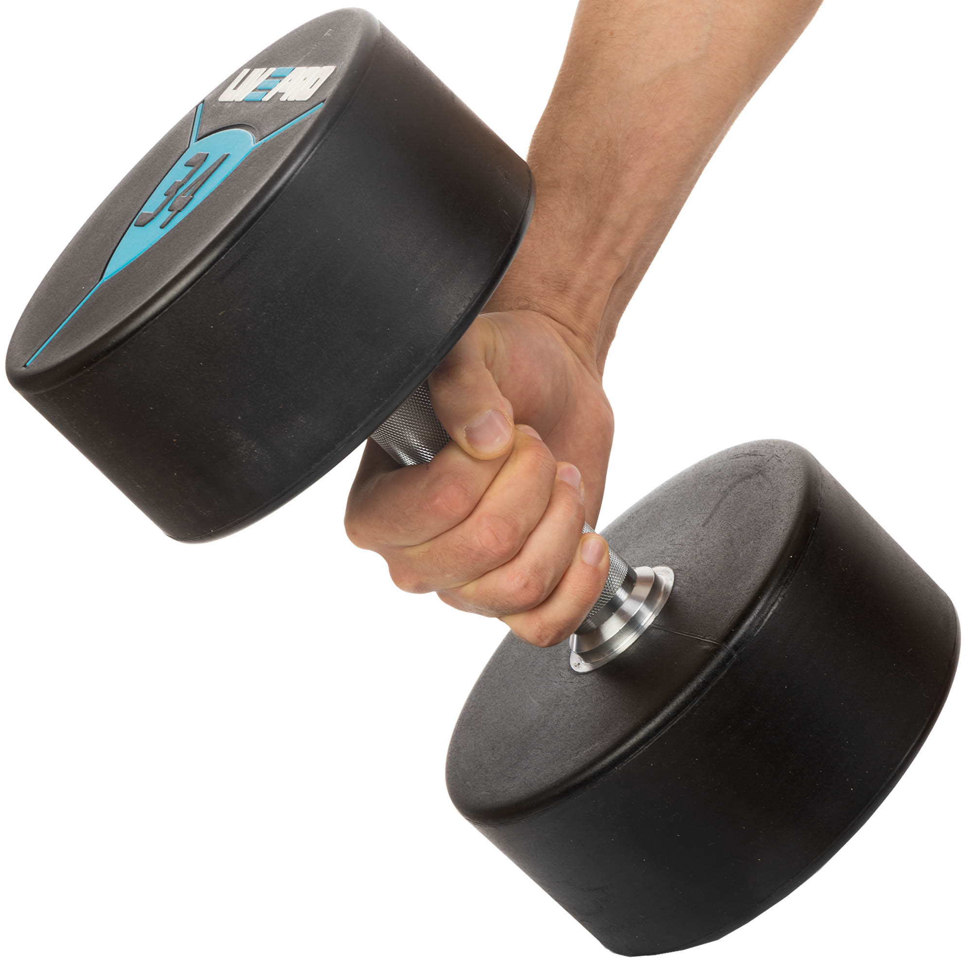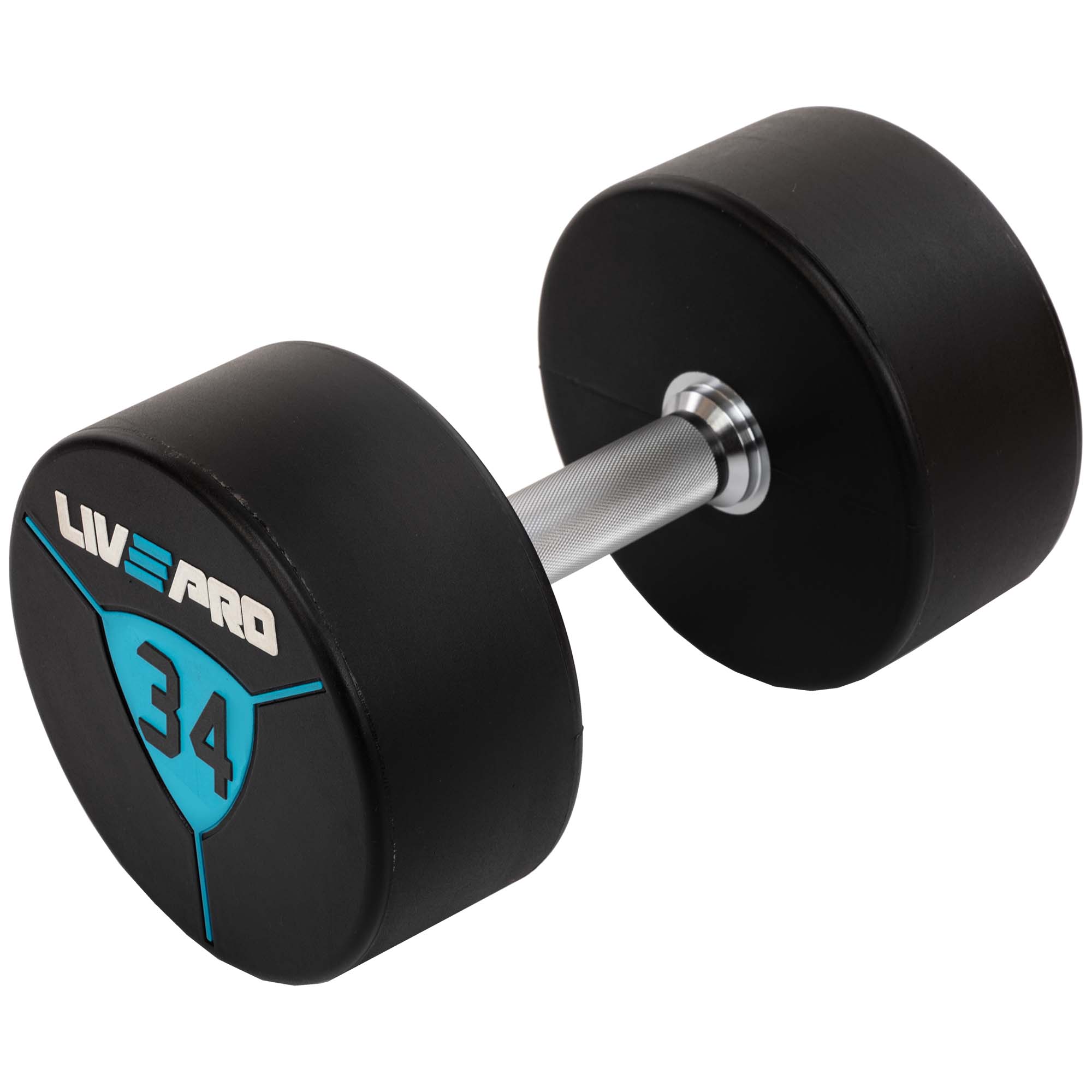 Гантелі цільні професійні з поліуретановим покриттям LiveUp LP8000-34 2шт по 34кг чорний-синій Код LP8000-34