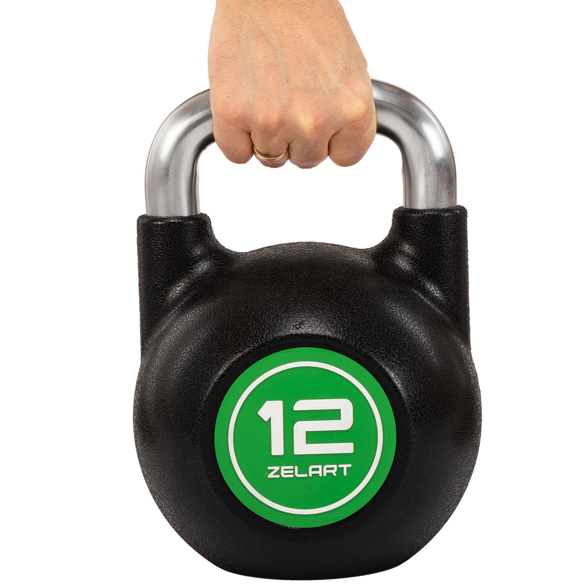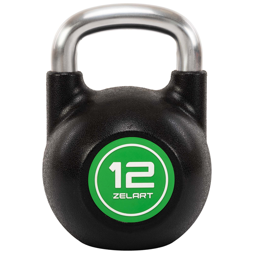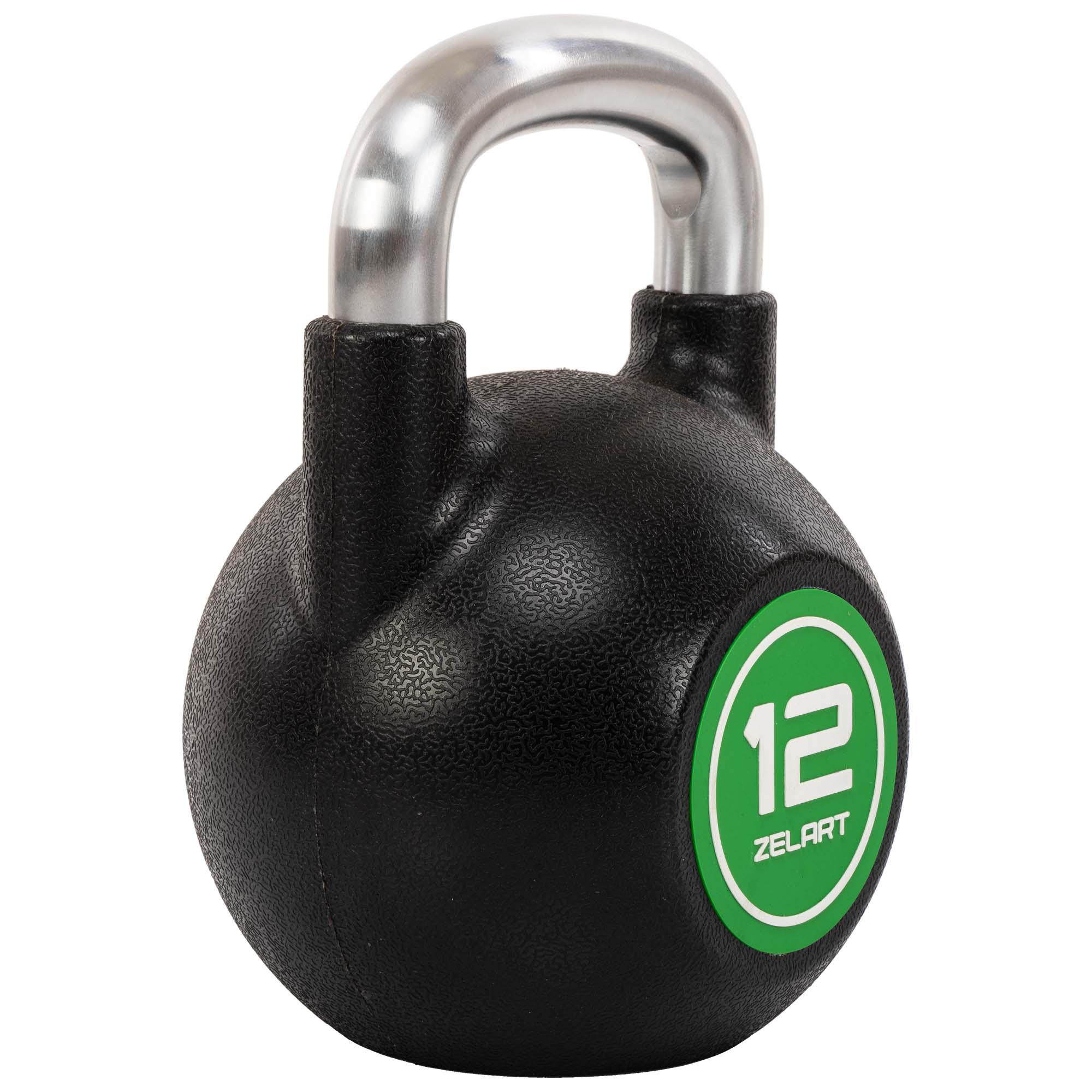 Гиря змагальна цільна чавунна з CPU покриттям та хромованою ручкою Zelart TA-4756-12 вага 12кг чорний Код TA-4756-12