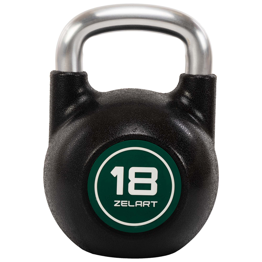 Гиря змагальна цільна чавунна з CPU покриттям та хромованою ручкою Zelart TA-4756-18 вага 18кг чорний Код TA-4756-18