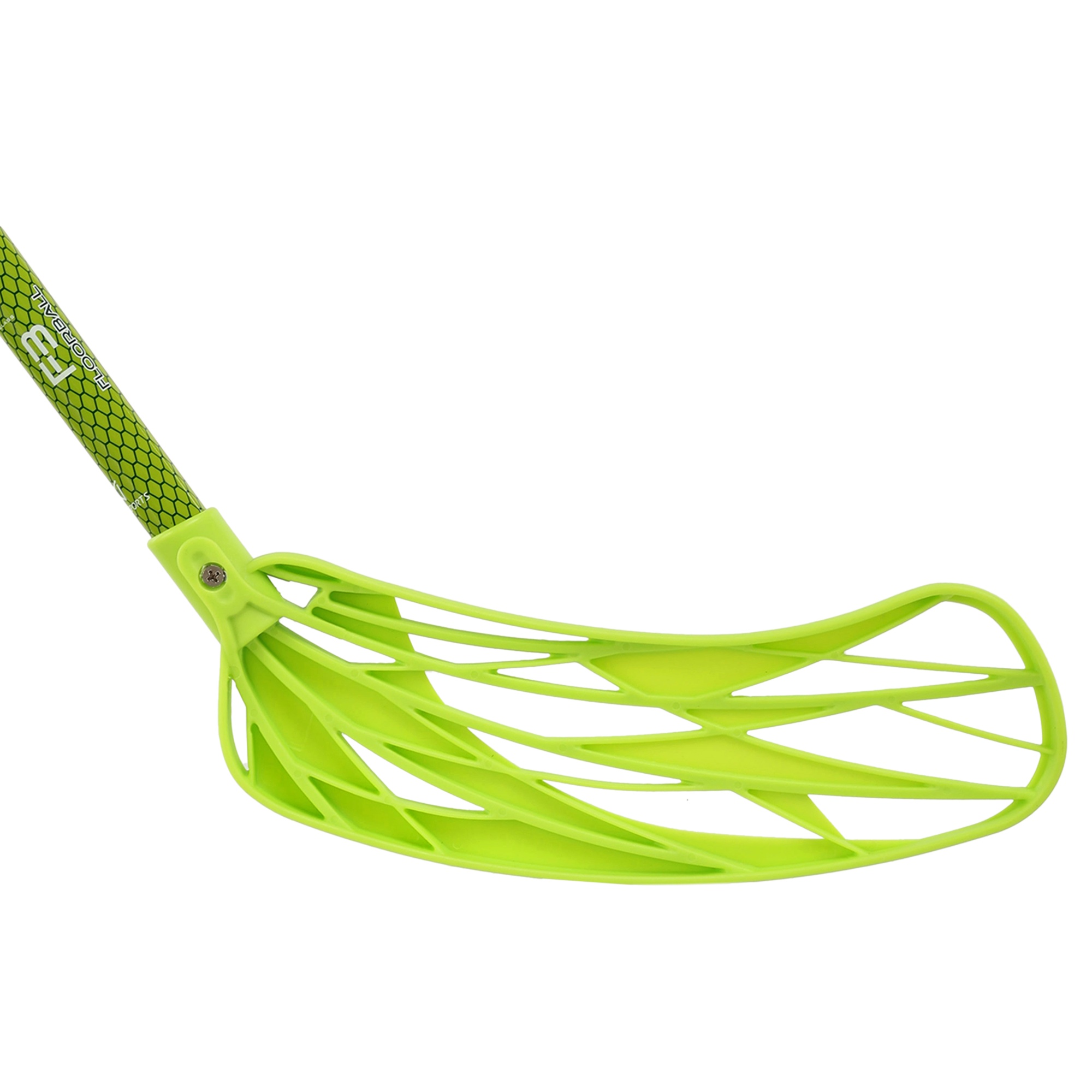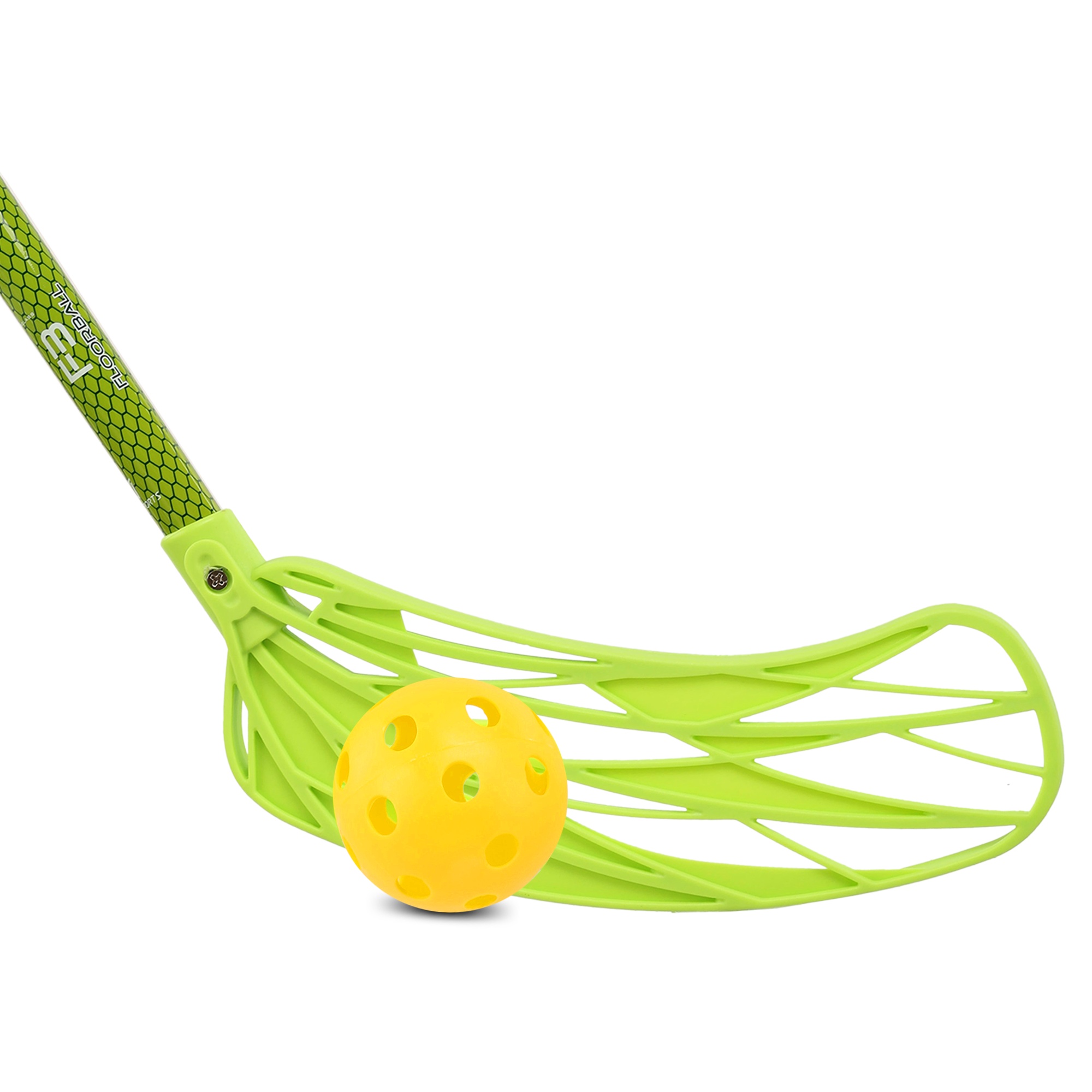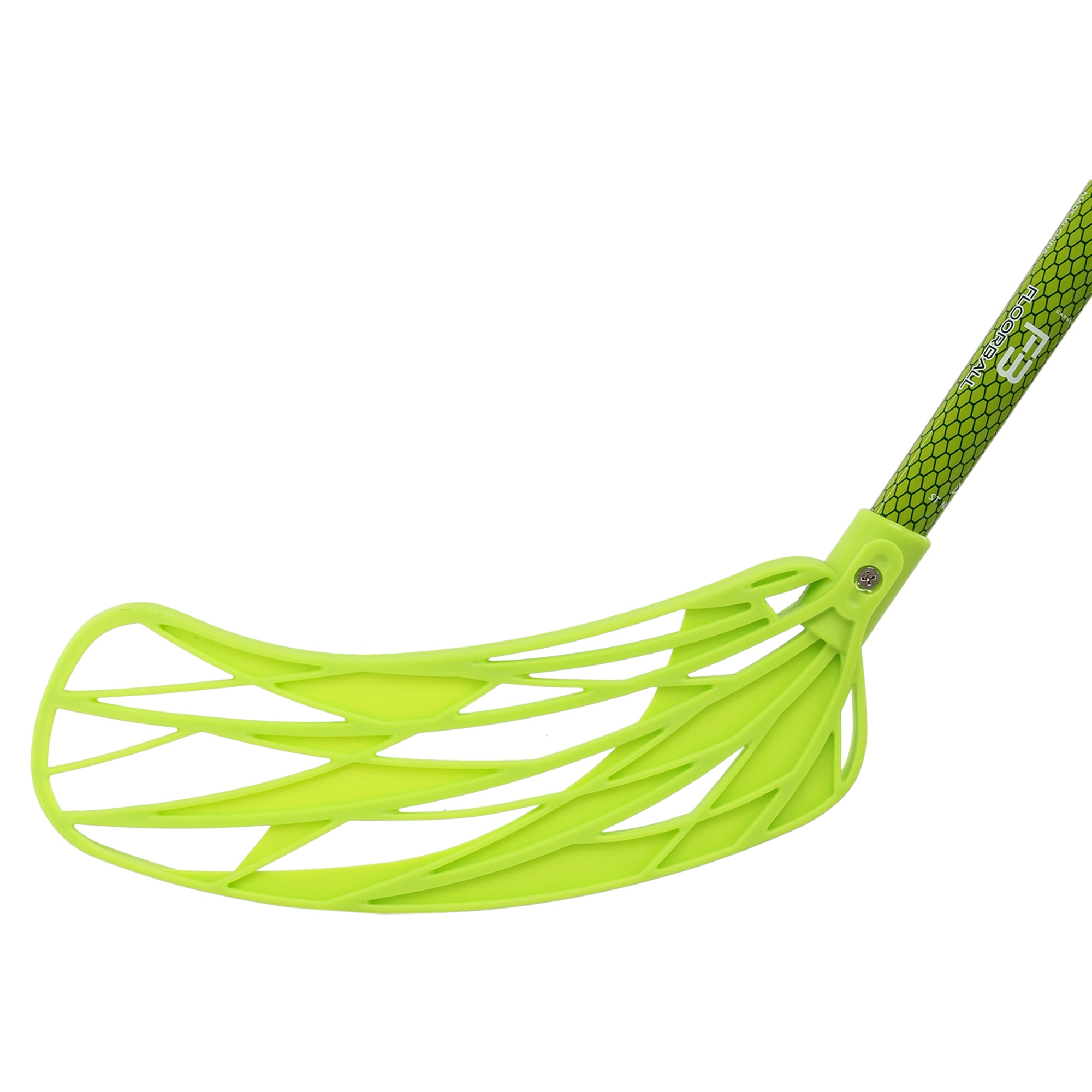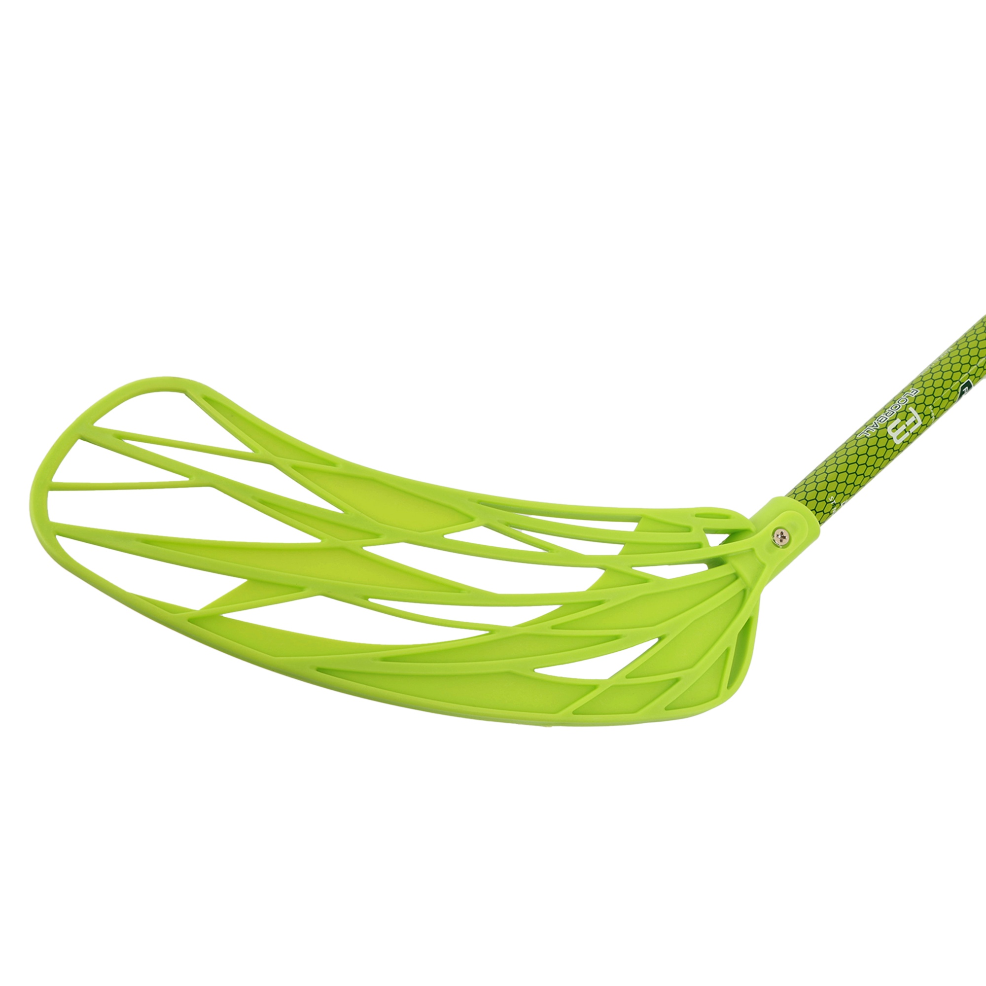 Професійна дитяча ключка для гри у флорбол відрізняється високою ергономічністю, забезпечує комфорт під час динамічних ігор, прийому м'яча та його передачі. Композитні матеріали, які застосовуються при виготовленні спортивного інвентарю, надають йому особливу міцність і роблять його довговічним. Ключка має вагу 250 г, що дозволяє легко керувати нею і при цьому завдавати потужні удари по воротах. Довжина ключки становить 112 см, при цьому довжина ручки дорівнює 92 см. Це дозволяє використовувати спортивний інвентар дітям середнього шкільного віку. Завдяки карбоновій основі конструкція ключки ефективно гасить вібрації при прийомі м'яча і дозволяє добре його контролювати. Інвентар має помірну жорсткість і призначений спеціально для дітей.