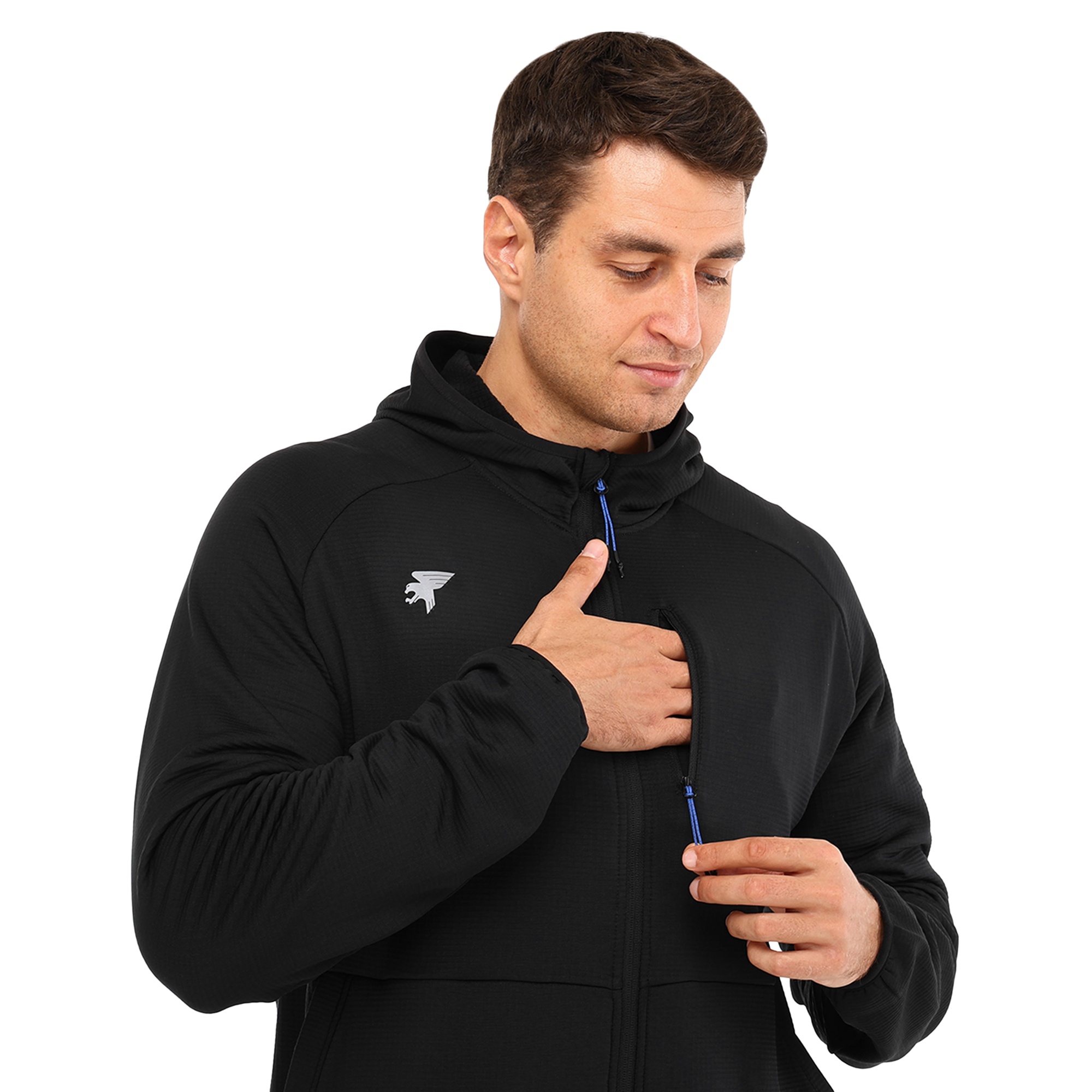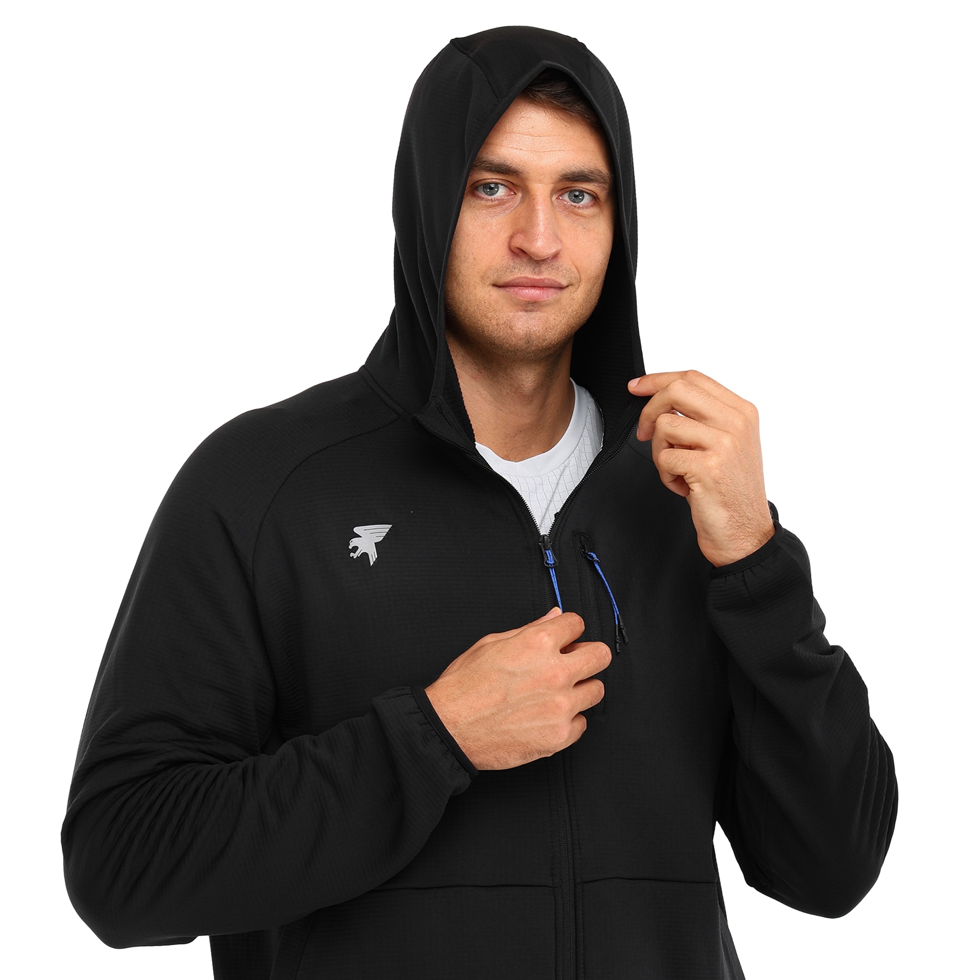 Чоловіча спортивна кофта з капюшоном Joma MYSTIC 103757-100 відмінно підійде для занять спортом на вулиці або для активного відпочинку. Кофта виготовлена з зручного, легкого, еластичного матеріалу, який добре пропускає повітря. Для її виготовлення використовується комбінація поліестеру та еластану. Кофта застібається на блискавку, на рукавах є еластичні манжети. Максимальну свободу руху забезпечують рукави реглан. На куртці є нагрудна кишеня та дві кишені спереду. Нагрудна кишеня застібається на блискавку. Світловідбиваючий логотип бренду розташований на грудях.