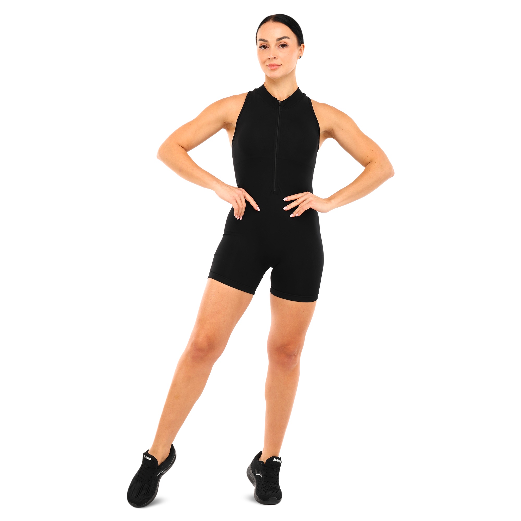 Спортивний комбінезон із шортами від бренду Domino - це чудовий вибір для занять фітнесом або йогою. Комбінезон виготовлений з легкої та дихаючої тканини, яка не перешкоджає відведенню вологи та ефективному охолодженню тіла під час тренування. Це дає змогу використовувати його з комфортом навіть у спекотну пору року. Шорти в комбінезоні мають невелику довжину і закривають стегно менше ніж до половини. Верх виконаний у вигляді майки, залишає плечі відкритими. Спина також частково відкрита. Комбінезон має ефект пуш-ап, який дає змогу підкреслити спортивну фігуру, зробити образ ще більш стильним і привабливим. Обтислий крій дає змогу виконувати рухи будь-якої інтенсивності та амплітуди.