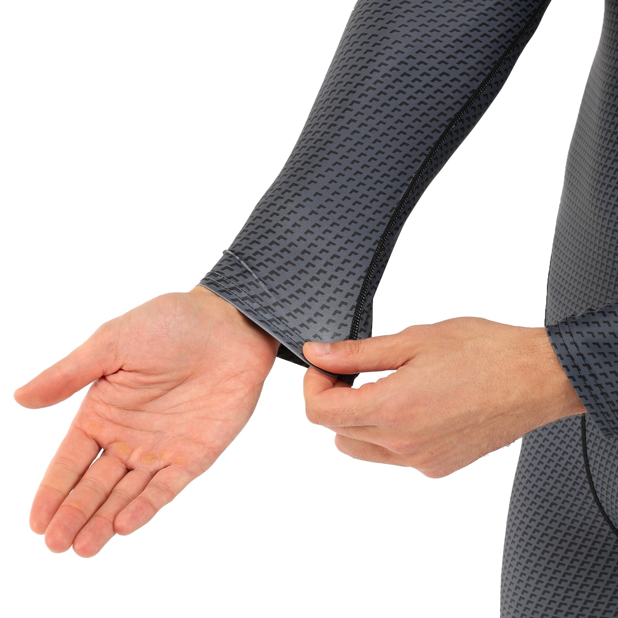 Рашгард має форму обтягуючої футболки з довгим суцільнокроєним рукавом і еластичним круглим вирізом. Продуманий анатомічний крій виключає наявність швів у зонах найбільшого тертя. Штани-тайтси мають широкий еластичний пояс для надійної та зручної посадки.