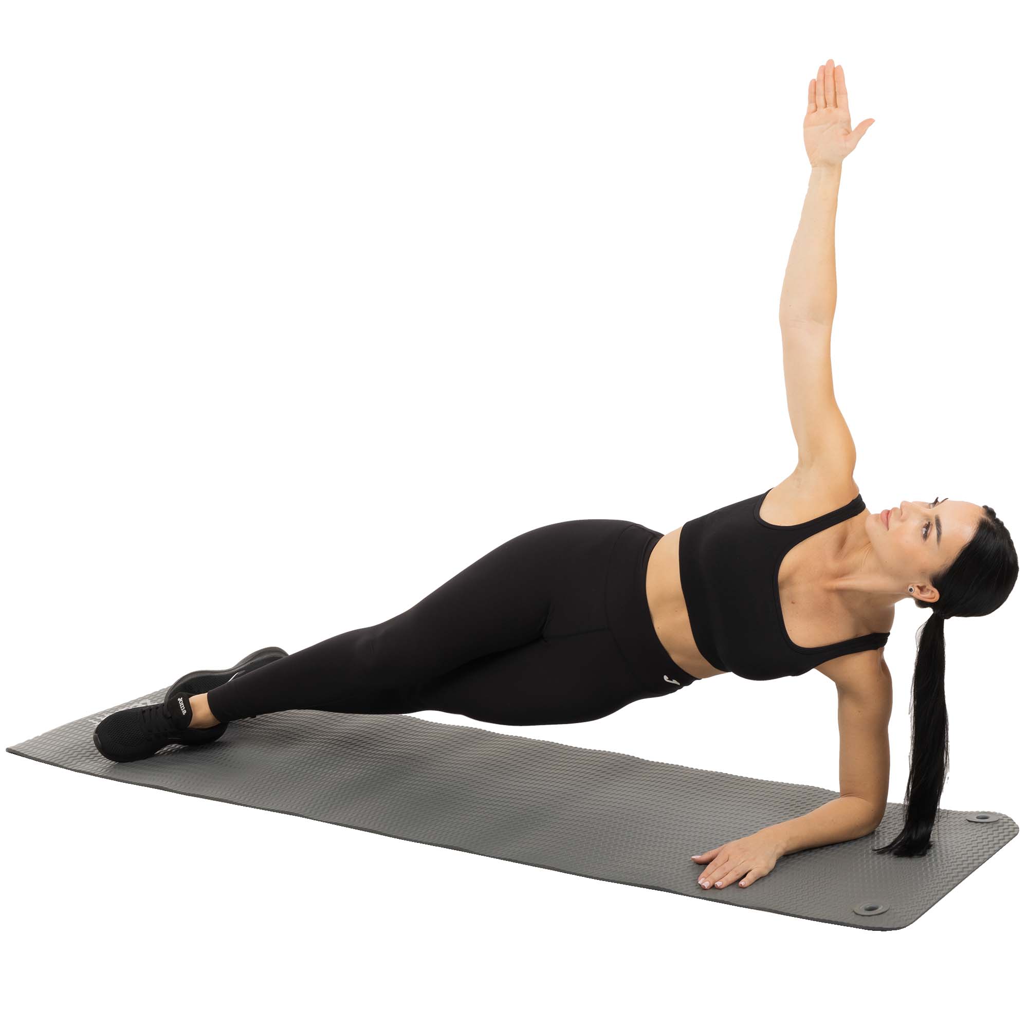 Килимок має товщину 4 мм, тому добре підходить як для занять фітнесом, так і для йоги. Для тренувань з йоги особливо важливо, щоб килимок мав оптимальну товщину: він має допомагати утримувати баланс і водночас захищати суглоби від дискомфорту під час виконання вправ в упорі лежачи.