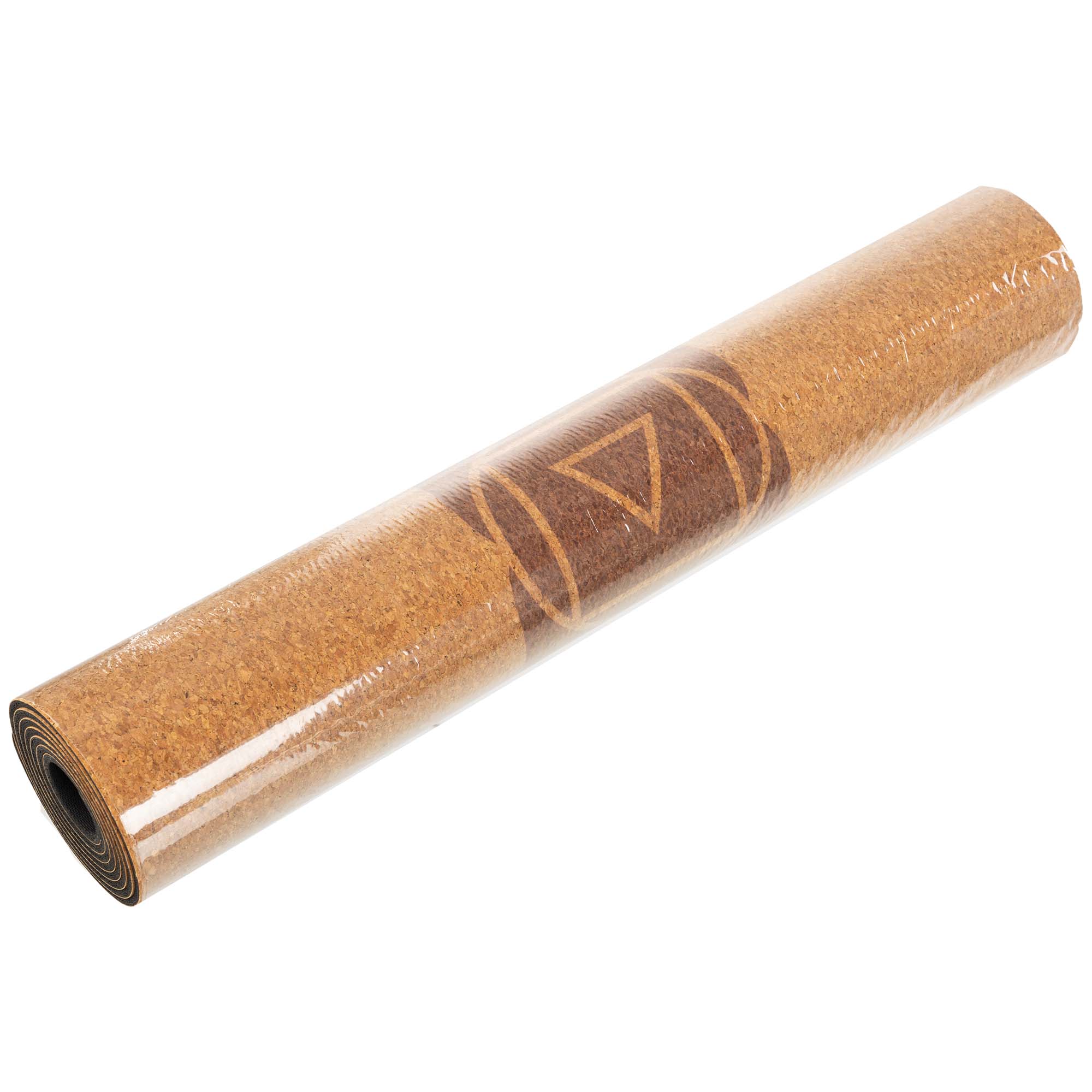 Килимок для йоги Пробковий каучуковий двошаровий Yoga mat Record FI-7156-2 183x61мx0.4cм з принтом Чакри коричневий Код FI-7156-2