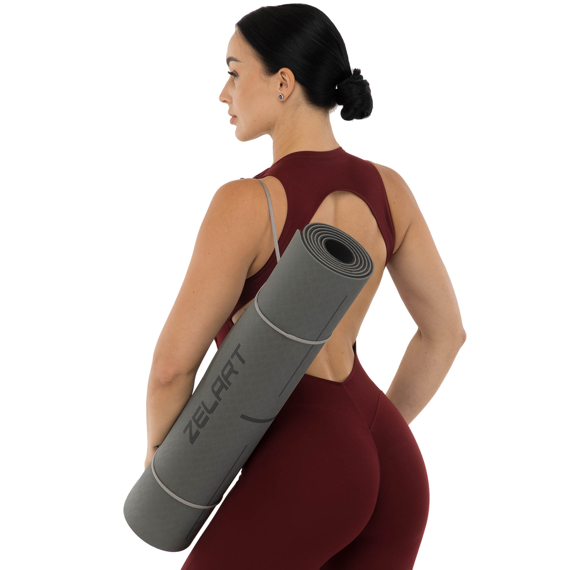 Килимок для йоги та фітнесу TPE двошаровий Zelart FI-2579 (MD9038) 183x61x0,6см сірий Код FI-2579