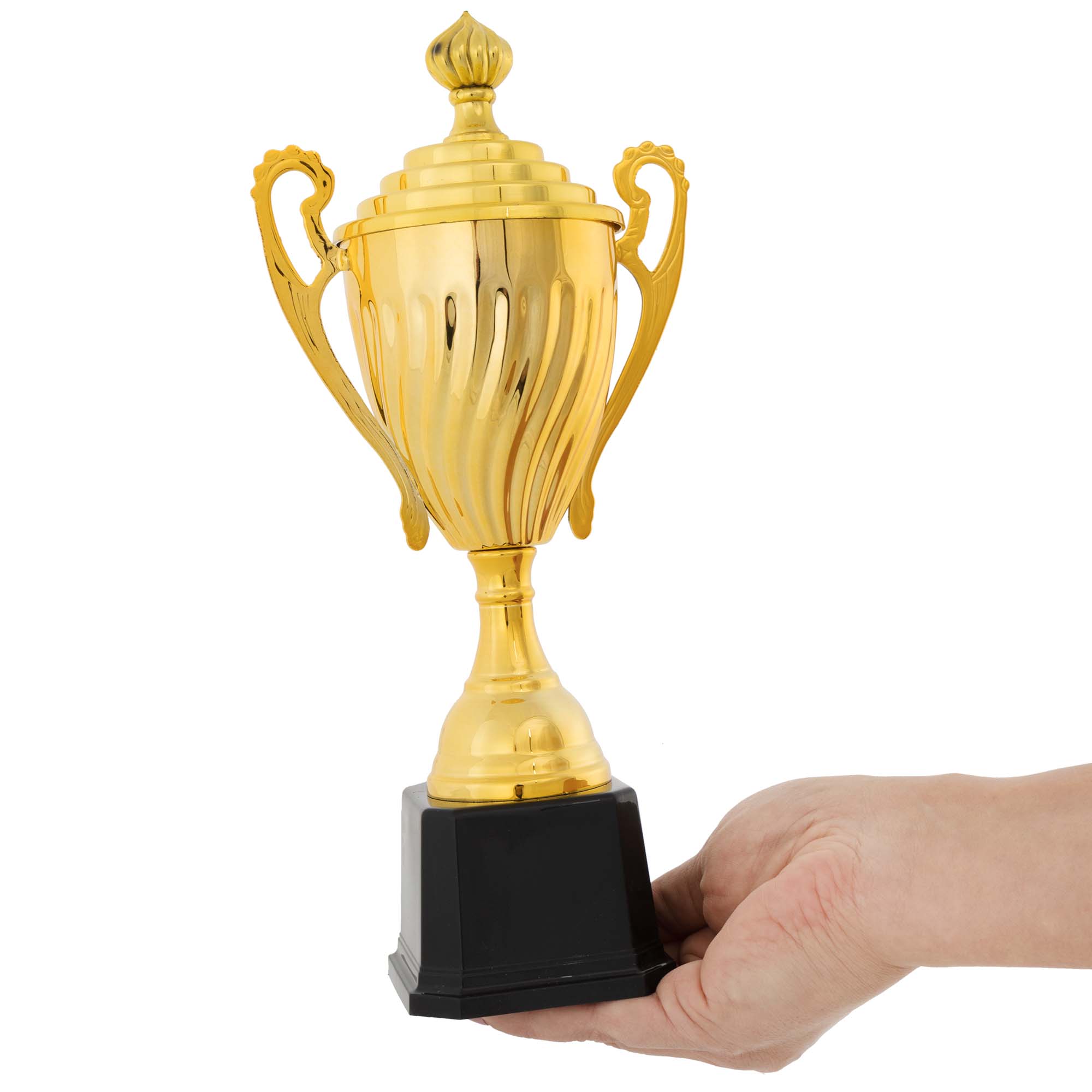 Кубок з ручками і кришкою можна використовувати для нагородження призерів змагань в командному та особистому заліку. Кубок є універсальним, підійде для різних видів спорту, може використовуватися для дорослих і дитячих змагань. Таку нагороду без зусиль можна персоналізувати і прив'язати до певного заходу - достатньо лише додати на неї табличку з гравіюванням.