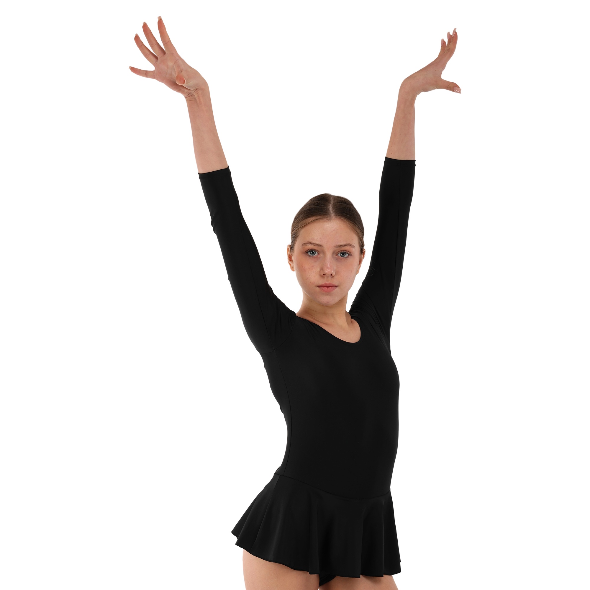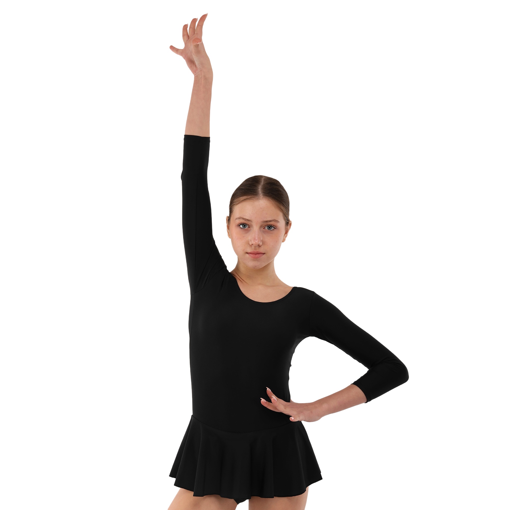 Купальник для танців і гімнастики з довгим рукавом і спідницею Lingo CO-7046 104-162см чорний
