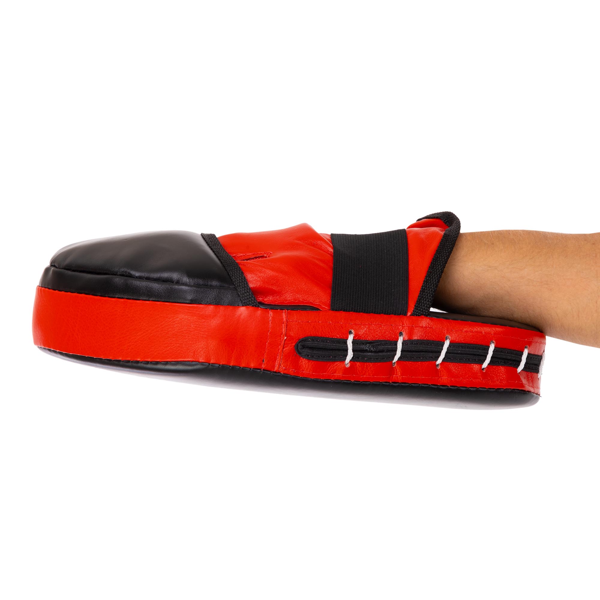 Регулювання розміру: Універсальний розмір рукавички забезпечує ідеальну посадку на долоні тренера завдяки глибокій внутрішній виїмці. А широка еластична стрічка фіксує лапу, запобігаючи її зміщенню навіть при найпотужніших атаках.