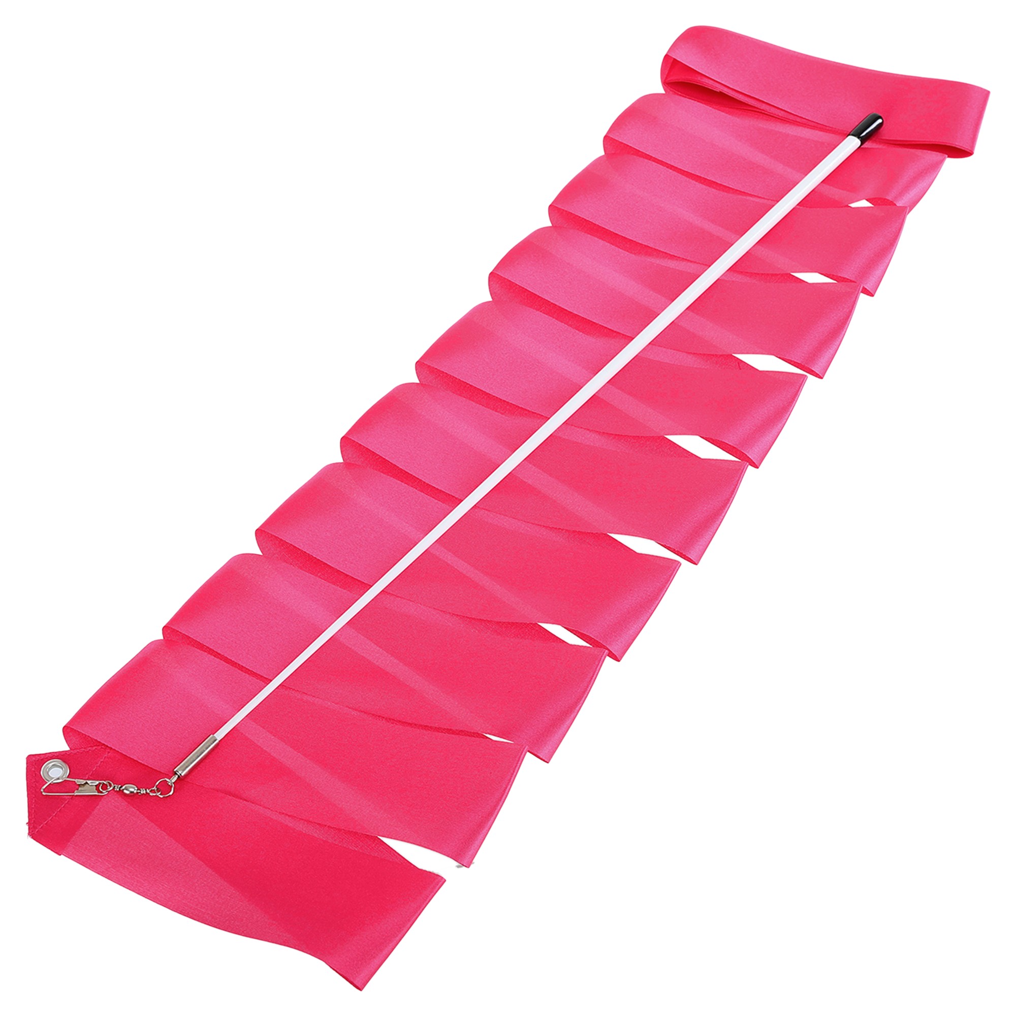 Стрічка для художньої гімнастики є поєднанням витонченості та функціональності. Завдяки довжині 6 метрів і ширині 5 сантиметрів, стрічка дозволяє створювати виразні і плавні рухи, підкреслюючи кожен виступ. Атласне полотно з поліестеру має легкість і блиск, що робить фігури, що створюються в повітрі, видовищними та незабутніми.Паличка довжиною 60 сантиметрів виконана з міцного склопластику, забезпечуючи комфортний хват і високу маневреність. Для зручності кріплення використовується металевий карабін, що знімається, який обертається на 360°, виключаючи заплутування стрічки і дозволяючи гімнастці зосередитися на виконанні.