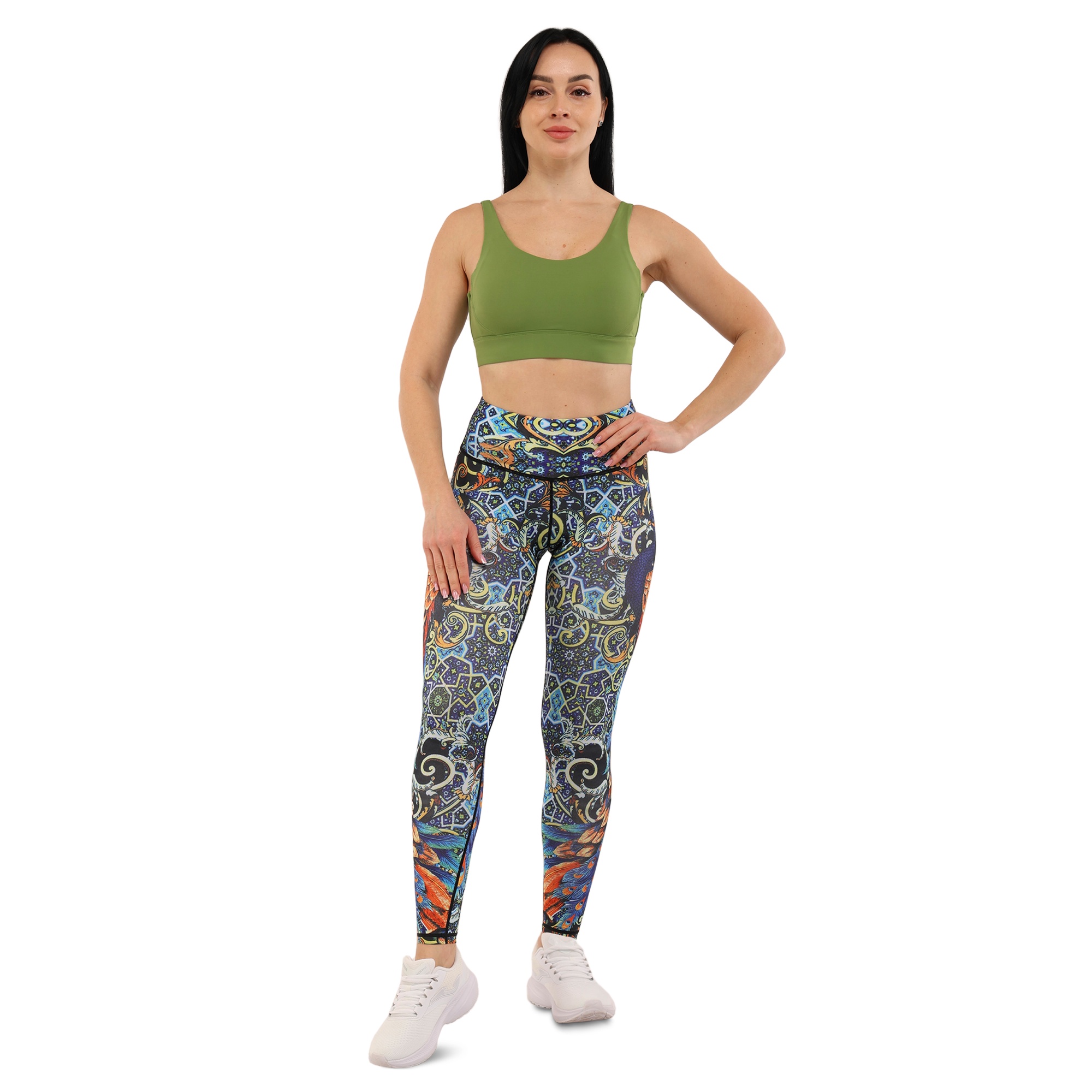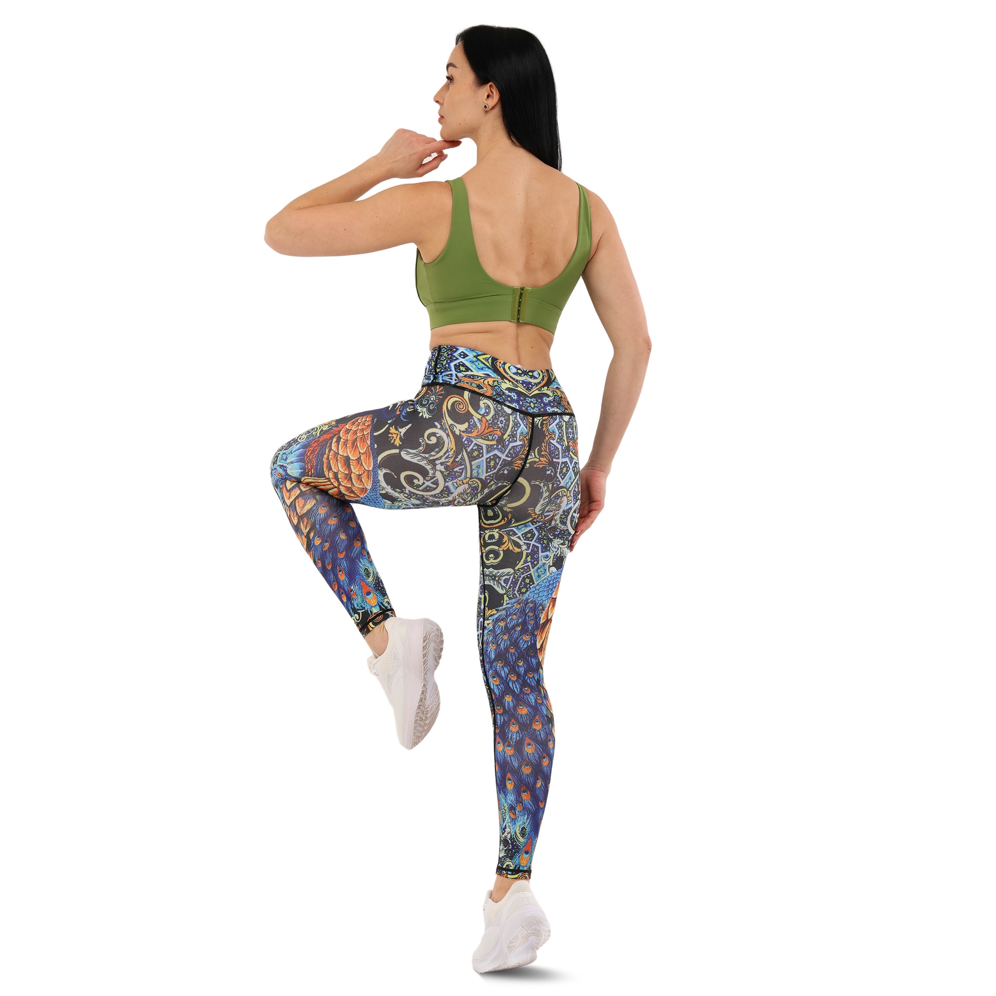 Лосини легінси жіночі з принтом Lingo Павич BK02 S-L темно-синій-помаранчевий Код BK02