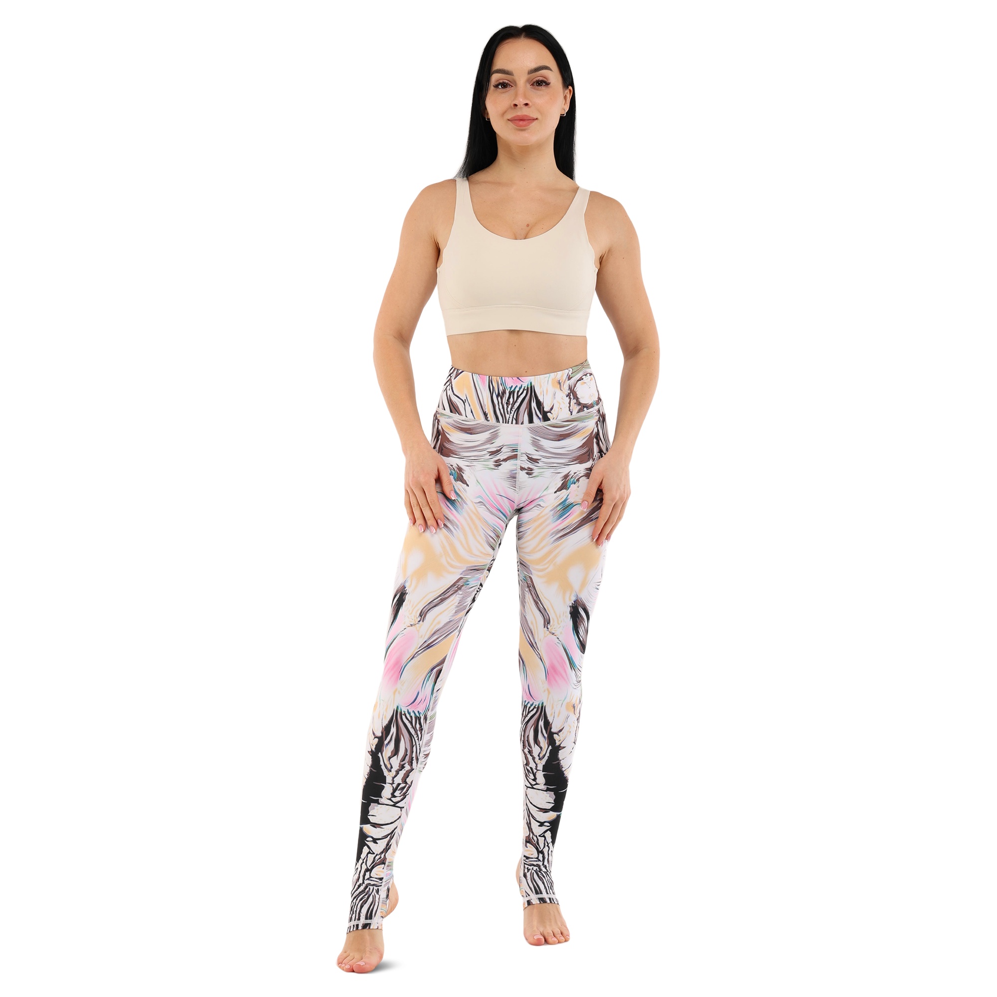 Спортивні лосини з абстрактним принтом від бренду Domino дозволяють виглядати стильно і ефектно, і продуктивно займатися спортом з максимальним комфортом. Лосини виготовлені з лайкри і нейлону, що забезпечує відмінну еластичність тканини. Вони мають величезний запас міцності, стійкі до стирання і не просвічуються. Всі шви в лосинах плоскі, тому не натирають, не залишають слідів і подразнення на шкірі. Широка еластична гумка на поясі сприяє хорошій фіксації екіпіровки на тілі, а також дозволяє візуально підтягнути талію. У лосинах передбачені лямки, які допомагають зафіксувати їх на стопах. В результаті екіпірування не задирається при виконанні найактивніших вправ.