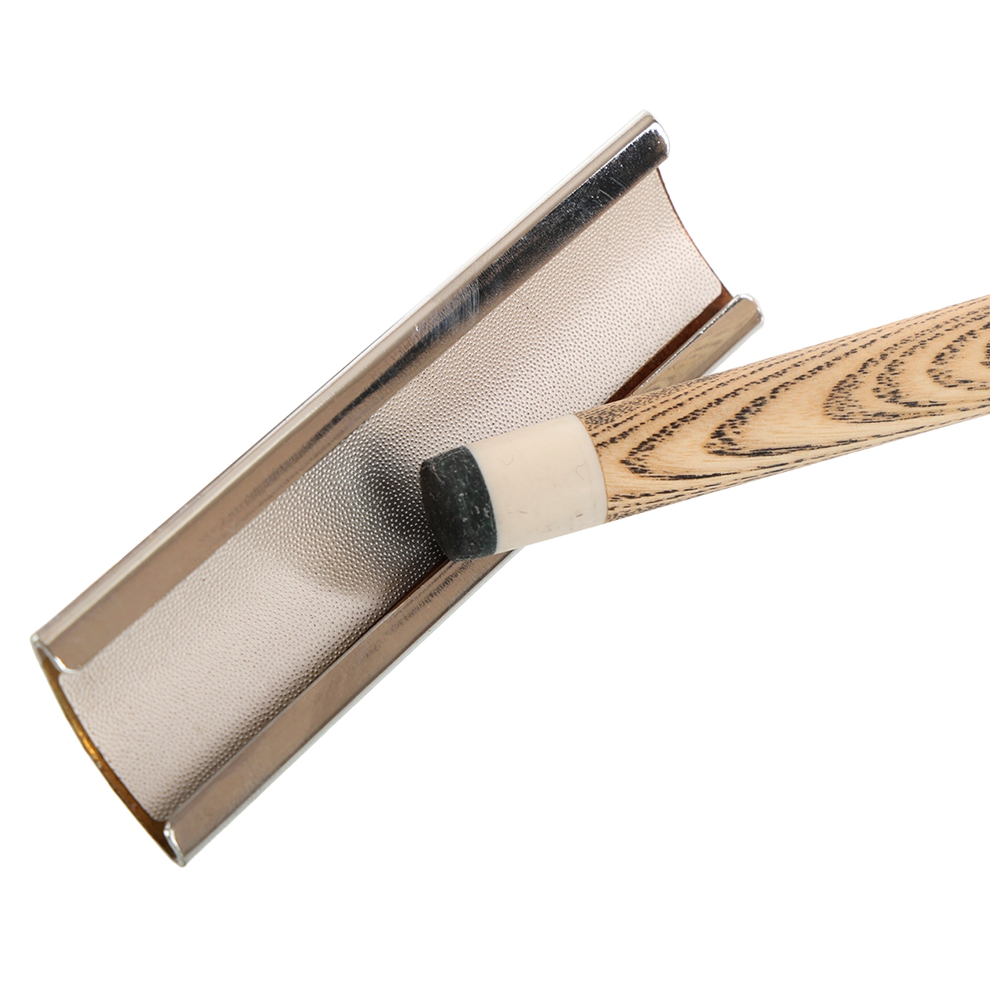 Металева точилка для більярдного кия - важкий якісний інструмент, який дозволить довести до ладу кий між партіями або після тривалого простою. Завдяки підвищеній абразивності і жорсткості такий виріб дозволяє розчісувати поверхню наклейки кия. Інструмент виготовлений з металу і тому дозволяє якісно обробити поверхню наклейки, не деформуючись в процесі використання. Натискання на поверхню наклейки буде рівномірним, і зняття шару також буде рівномірним. Махровка має розмір 10x3 см.