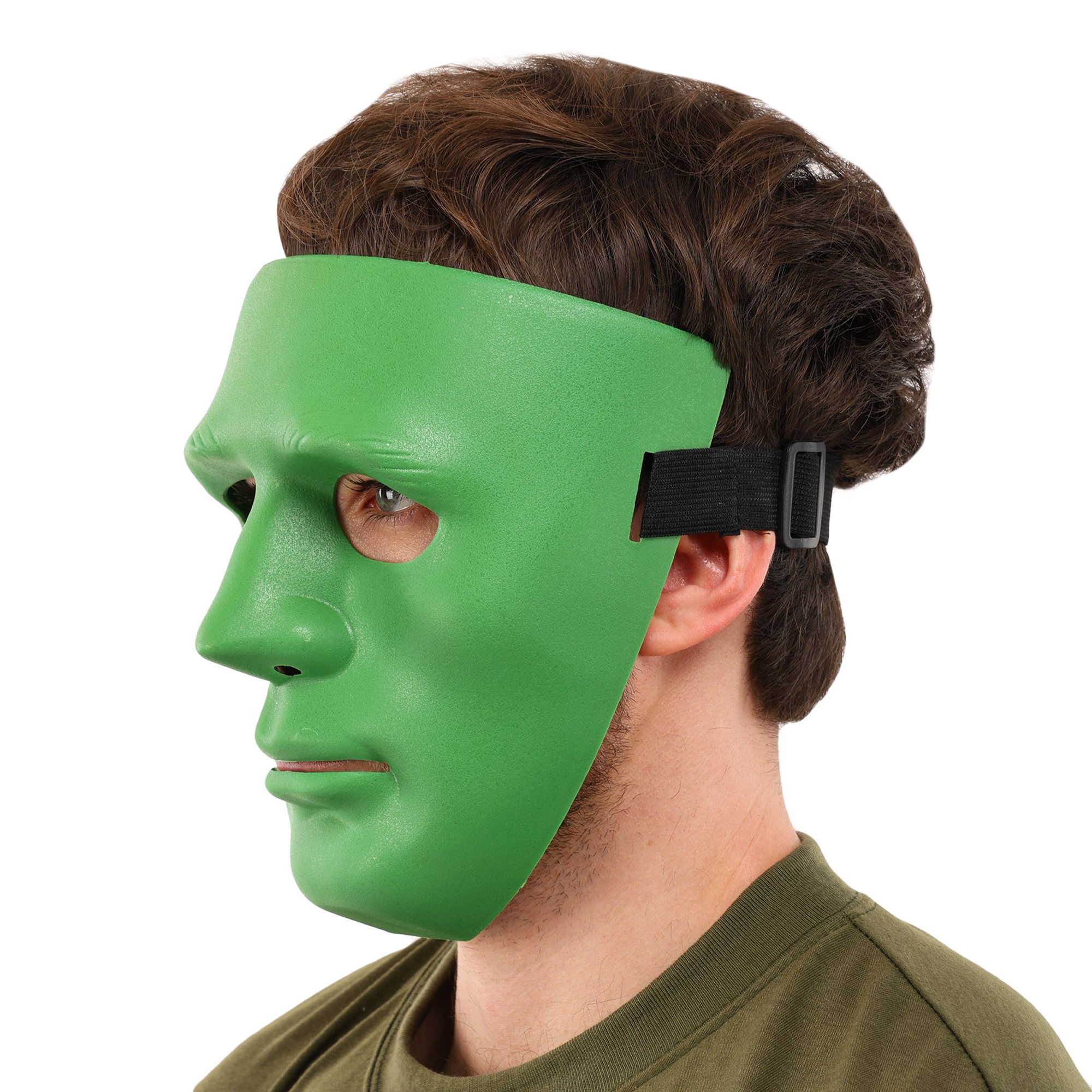 Маска виконана таким чином, щоб її форма анатомічно відповідала середньому людському обличчю – ніс, вилиці, підборіддя. Тому вона легко підійде практично будь-якому користувачеві. Для виготовлення маски використовується високоякісний пластик, що відрізняється легкістю та стійкістю до ударів. Прорізи для очей забезпечують гравцеві хороший огляд, а щілина навпроти рота – ndash; достатній приплив повітря. Фіксується маска за допомогою еластичного ременя, оснащеного механізмом регулювання, що дозволяє відрегулювати його відповідно до розміру голови гравця.Переваги: