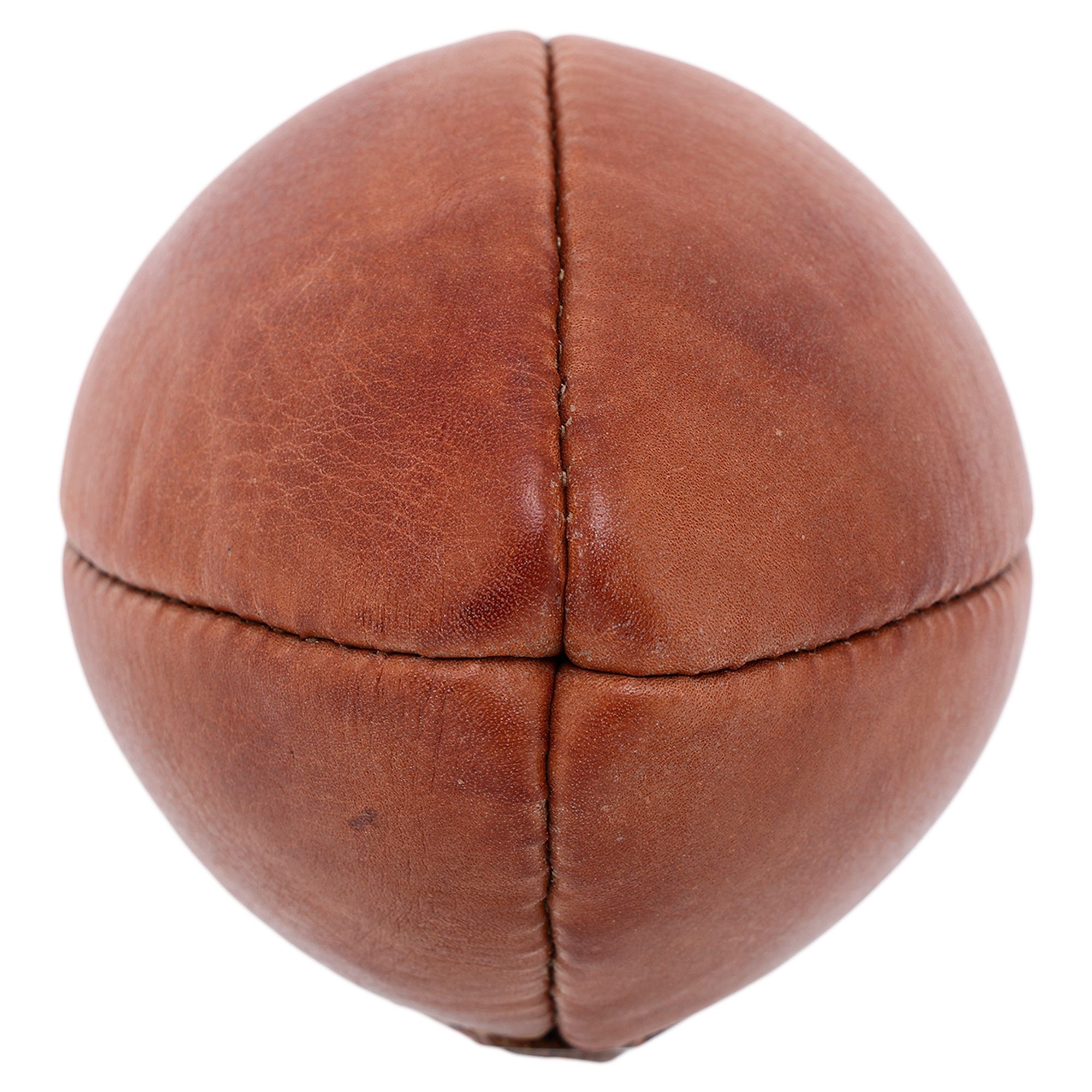 Вінтажний м'яч для регбі - це якісний шкіряний виріб, який має дизайн, як спортивні снаряди, що використовувалися для матчів в минулому столітті. М'яч має довгасту форму, що є традиційним для спортивних снарядів, які використовуються в регбі. Шви виконані вручну, вони з'єднують між собою 4 окремі панелі, виготовлені з натуральної високоякісної шкіри. Вона м'яка і дуже ретельно оброблена, що дозволяє зробити її міцною і чіпкою. Під покришкою є камера, клапан якої виходить через спеціальний шов. Даний шов затягується шкіряним шнурком. М'яч виконаний в коричневому кольорі.