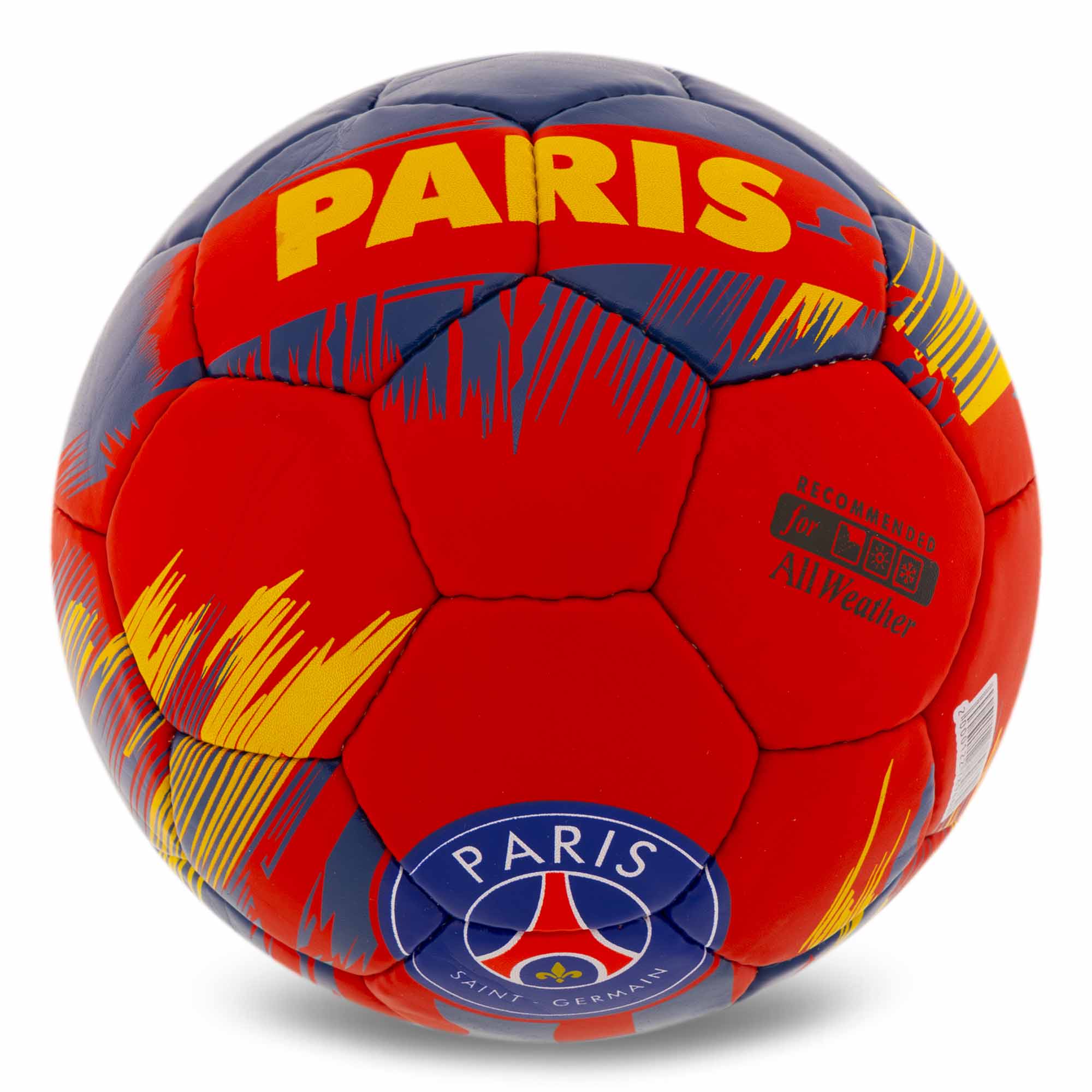 Футбольний м'яч 5 розміру має вагу до 450 г і довжину окружності 68,5-69,5 см. Цей спортивний снаряд відповідає вимогам правил гри, може бути використаний для проведення матчів і тренувань. Футбольний м'яч 5 розміру виготовляється з поліуретану, який стійкий до впливу вологи і не вбирає її. Ручне зшивання панелей також робить м'яч міцним і невразливим до впливу вологи, він не обтяжується і не деформується в процесі експлуатації. Бутилова камера гарантує утримання повітря протягом тривалого часу, м'яч не потрібно буде часто підкачувати. Класичний 32-панельний дизайн м'яча вдало поєднується з його яскравим забарвленням.