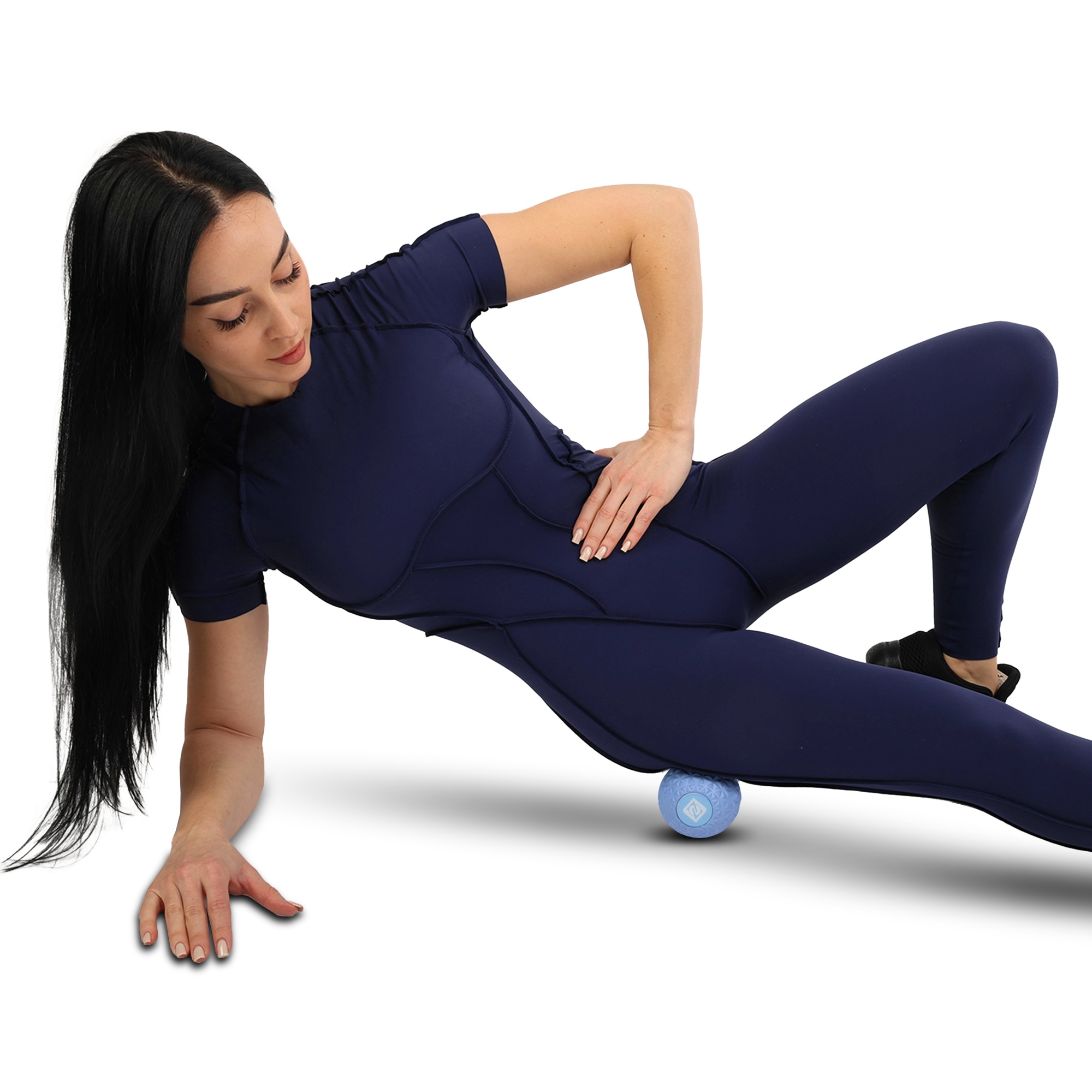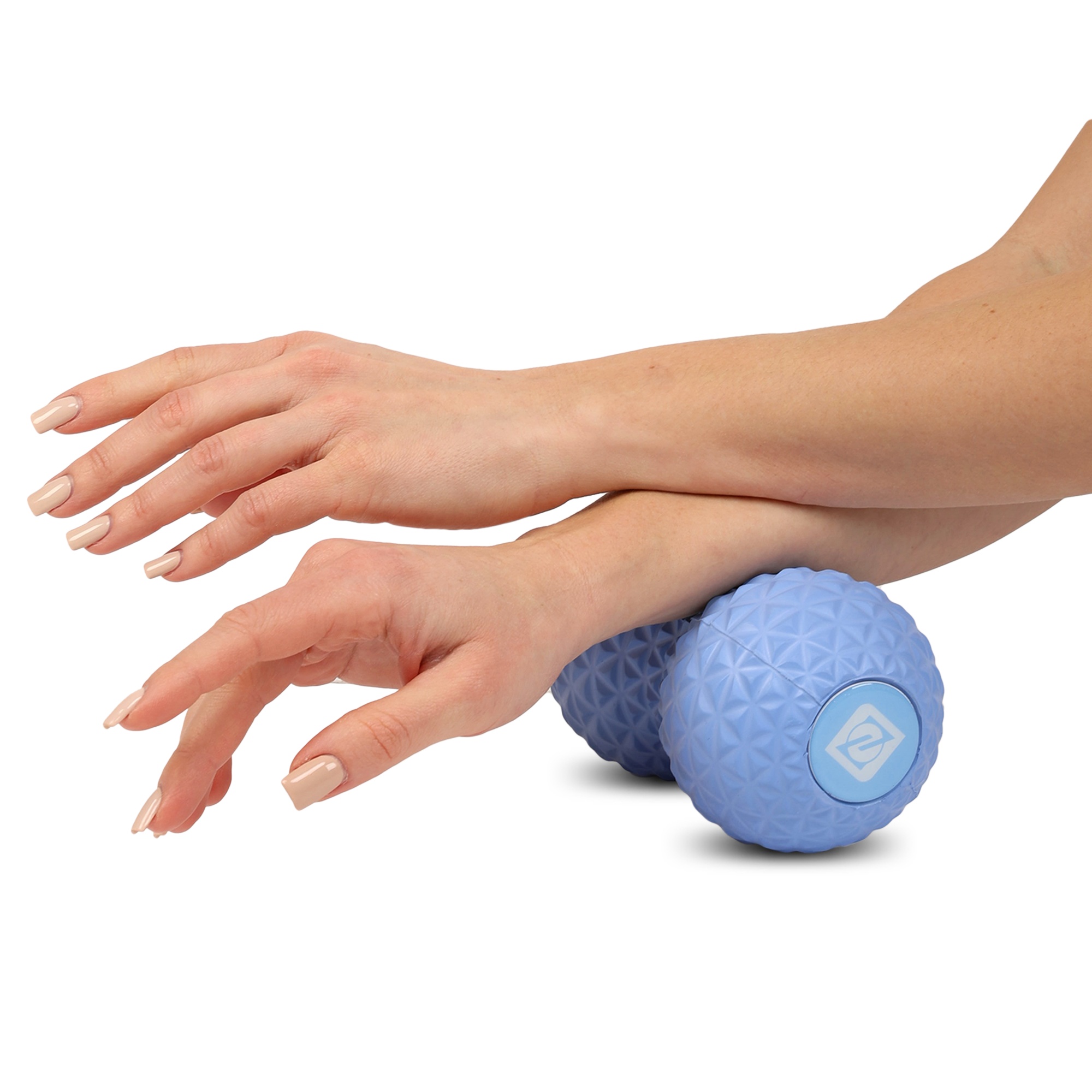 Подвійний масажний м'яч призначений для міофасціального релізу і самомасажу. Міофасціальний реліз особливо добре підходить для людей, які займаються спортом або ведуть малорухливий спосіб життя. Використання компактного масажера дозволяє усунути тригерні точки і скутість у м'язах. Причому завдяки універсальній формі і розміру такий масажер можна використовувати для опрацювання глибоких м'язів спини, шиї і ніг. Такий м'яч можна безпечно використовувати для масажу спини, не впливаючи безпосередньо на хребет.