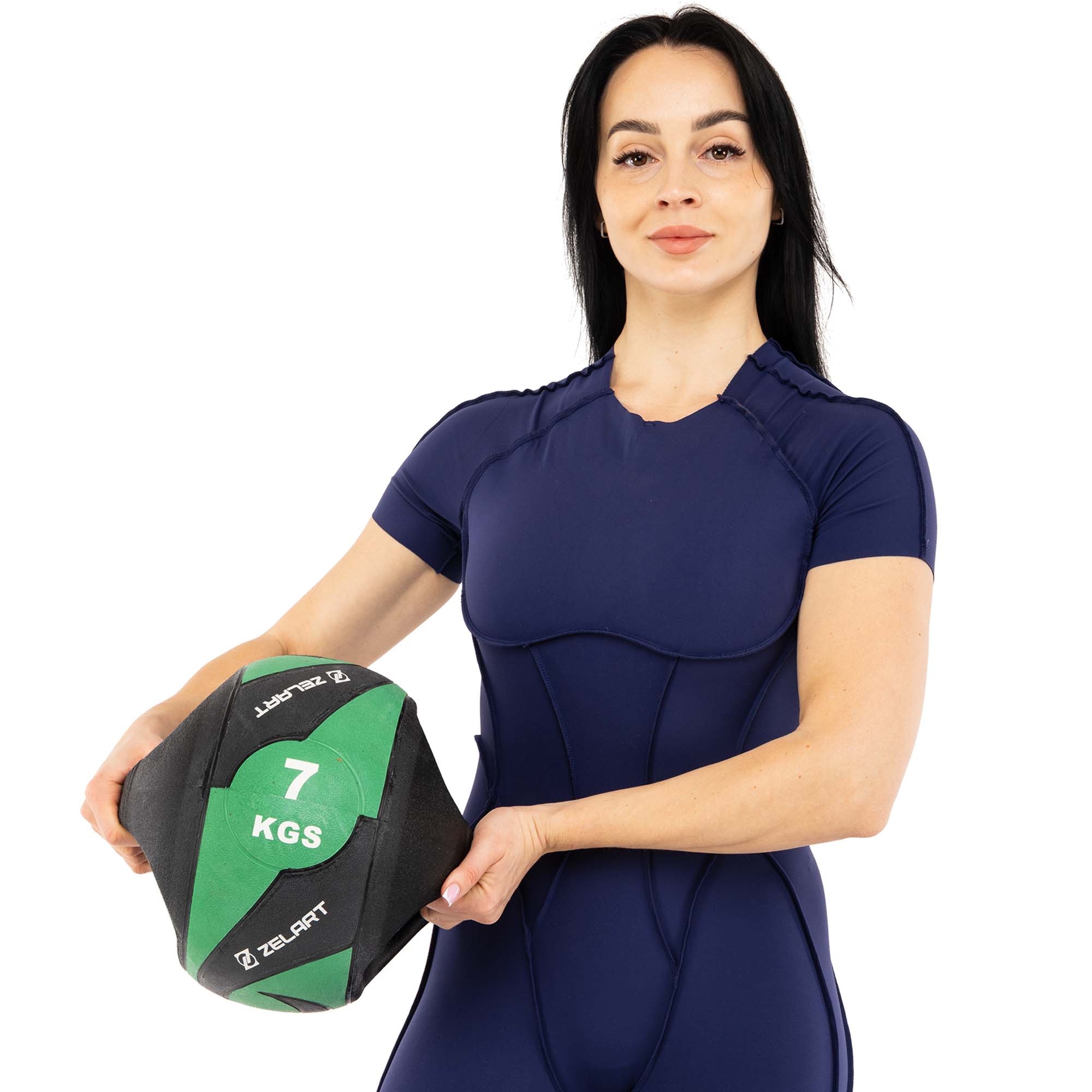 Медбол м'яч медичний дворучний з хватами Record FI-5111-7 7кг чорний-зелений