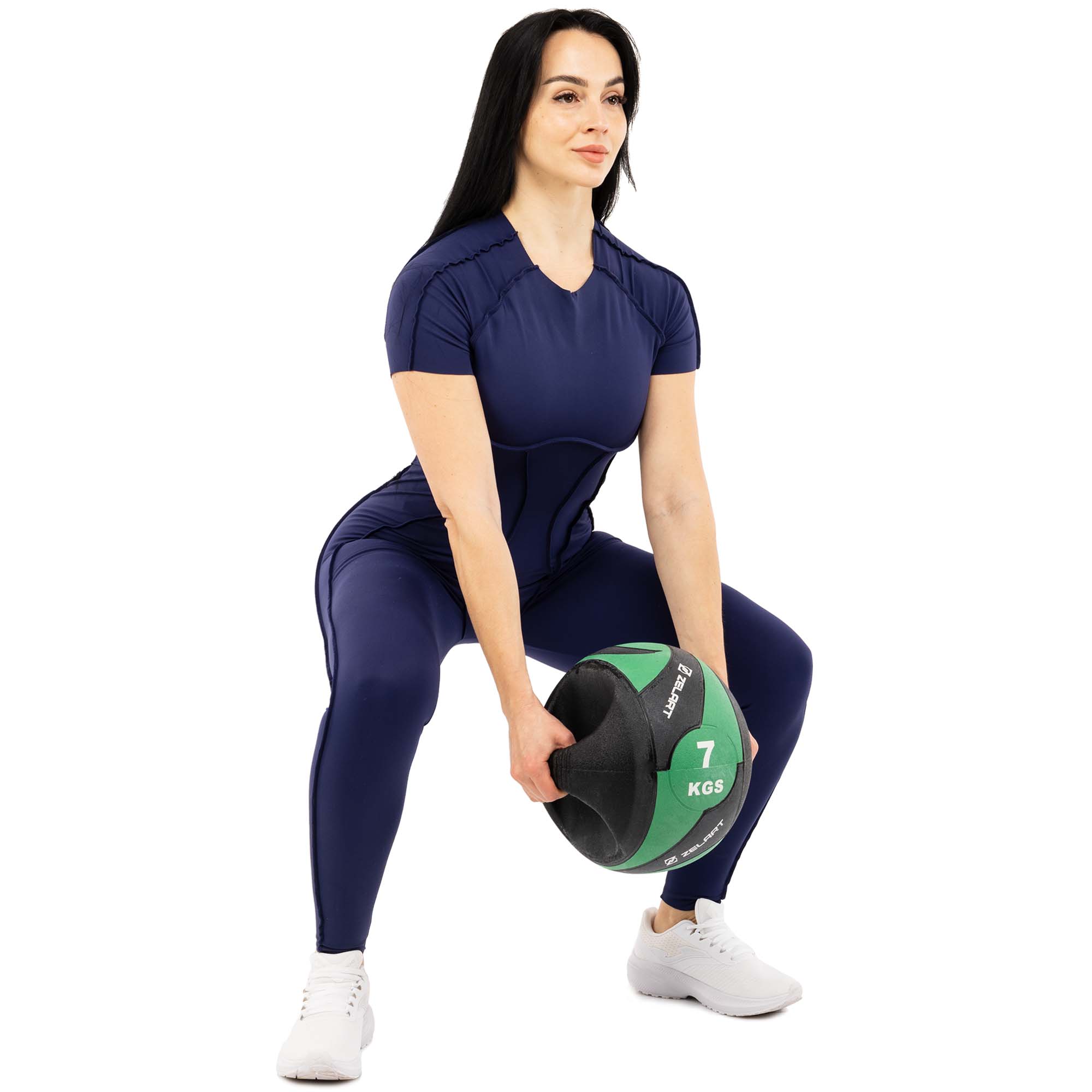 Медбол м'яч медичний дворучний з хватами Record FI-5111-7 7кг чорний-зелений Код FI-5111-7