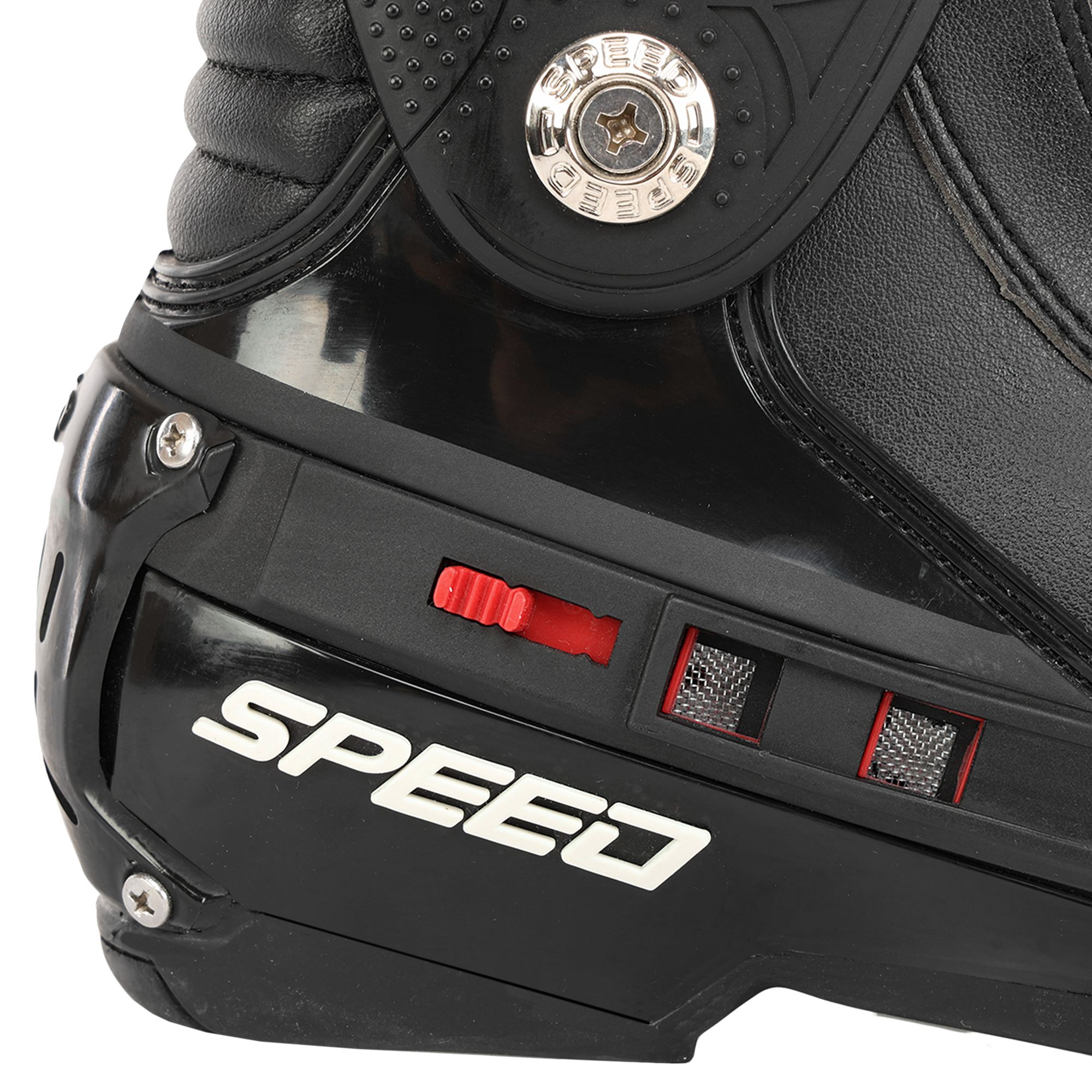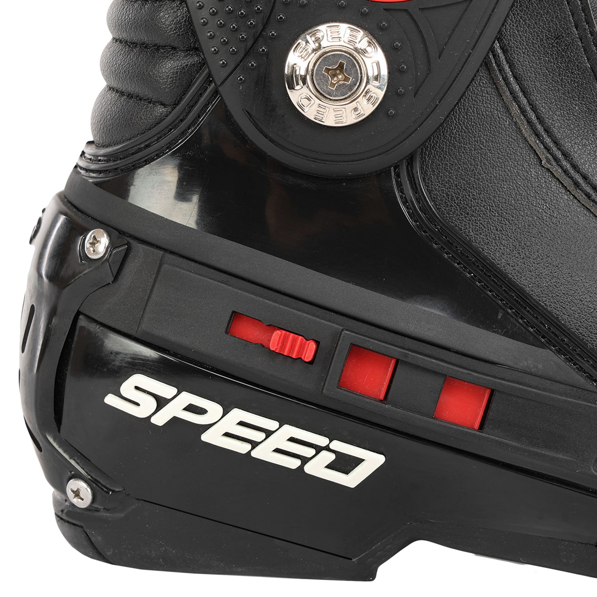 Якщо ви віддаєте перевагу швидкісній їзді на байку, то вам варто використовувати якісне екіпірування для захисту ніг. Короткі спортивні мотоботи SPEED A008 - оптимальне поєднання комфорту і надійного захисту. У даній моделі екіпірування присутні посилені захисні накладки на гомілці, п'яті, носку і склепінні стопи. Зручна система фіксації на ногах також забезпечує додатковий комфорт. Взуття фіксується на ногах за допомогою липучки і блискавки. Всередині воно оброблене сітчастим матеріалом, який ефективно відводить вологу від ніг і забезпечує комфорт під час катання навіть у спекотну пору року. Підошва плоска і жорстка, забезпечує відмінне зчеплення з елементами управління мотоциклом і надійний захист від ударів. Вона стійка до впливу масла і бензину, не ковзає на різних поверхнях. Верх виконаний з поліуретану.