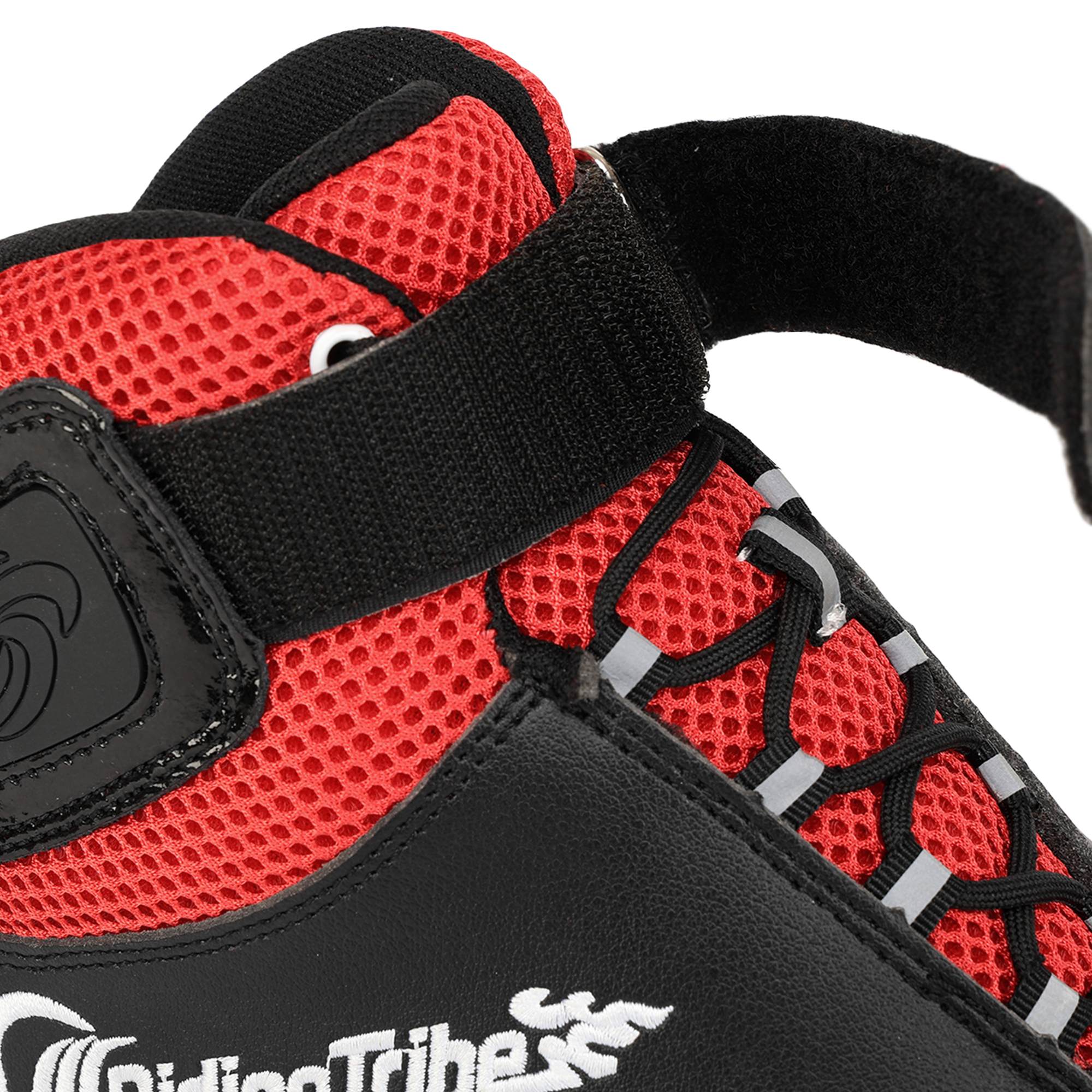 Короткі спортивні мотоботи SPEED BIKERS A016 - це відмінний вибір для швидкісної їзди по треку або шосе в теплу пору року. Відмінною особливістю даної моделі взуття є посилена вентиляція, яка забезпечує підтримку комфортної температури всередині взуття протягом всієї поїздки. Для цього виробник використовував вставки з легкої дихаючої сітки в області шнурівки і вище. Фіксація на ногах відбувається за допомогою шнурівки і липучок. На шнурівці є світловідбиваючі елементи, які підвищують видимість мотоцикліста в темний час доби. Також такі елементи є на п'яті. Взуття посилене в місці контакту з важелем перемикання передач. Додаткова накладка з натуральної шкіри в цьому місці забезпечує стійкість до зносу і продовжує термін служби взуття. Підошва виготовлена з неслизької гуми і стійка до впливу масла і бензину.