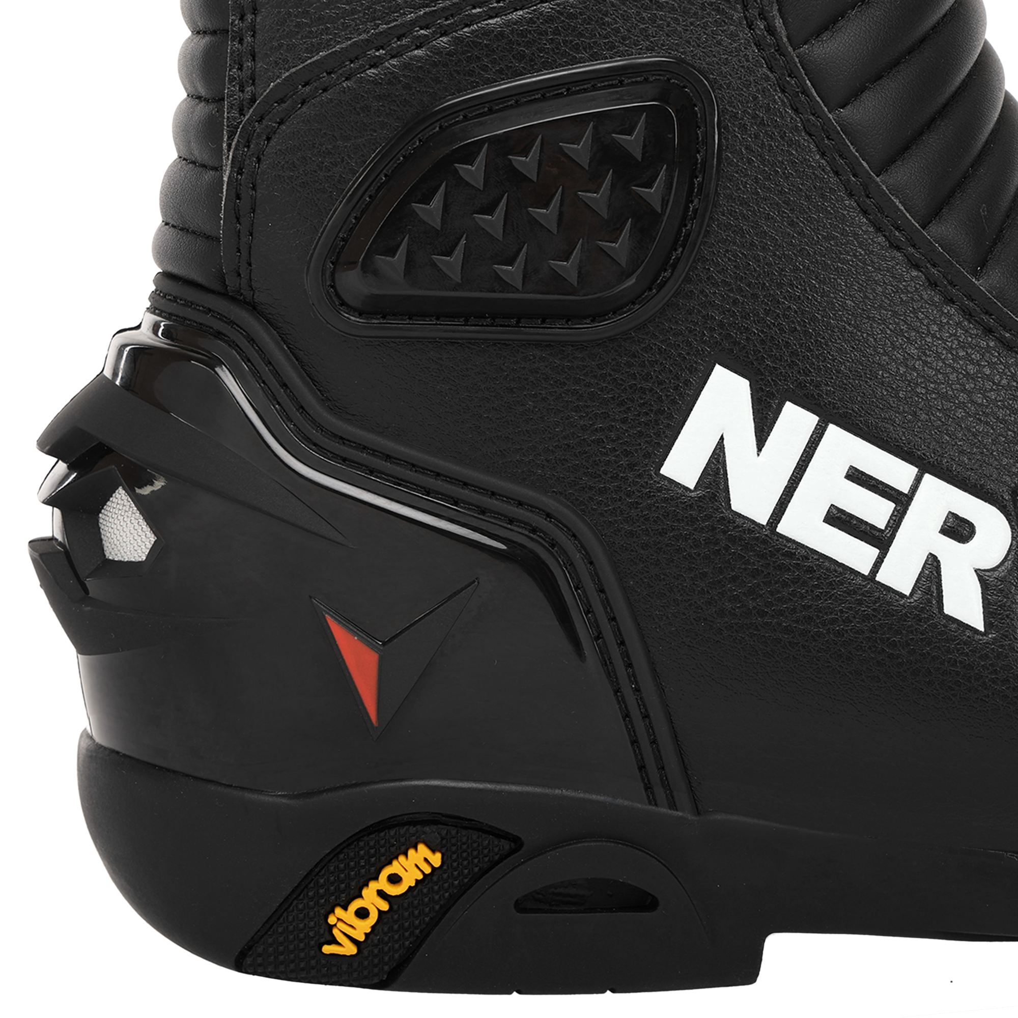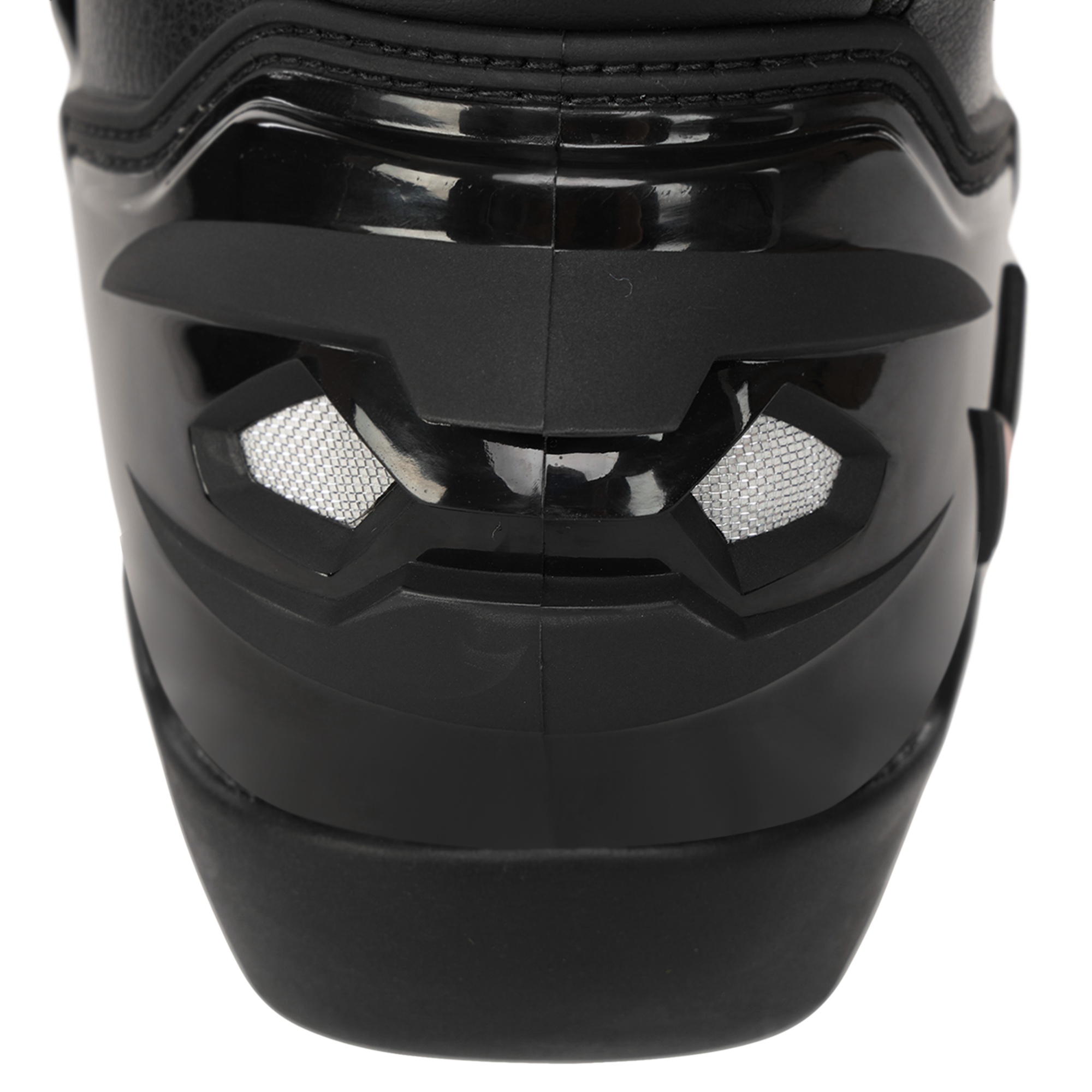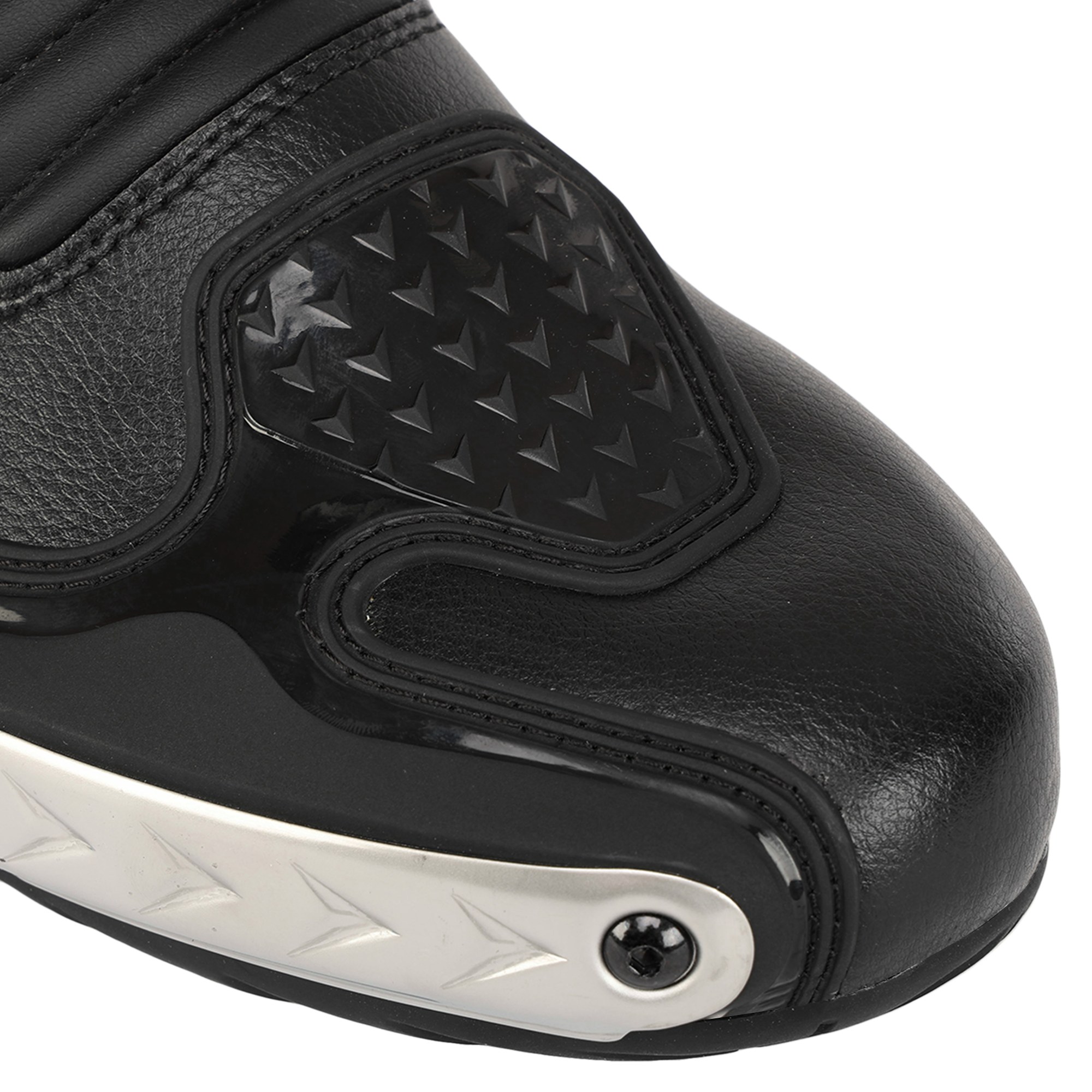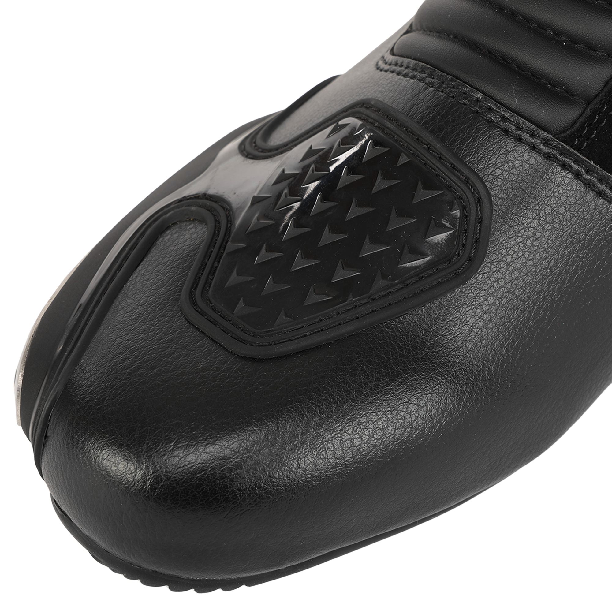 Передня частина мотоекіпірування прошита. Зовнішня бічна частина носка має захисну накладку. Поліуретанові захисні накладки встановлені в районі п'яти. На задній частині черевика розташовані світловідбивні вставки, які дозволяють зробити видимим мотоцикліста під час водіння у темний час доби.