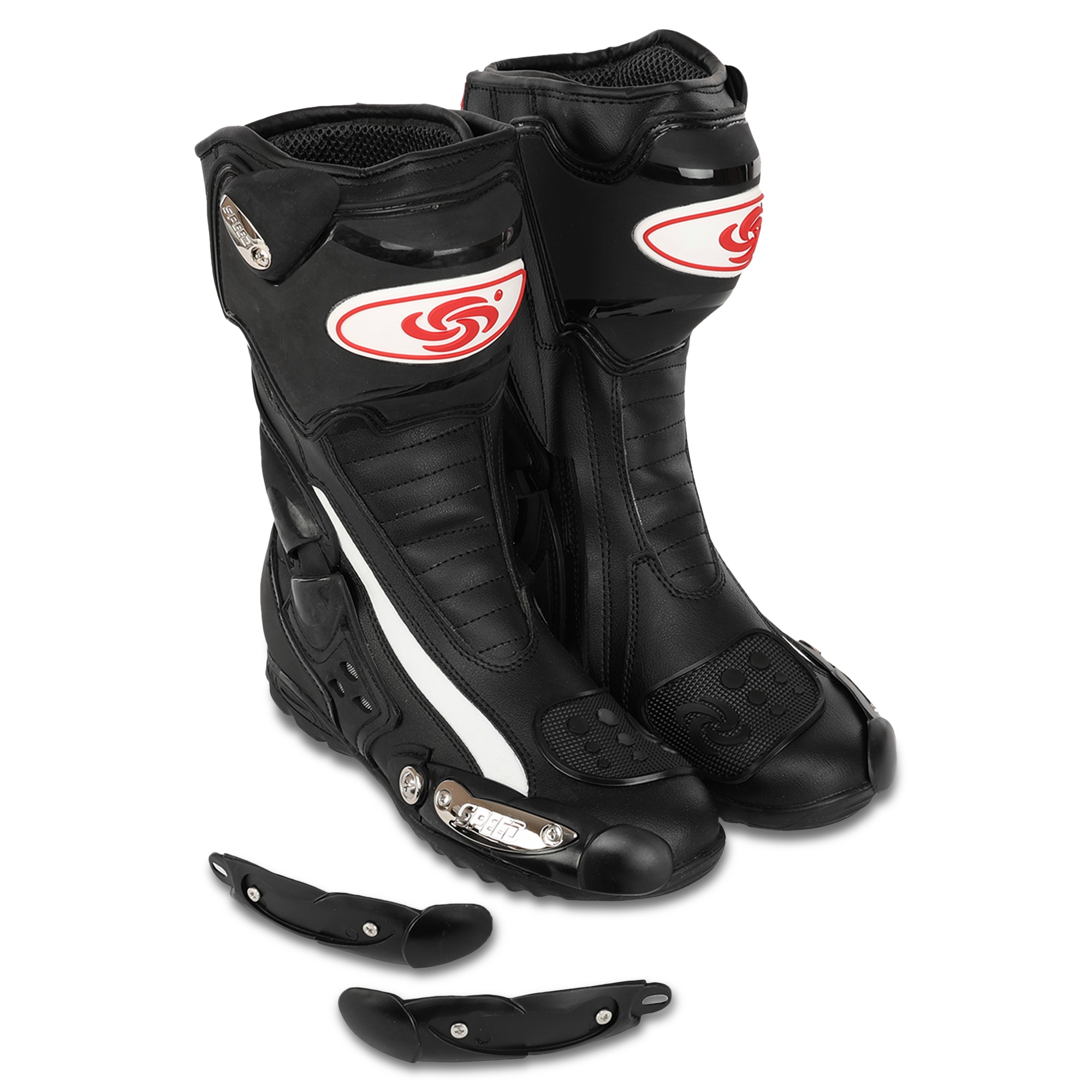 Щоб запобігти травмам гомілкостопа під час катання на мотоциклі, варто використовувати якісне екіпірування. Якщо віддаєте перевагу катання на високій швидкості, то найкращим вибором в цьому випадку будуть високі спортивні мотоботи SPEED B1001. Дане екіпірування відрізняється максимальним рівнем захисту і наявністю спеціальних посилених захисних елементів, які запобігають серйозним травмам. Взуття має обтічну форму і не позначається негативно на швидкості їзди. Верх виготовлений з високоякісного поліуретану і має спеціальні захисні накладки на п'яті, бічній частині стопи, носку і гомілці. Фіксація на ногах відбувається за допомогою блискавки і липучки. Підошва виготовлена з масло- і бензиностійкої гуми, не ковзає на підніжці мотоцикла. Ефективне охолодження ніг під час використання взуття забезпечується за рахунок спеціальних вентиляційних елементів.